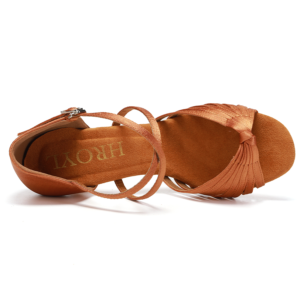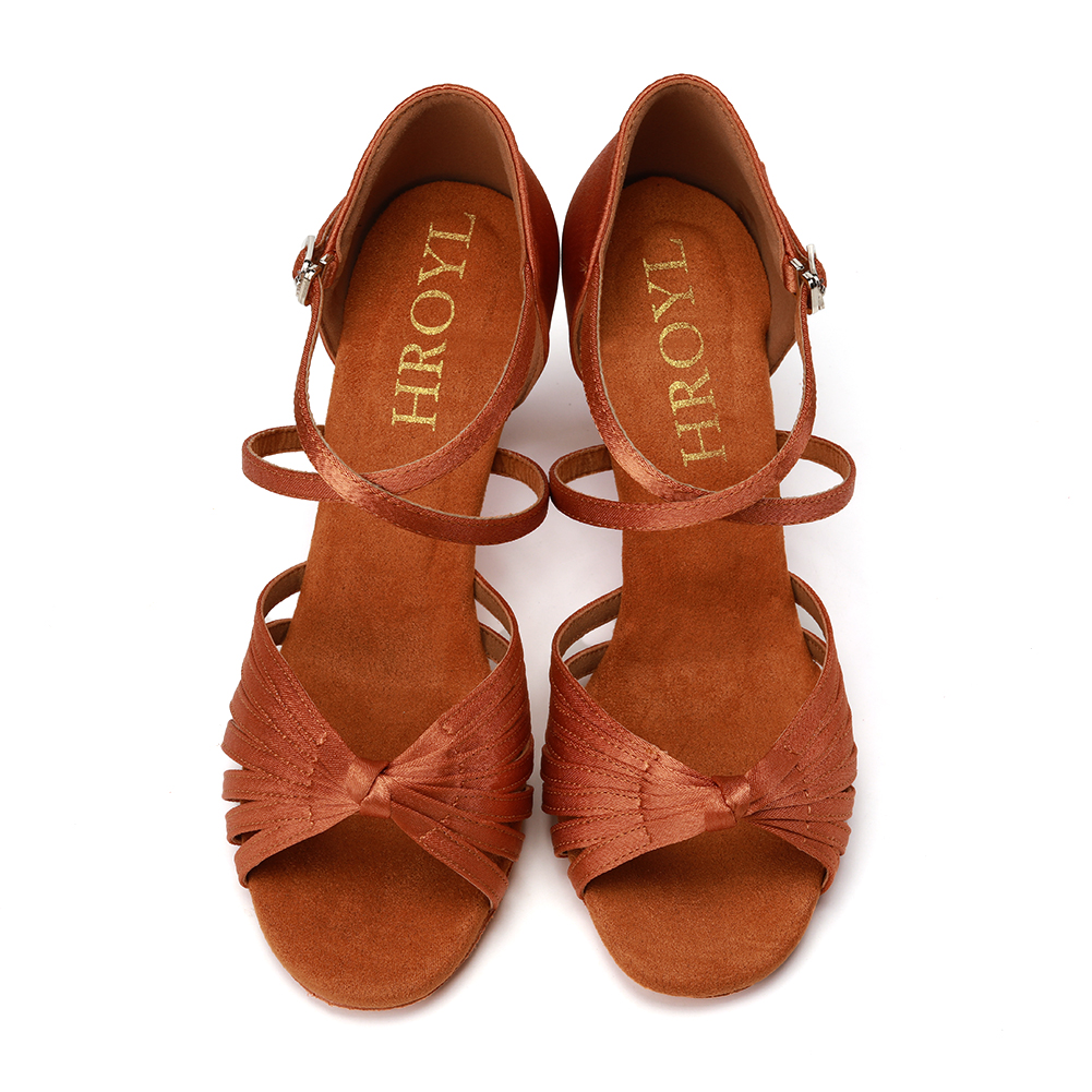 HROYL Women Latin Dance Shoes With Knot Bachata Salsa Ballroom Dancing Shoes Silk Satin Crystal Buckle Sandals Black Brown Pink