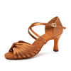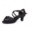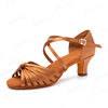 HROYL Women Latin Dance Shoes With Knot Bachata Salsa Ballroom Dancing Shoes Silk Satin Crystal Buckle Sandals Black Brown Pink