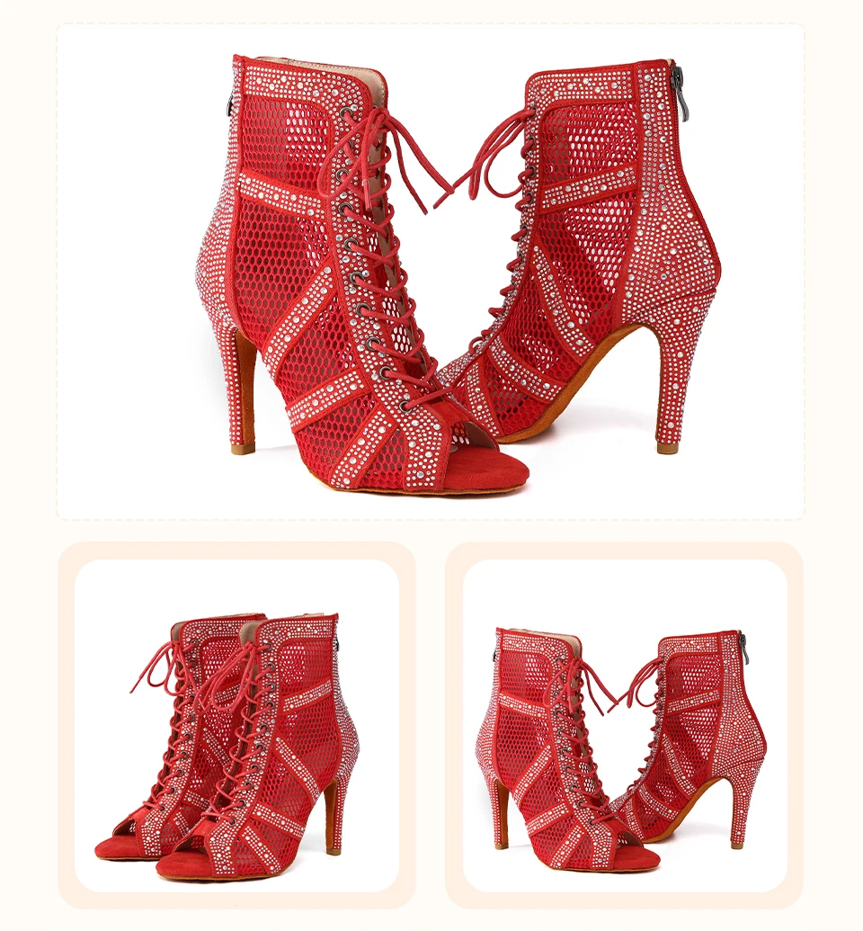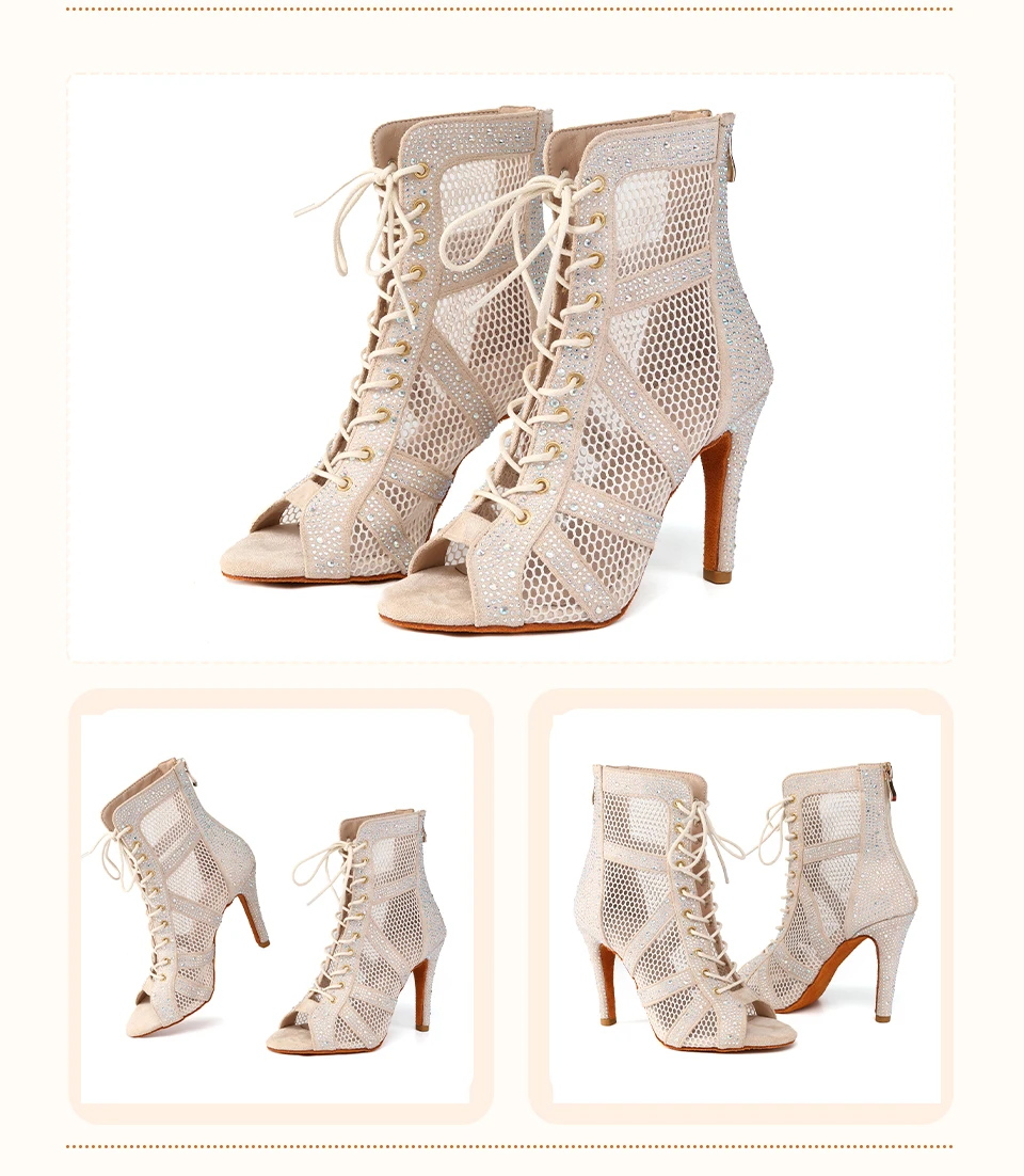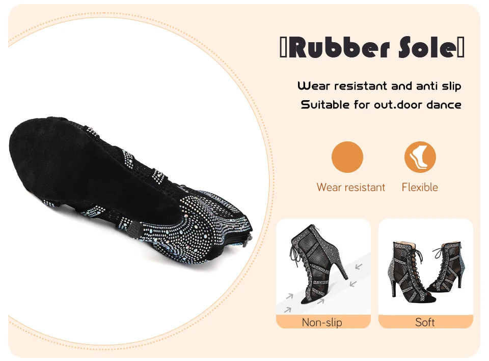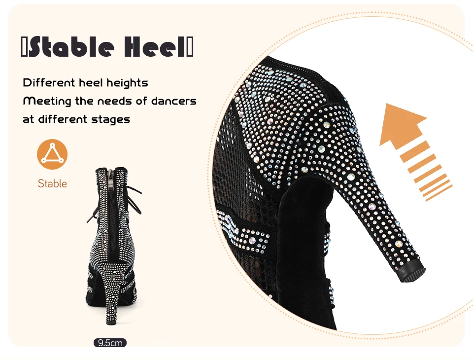 HROYL Women’s Latin Dance Shoes Ladies Dance Boots Shiny Rhinestone Girls Ballroom Salsa Dancing Shoes High Heels Dance Shoes