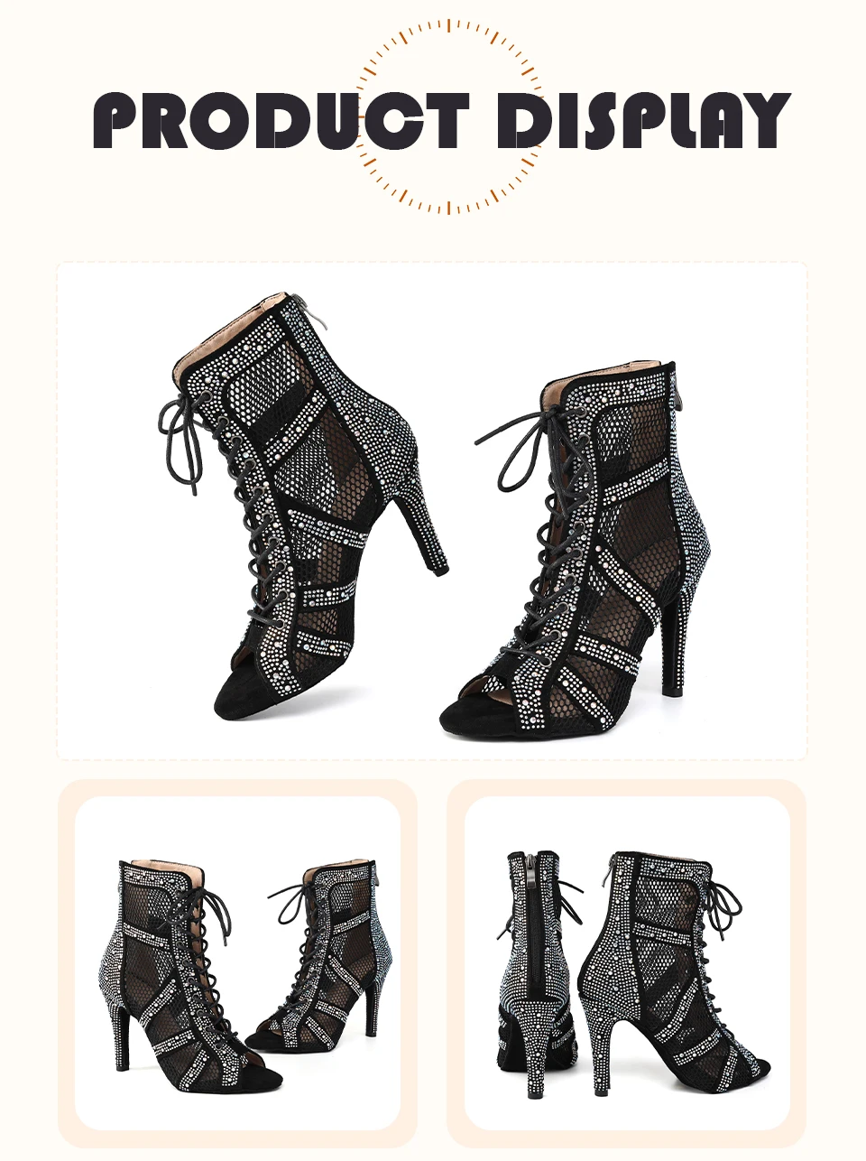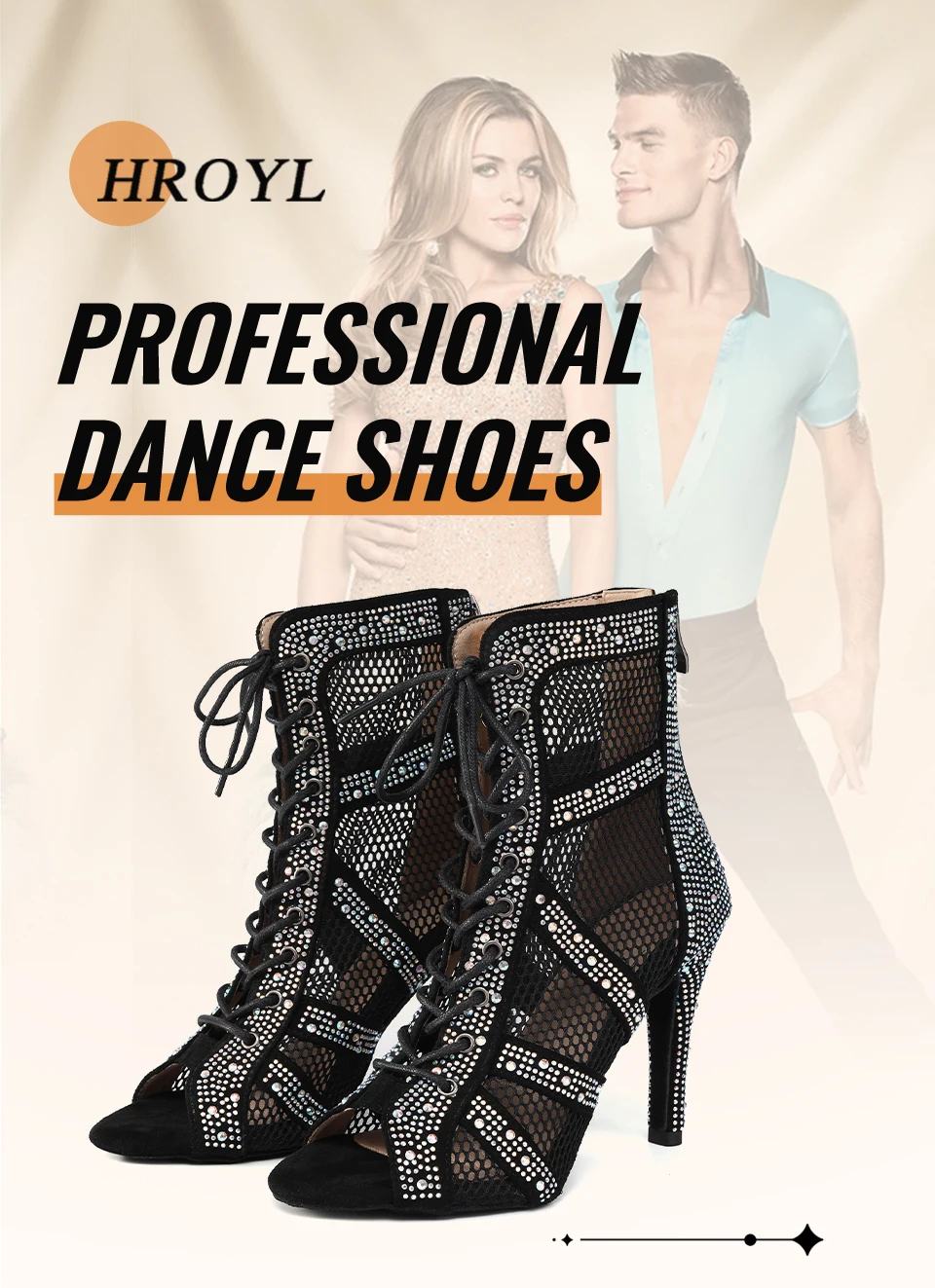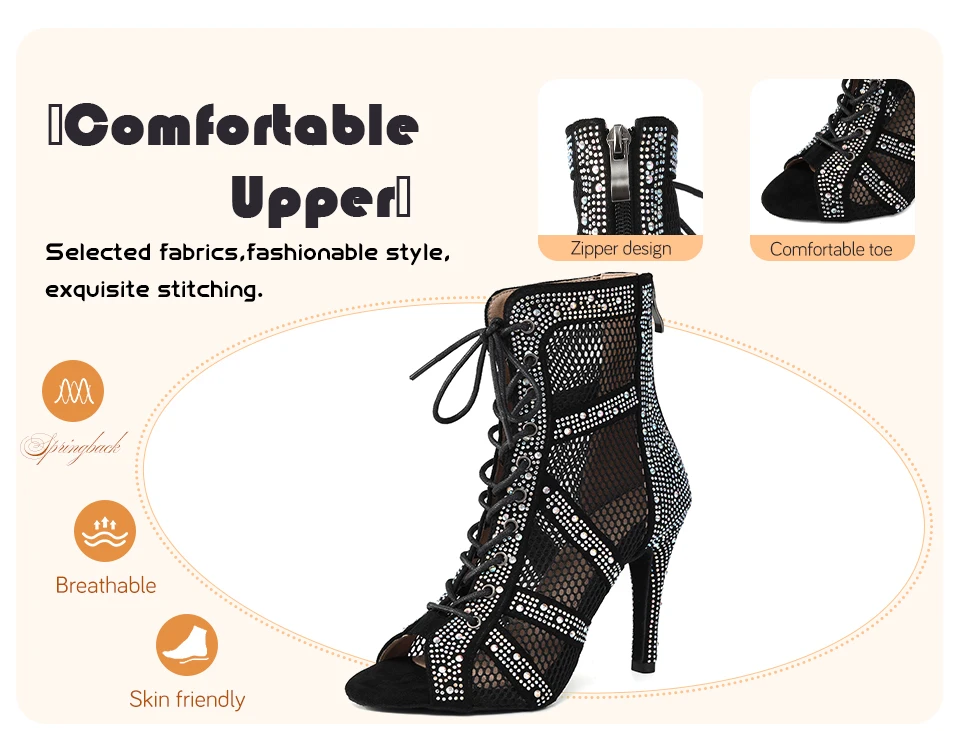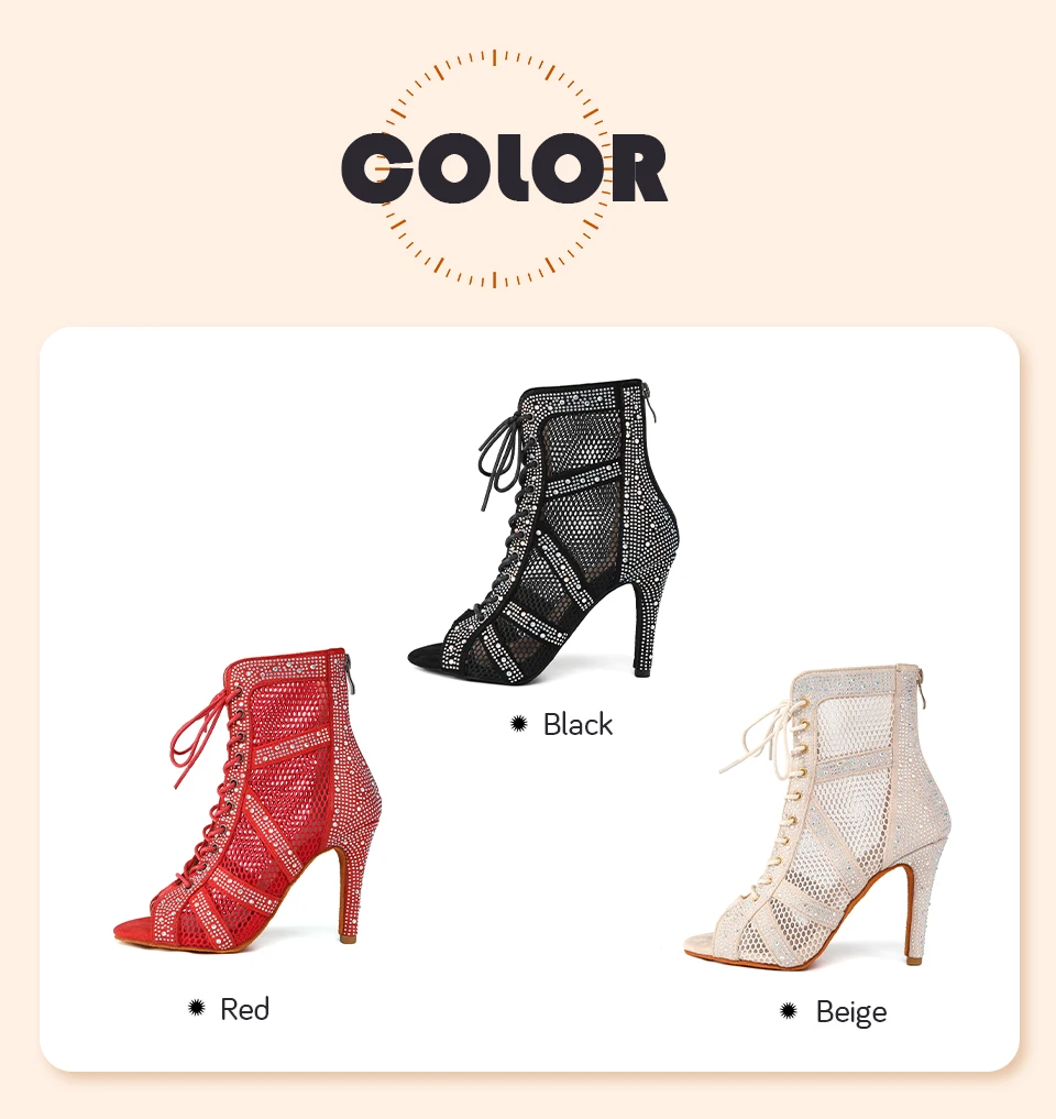 HROYL Women’s Latin Dance Shoes Ladies Dance Boots Shiny Rhinestone Girls Ballroom Salsa Dancing Shoes High Heels Dance Shoes