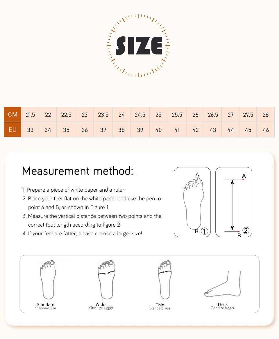 Size Tip: Please Measure your feet length before place the order, then refer to the size chart to choose the size according to your feet length.