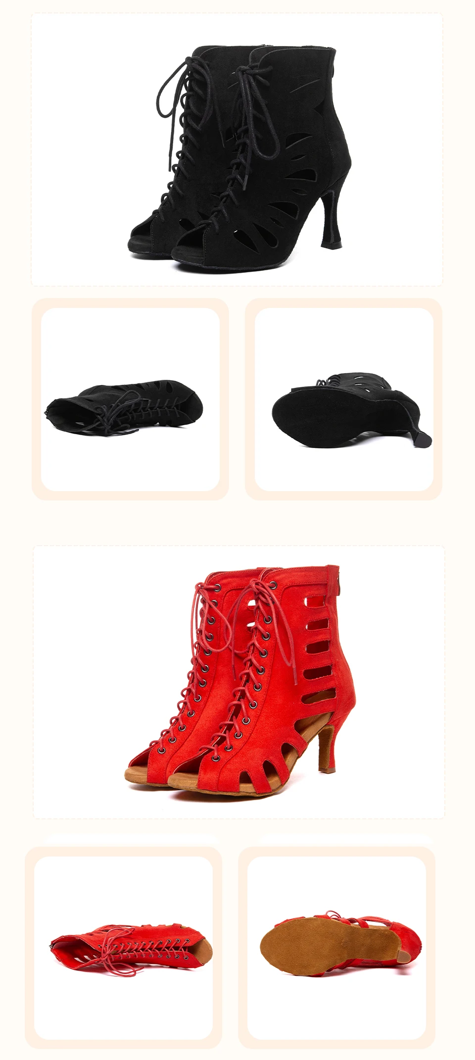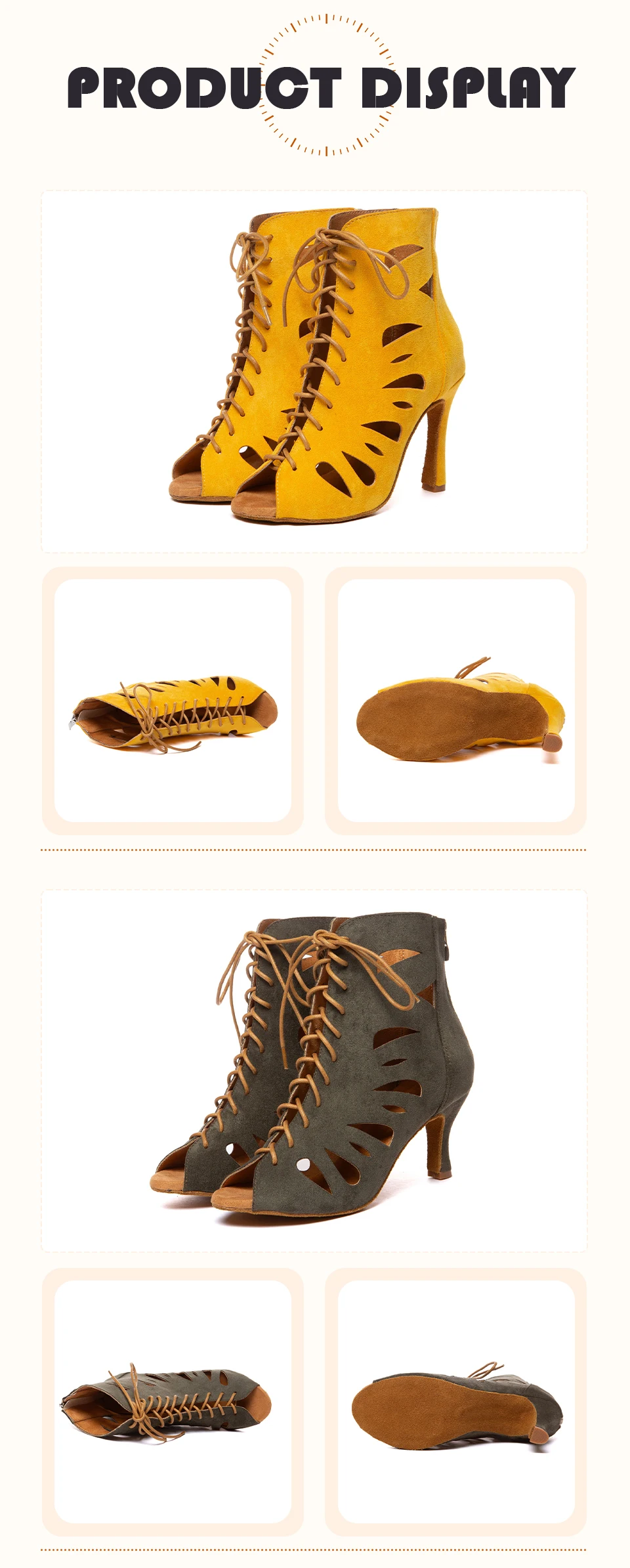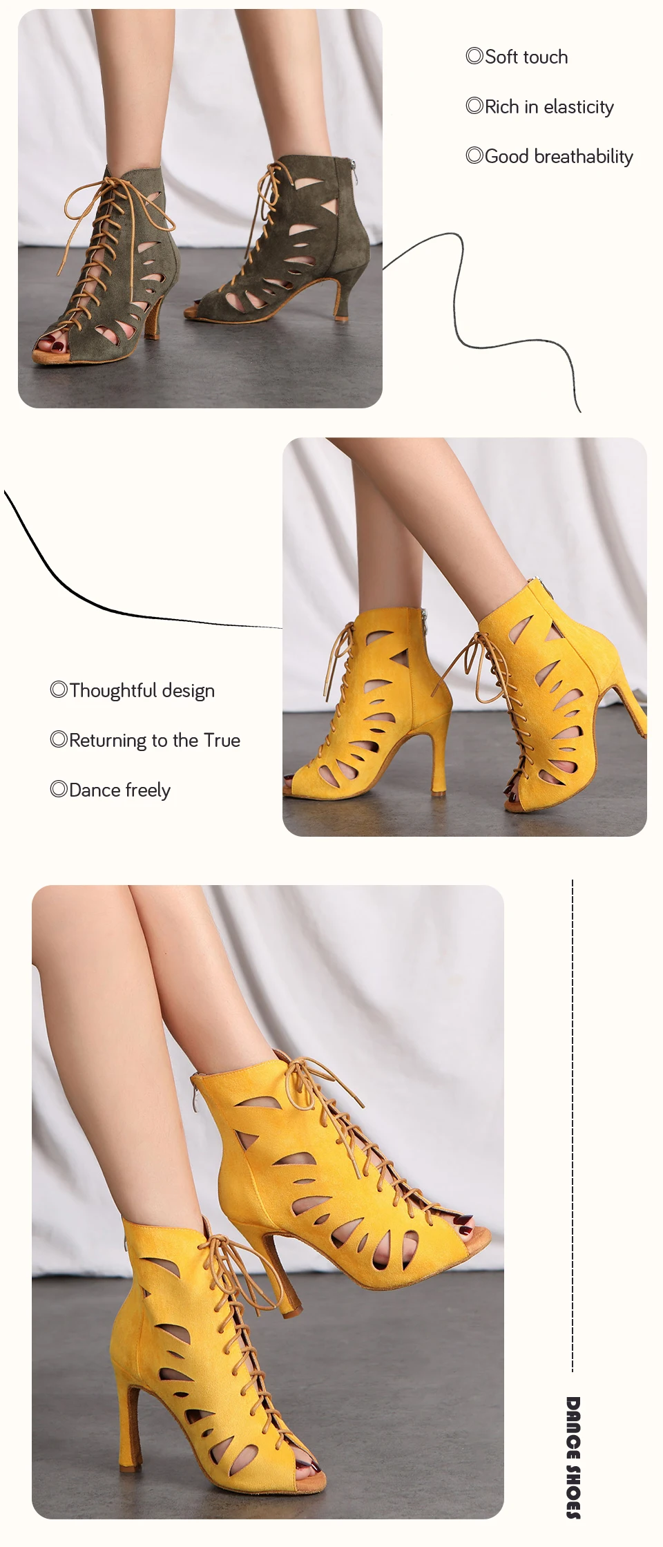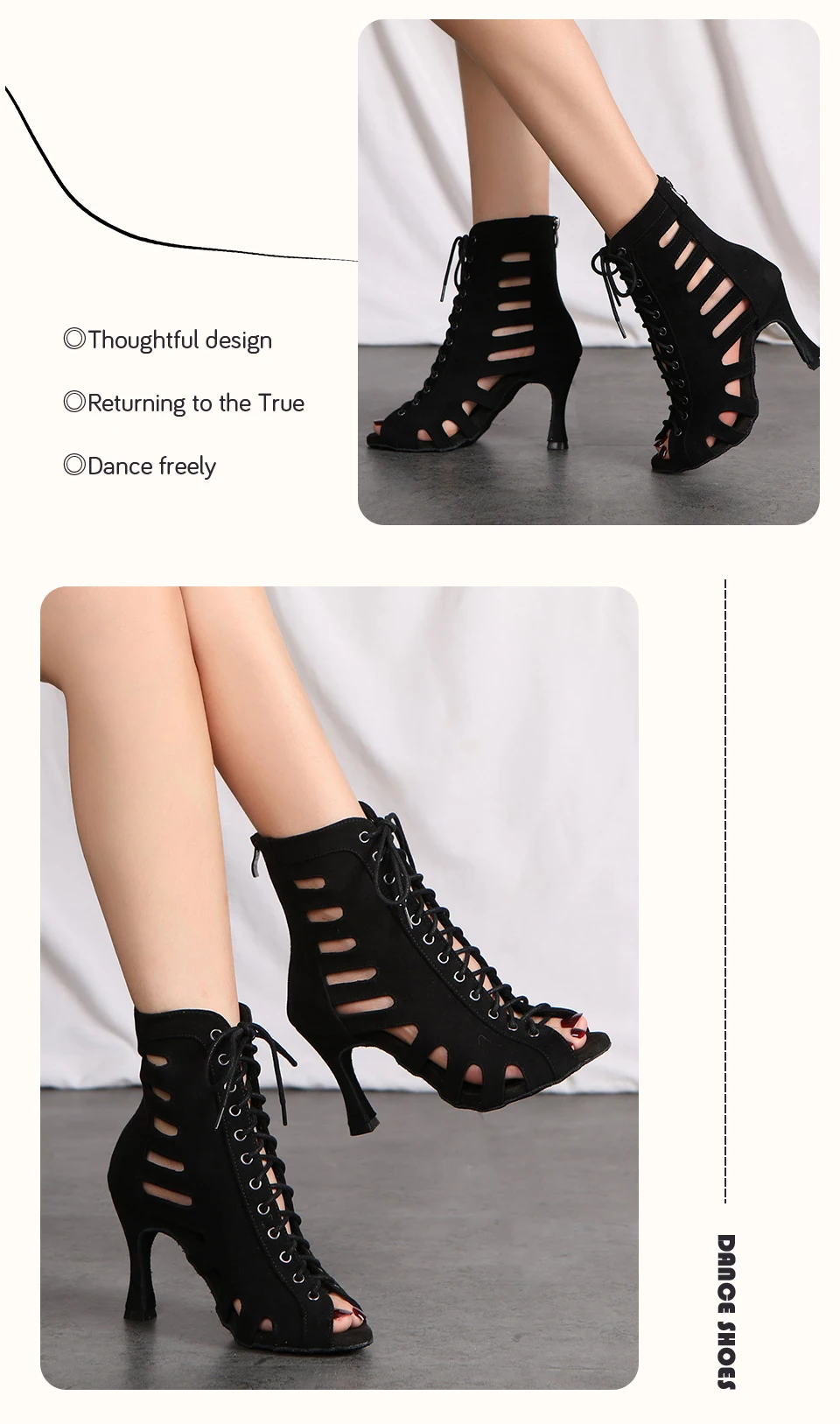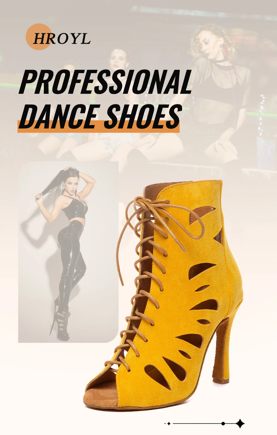 HROYL Women’s Latin Dance Shoes New Lace Up Dance Shoes Unique Design Hollow Sexy Fish Mouth Jazz Tango Dance High Heels 6-10CM