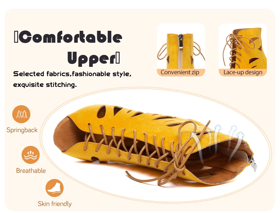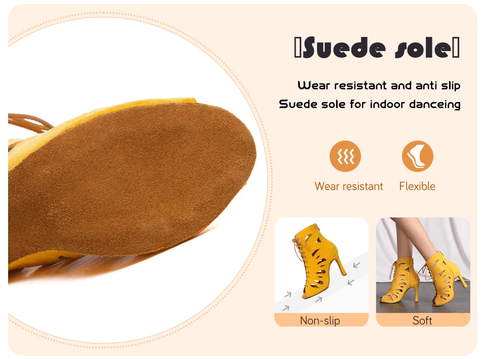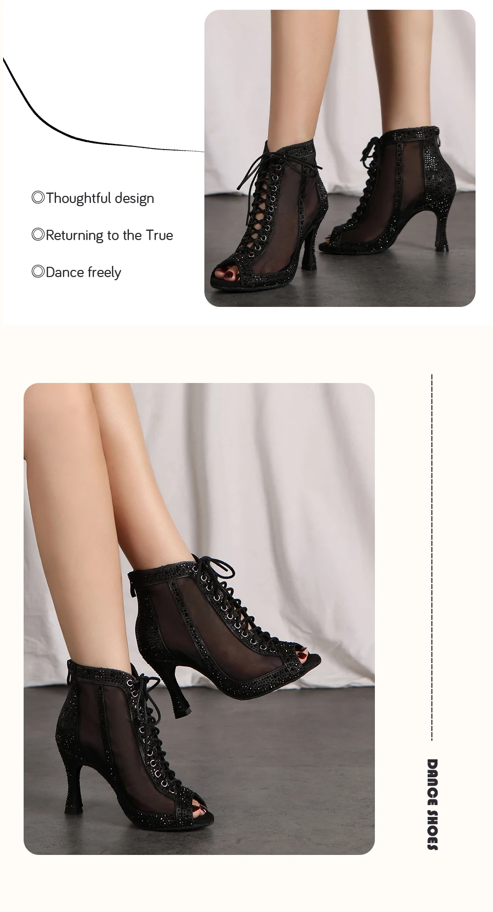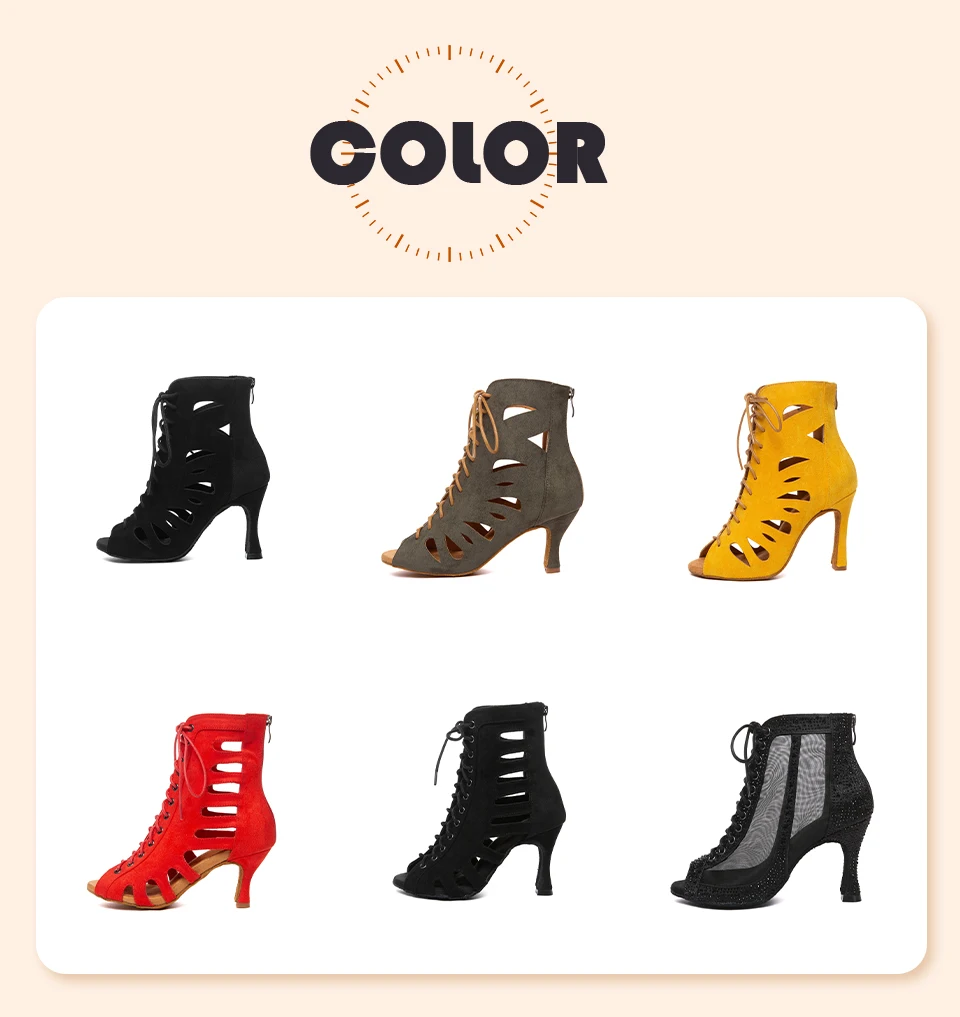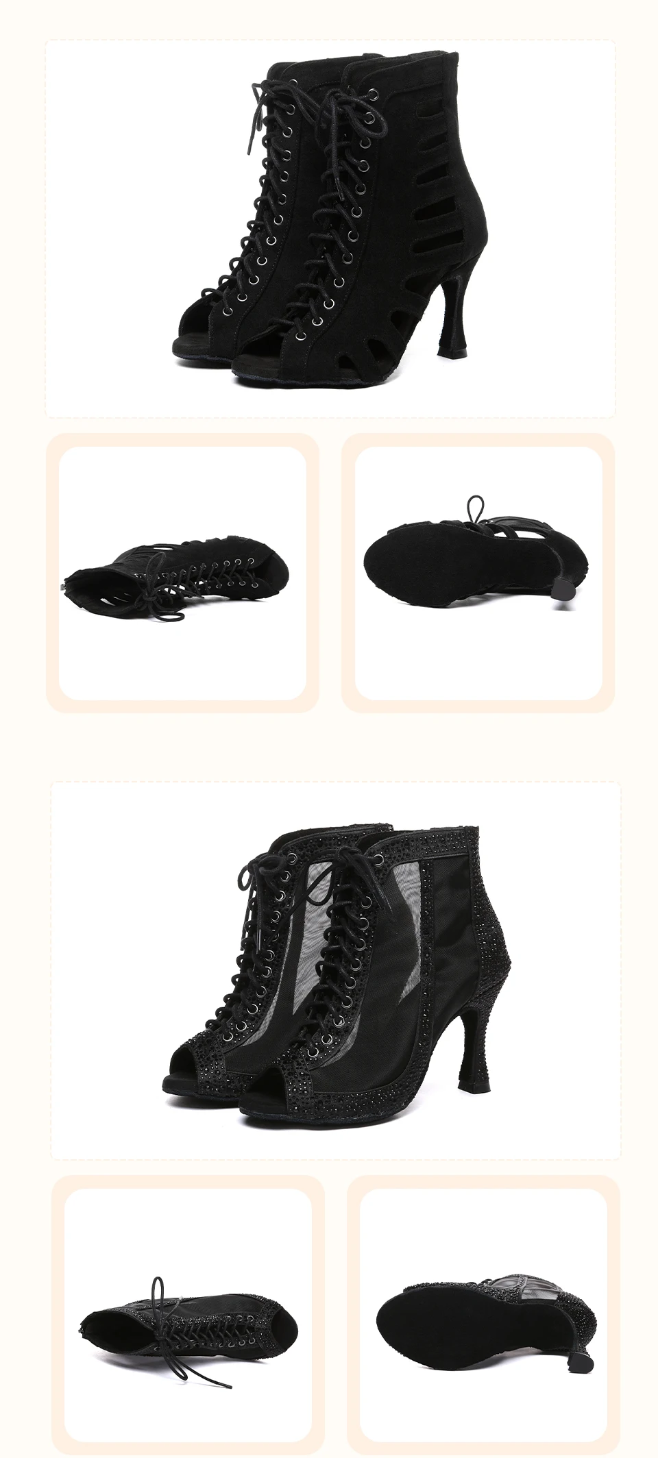 HROYL Women’s Latin Dance Shoes New Lace Up Dance Shoes Unique Design Hollow Sexy Fish Mouth Jazz Tango Dance High Heels 6-10CM