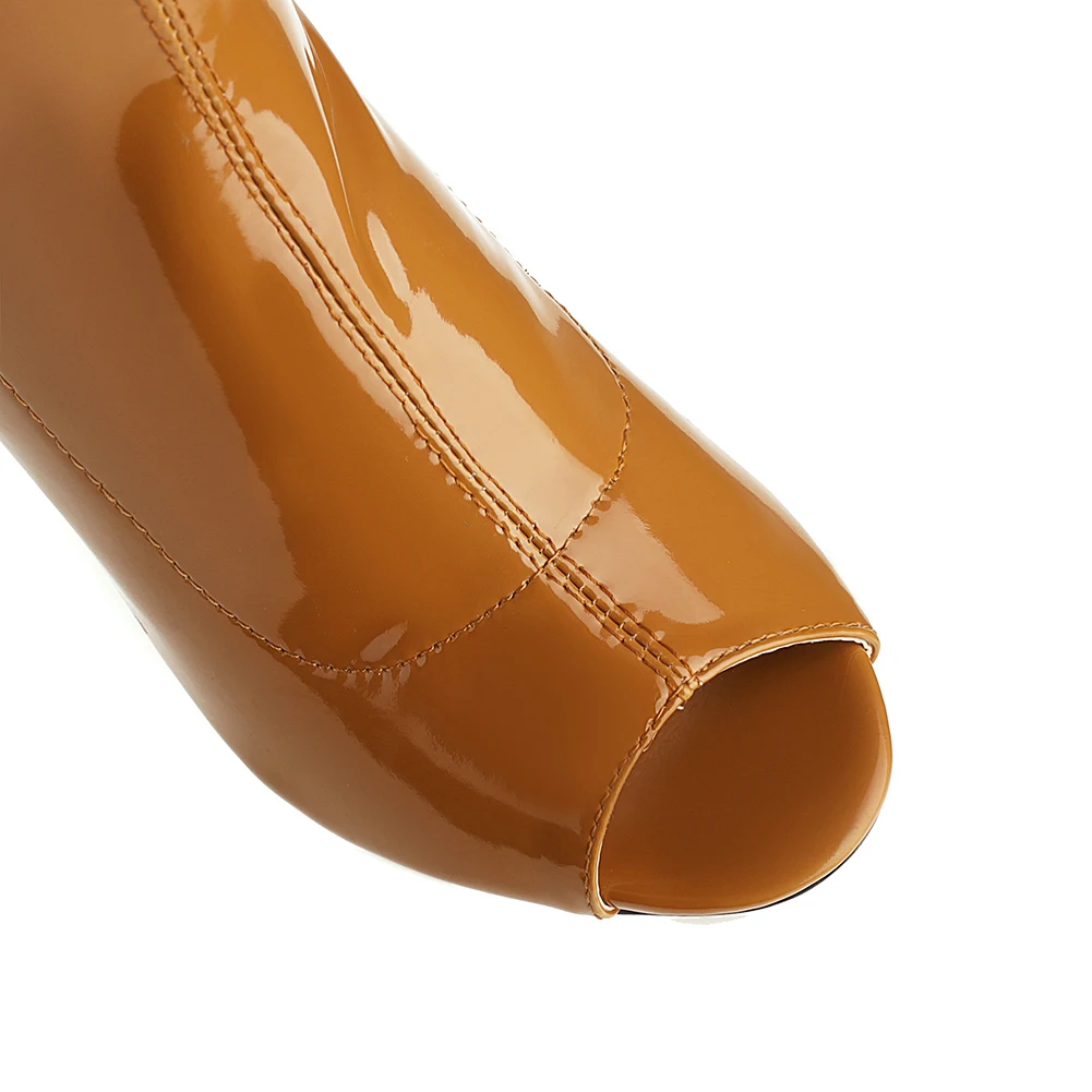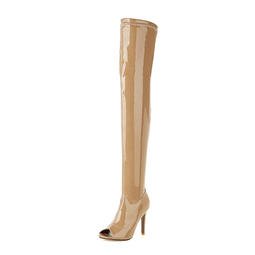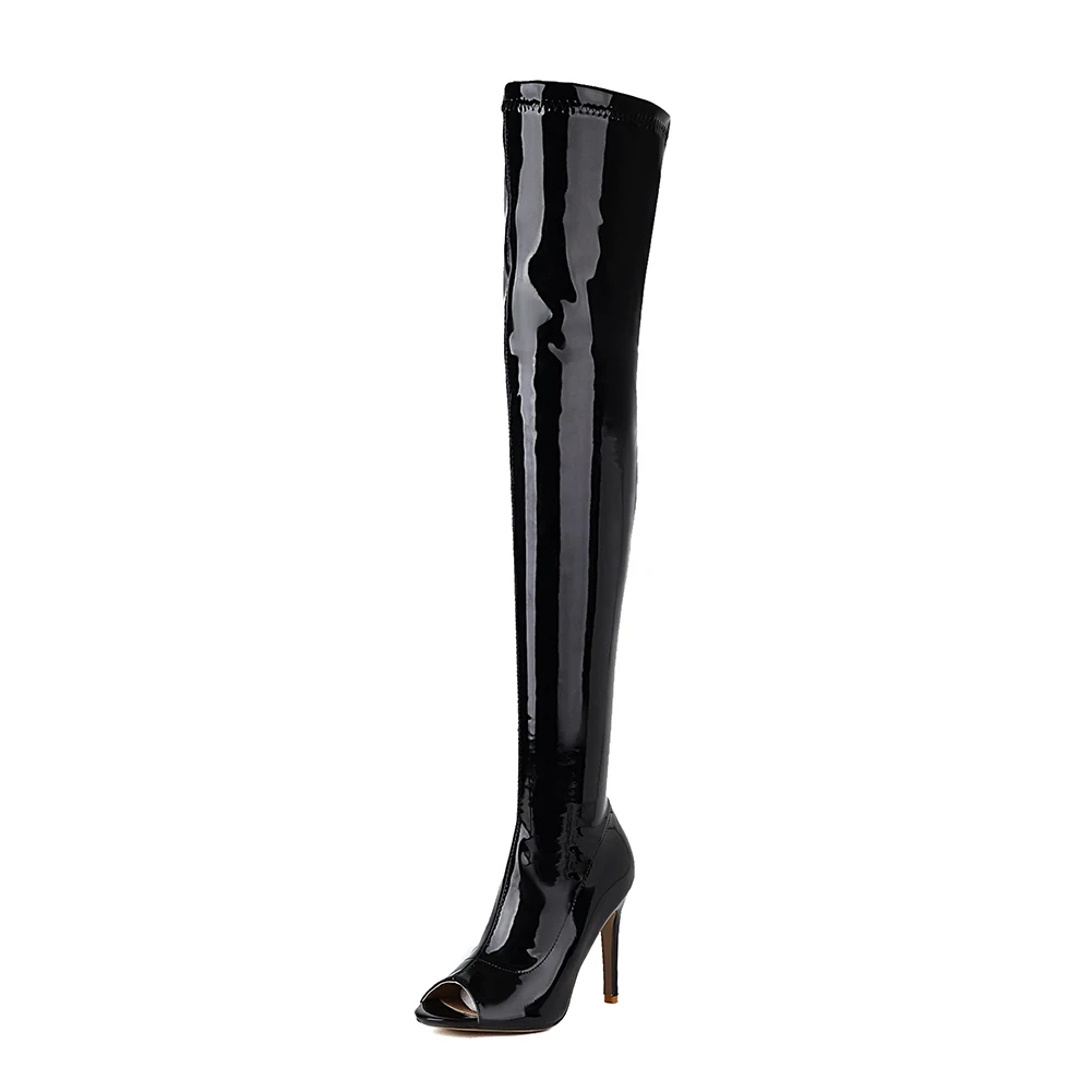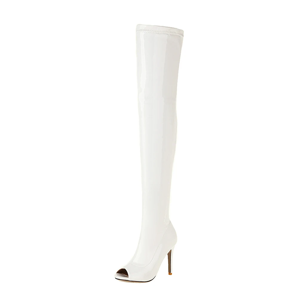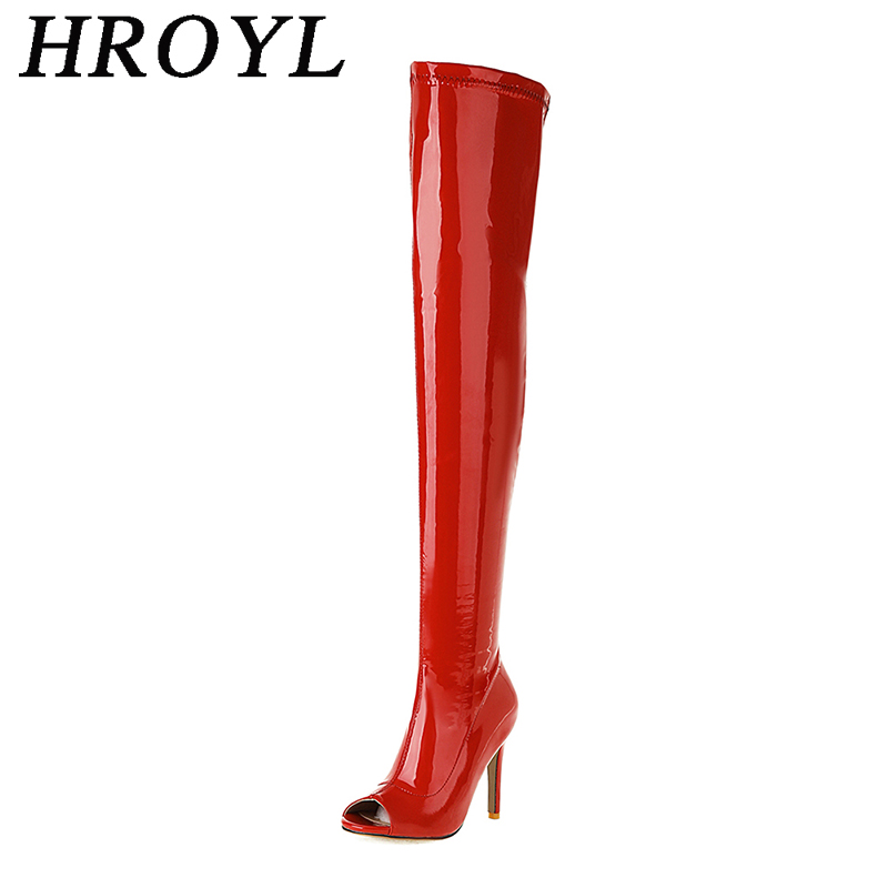 HROYL Women’s Patent Leather Pole Dancing Boots Girls’ Shiny Super Long Boots Over-the-knee Boots Super High-heeled Sexy Boots