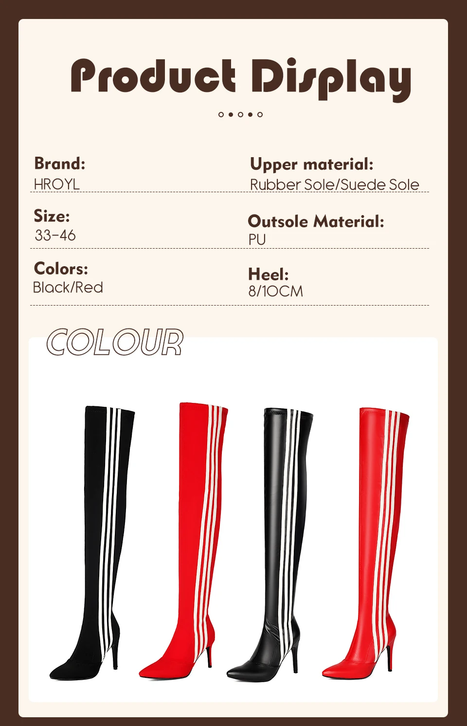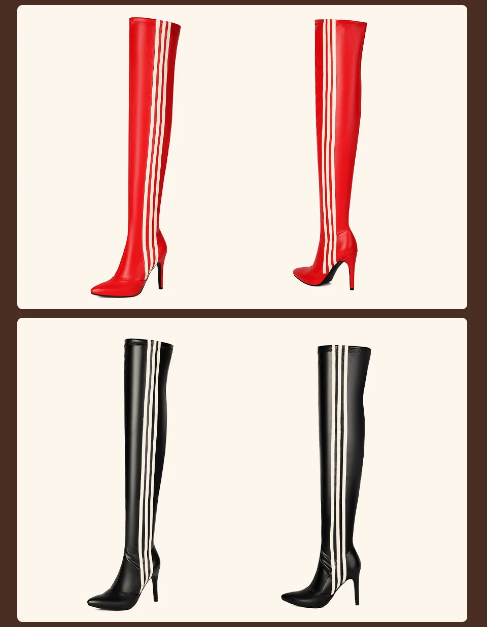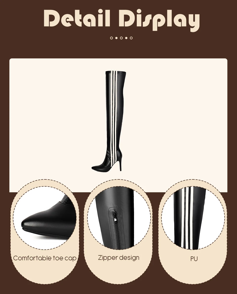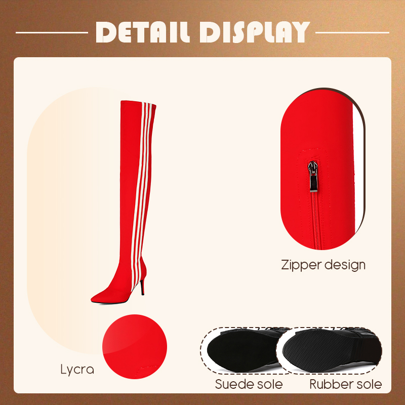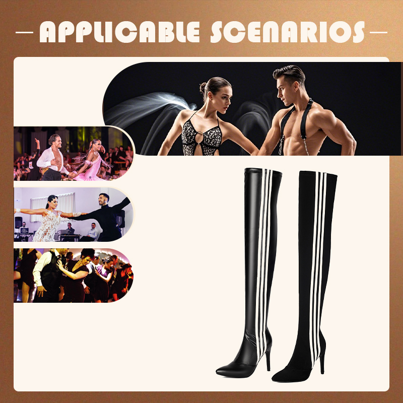 HROYL Women’s Skinny Over-the-knee Long-tube Latin Dance Boots High Heels Ladies Ballroom Tango Jazz Striped Women’s Dance Shoes