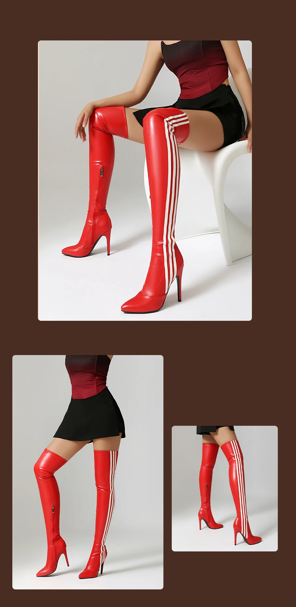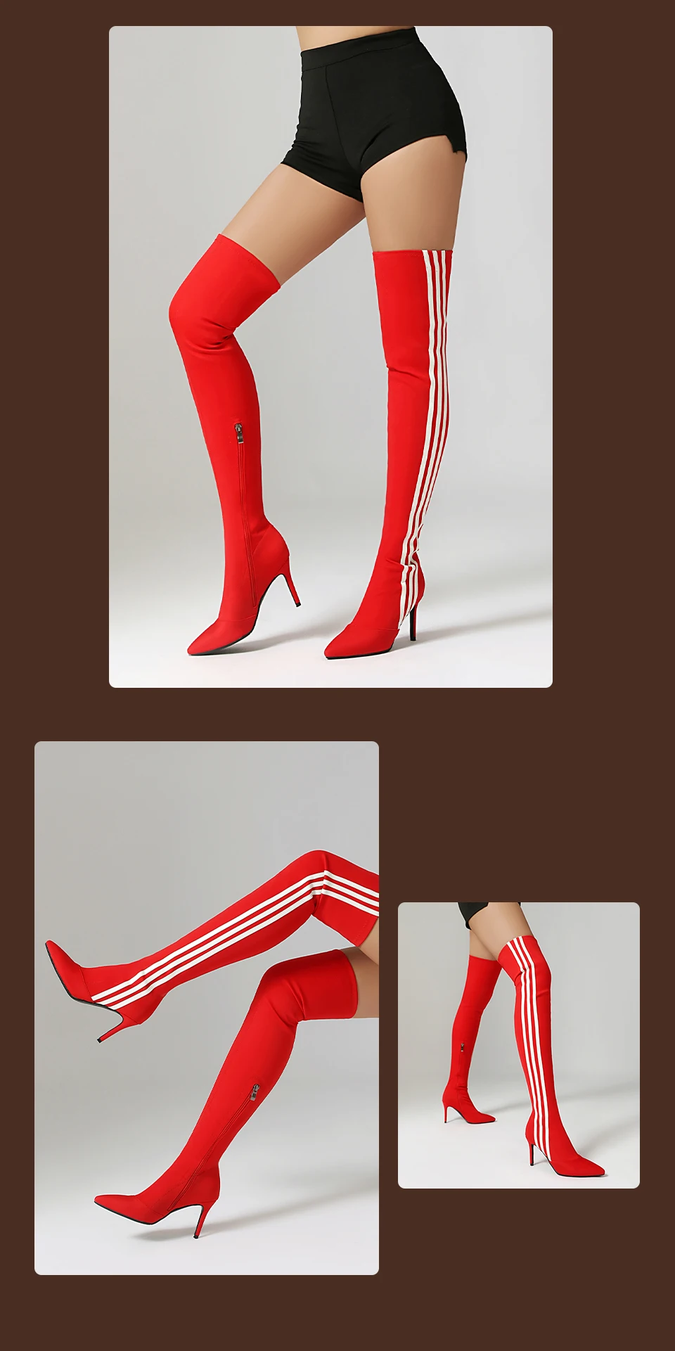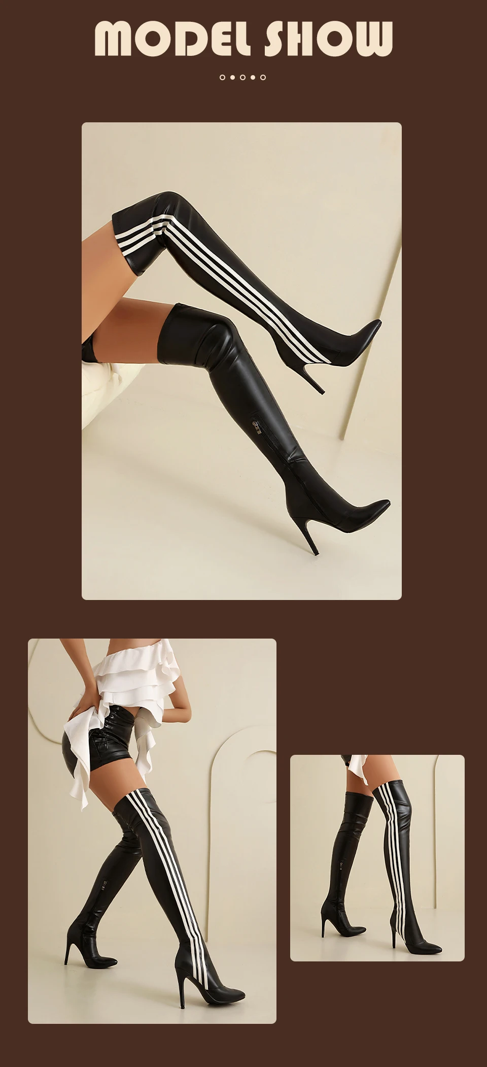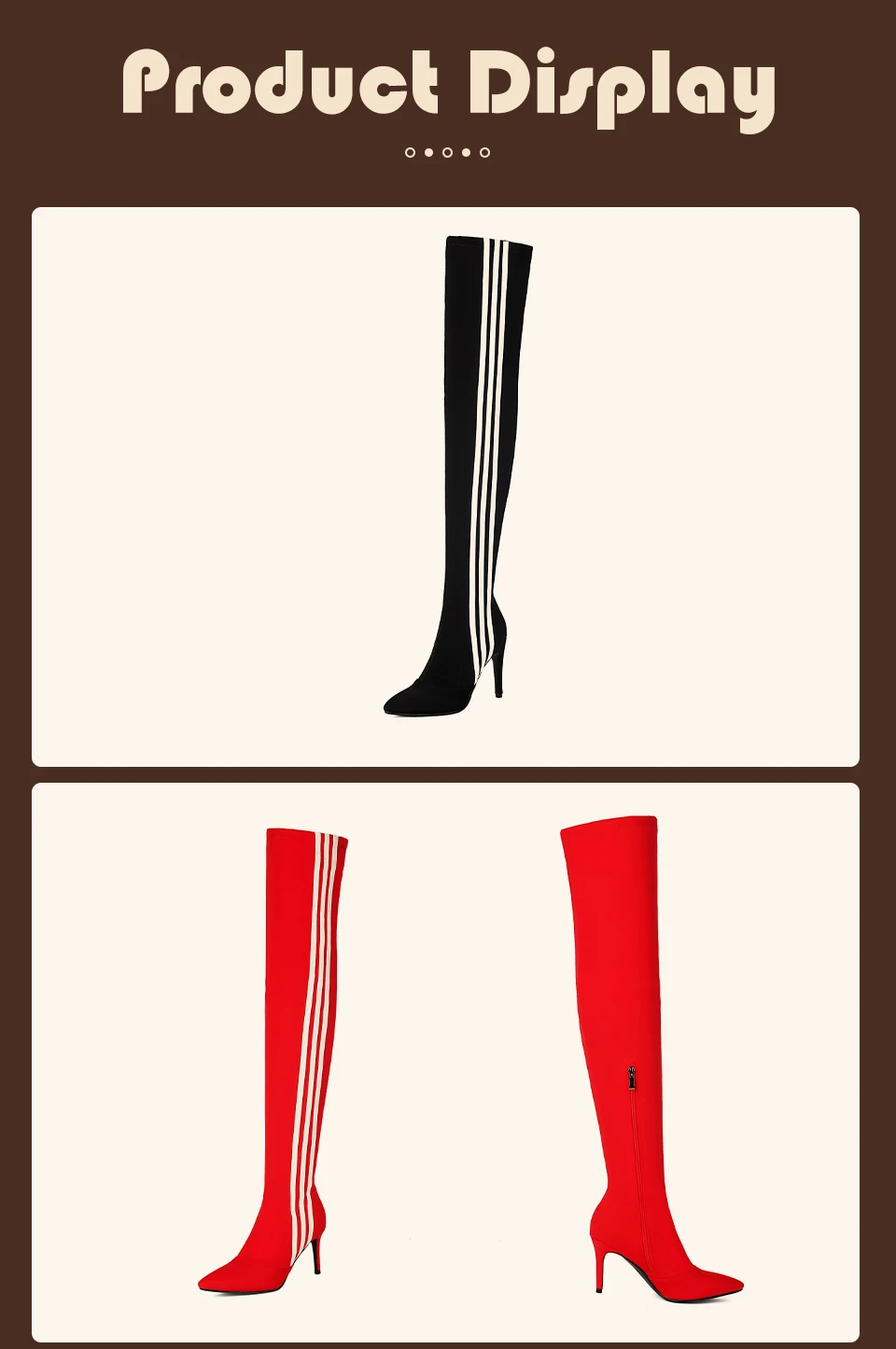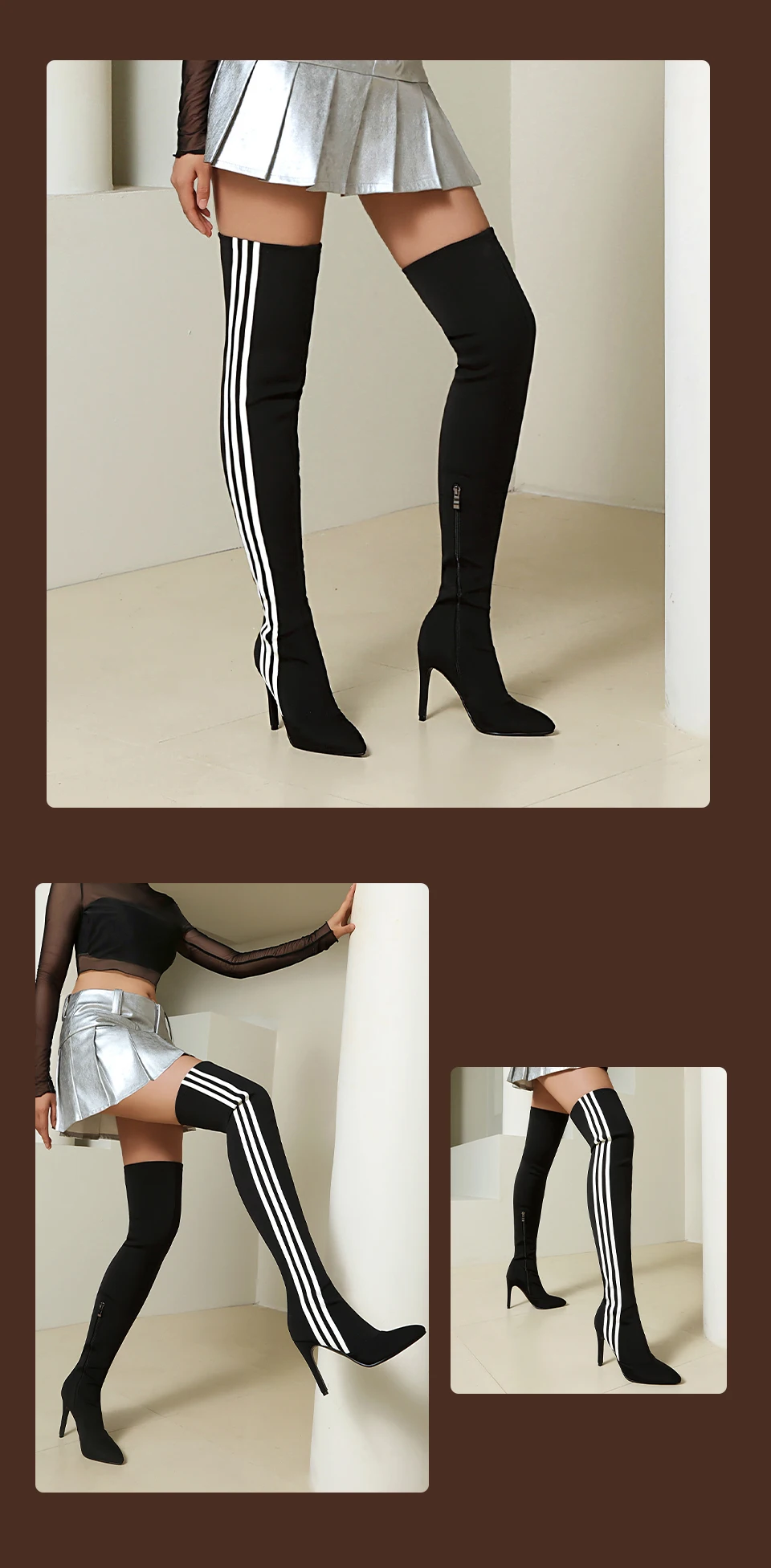 HROYL Women’s Skinny Over-the-knee Long-tube Latin Dance Boots High Heels Ladies Ballroom Tango Jazz Striped Women’s Dance Shoes