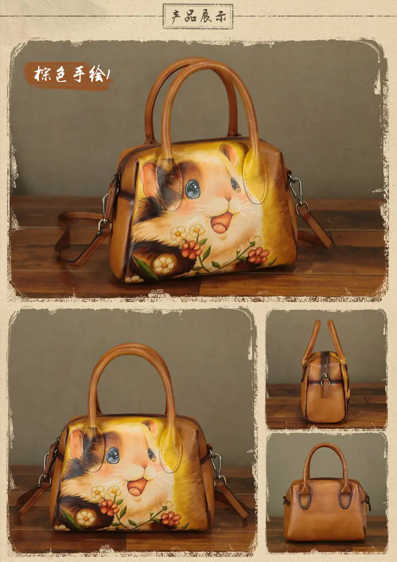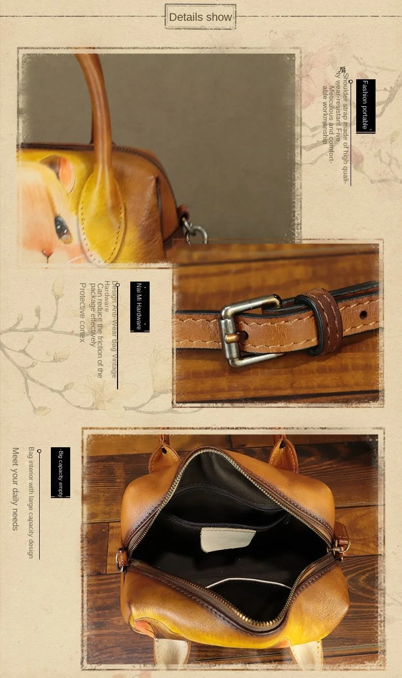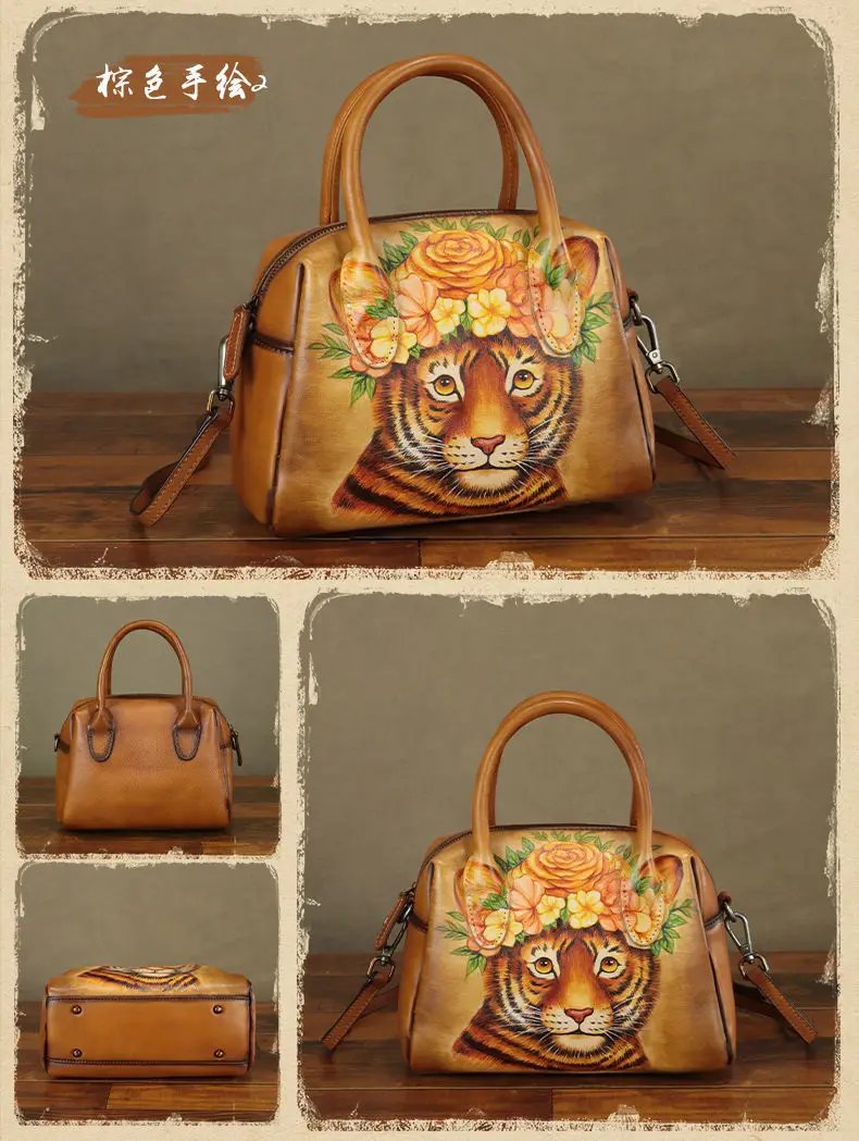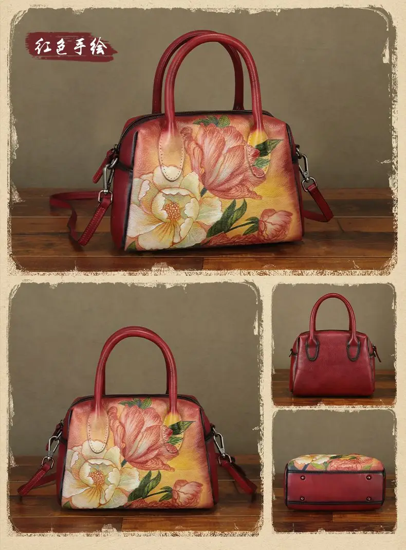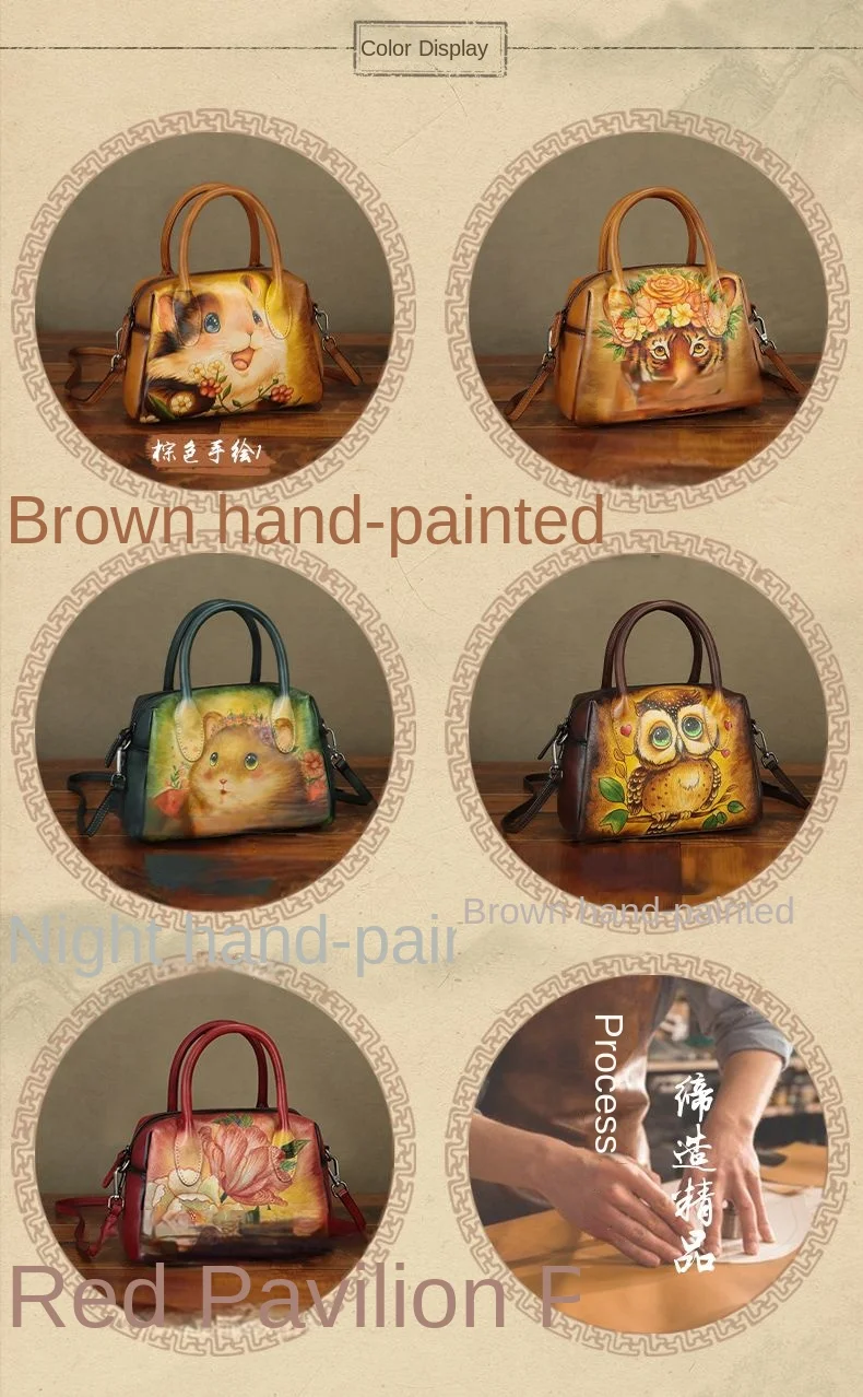 Imported First Layer Cowhide Hand-painted Vintage Leather Women’s Bag Small Shoulder Crossbody Bag Women Boston Handbags