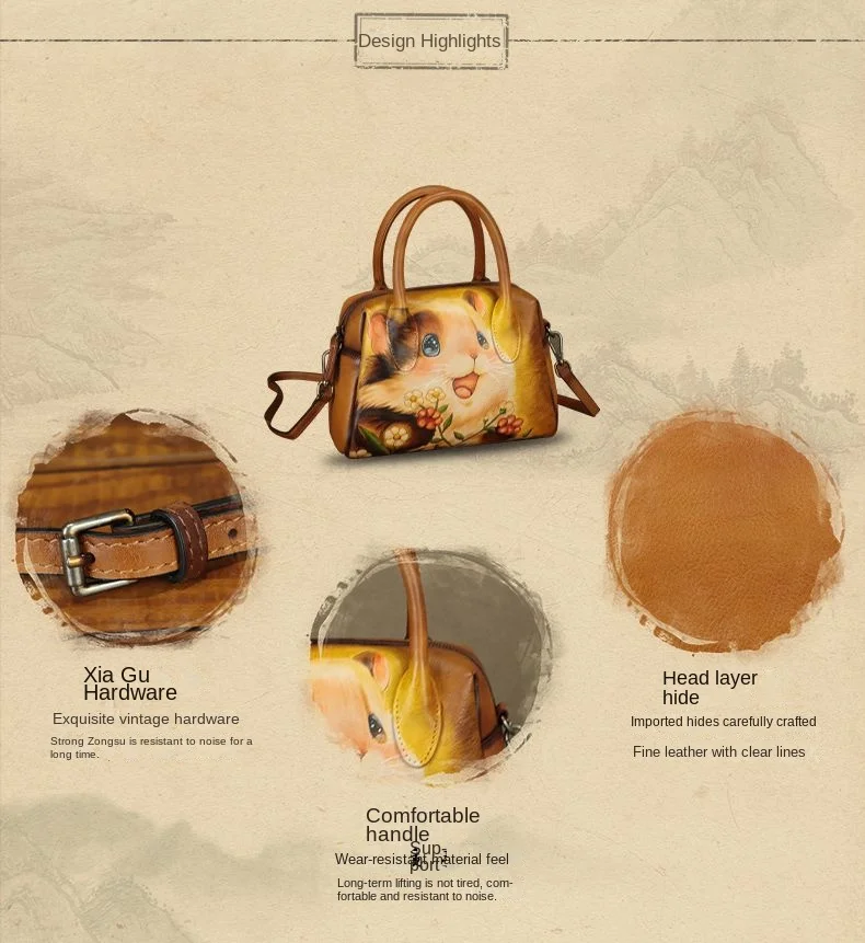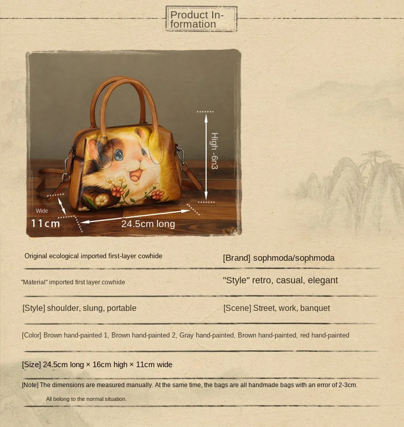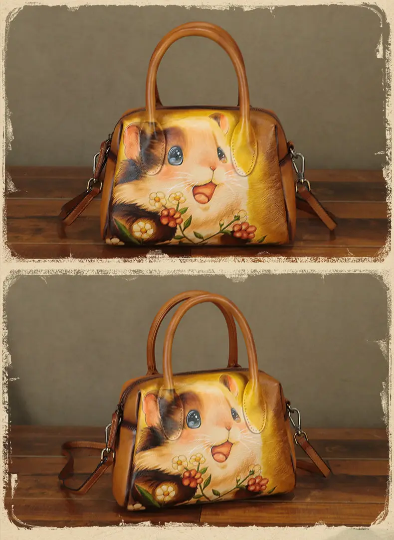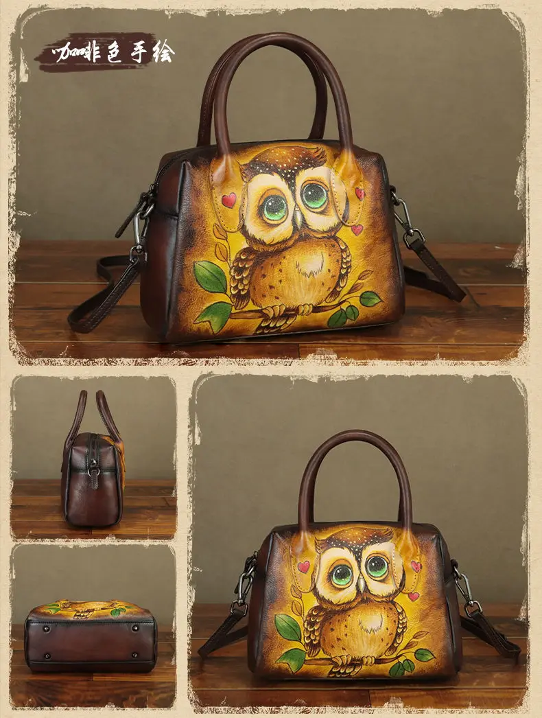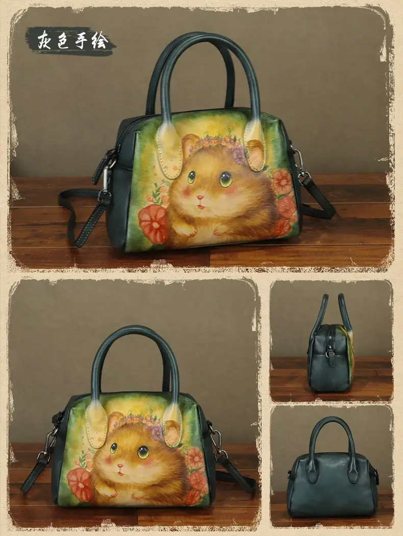 Imported First Layer Cowhide Hand-painted Vintage Leather Women’s Bag Small Shoulder Crossbody Bag Women Boston Handbags