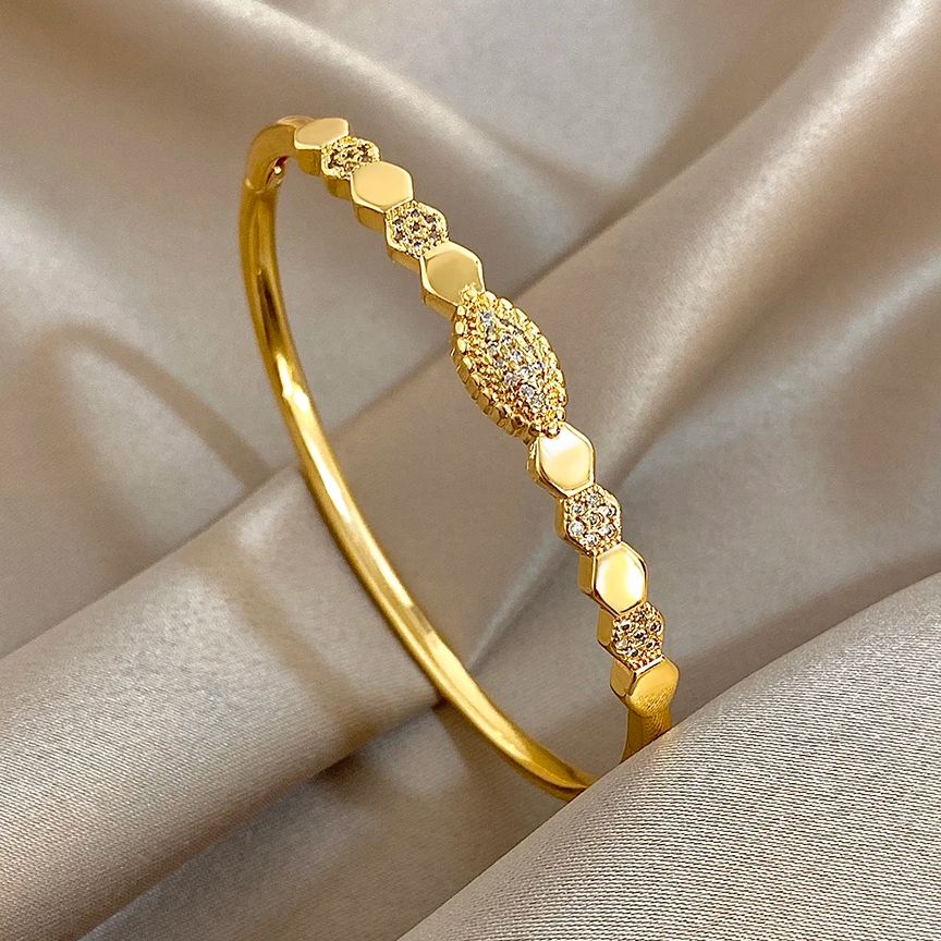Irregular Geometric Zircon Slim Cuff Bracelet for Women Delicate Gold Plated Copper Stacking Bangle Bracelets Jewelry Gifts
