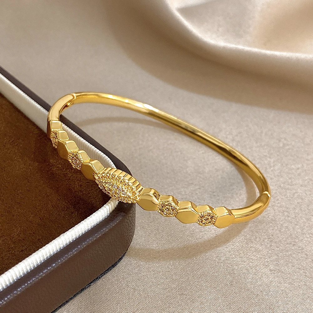Irregular Geometric Zircon Slim Cuff Bracelet for Women Delicate Gold Plated Copper Stacking Bangle Bracelets Jewelry Gifts