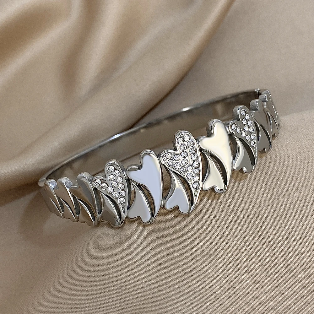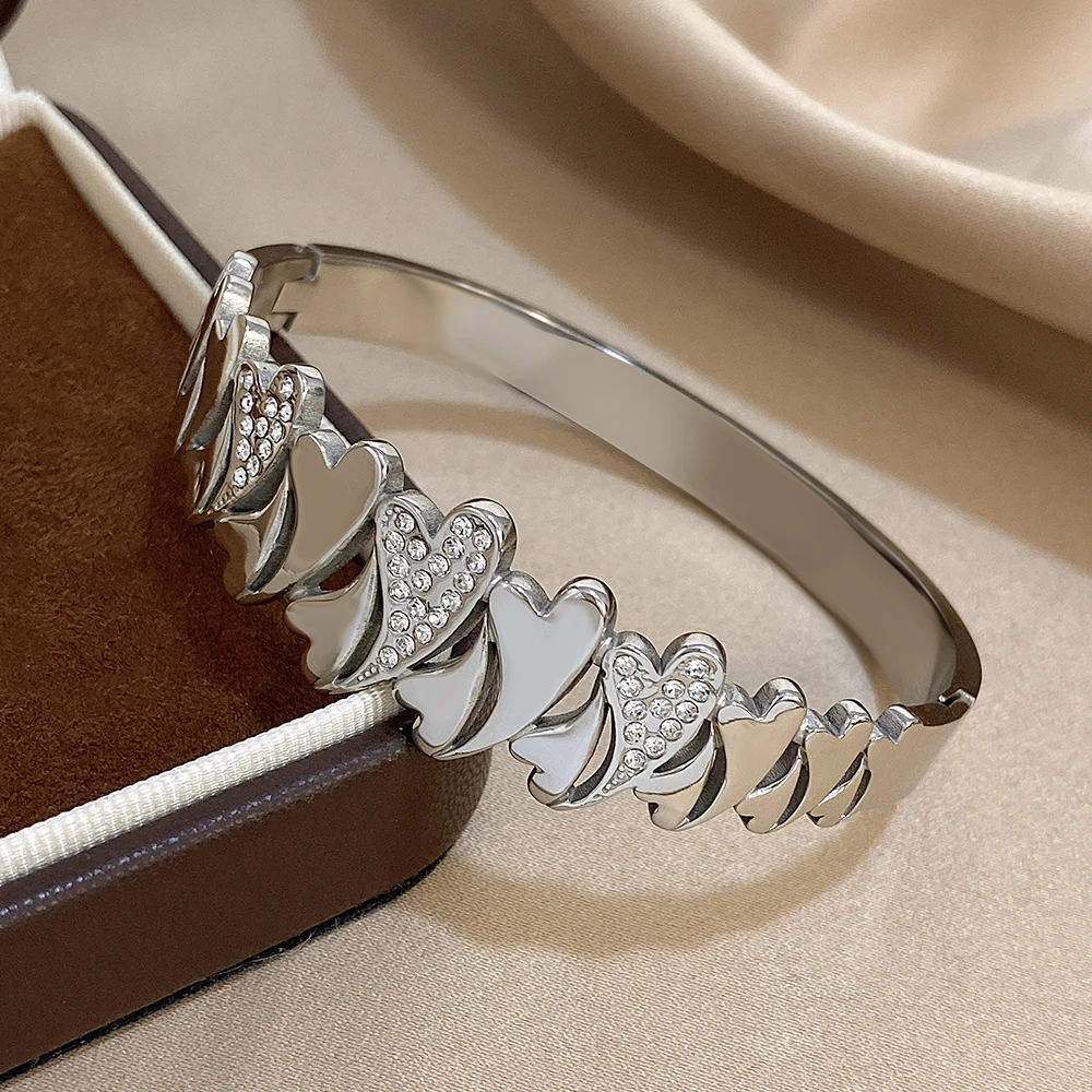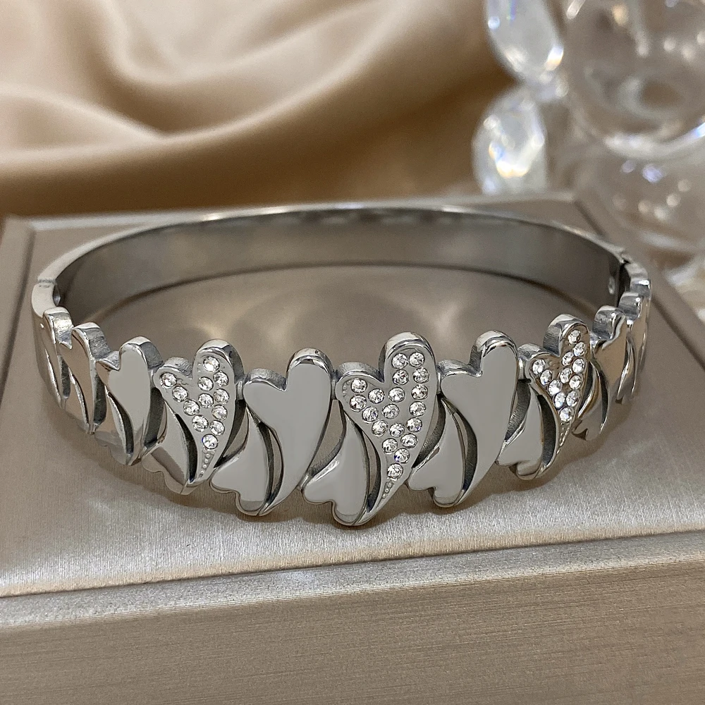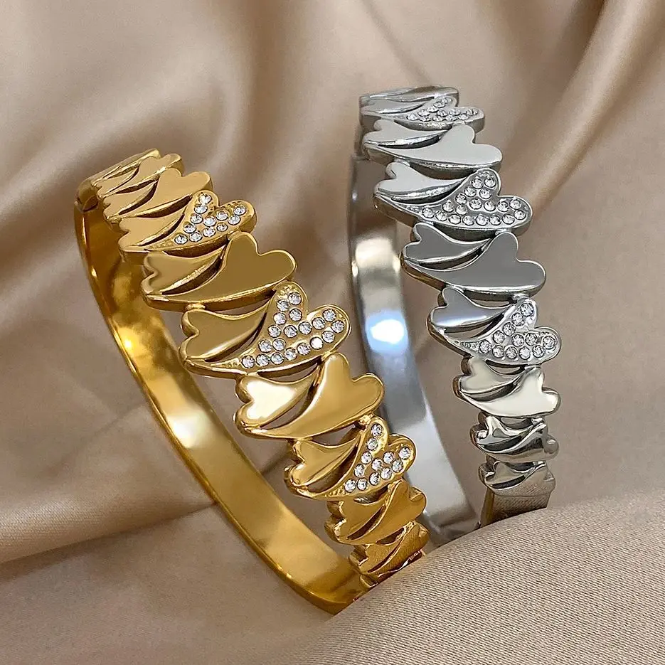Irregular Rhinestone Heart Stainless Steel Bracelet for Women Stylish Gold Plated Geometric Cuff Bangles Waterproof Jewelry