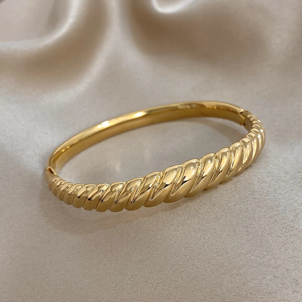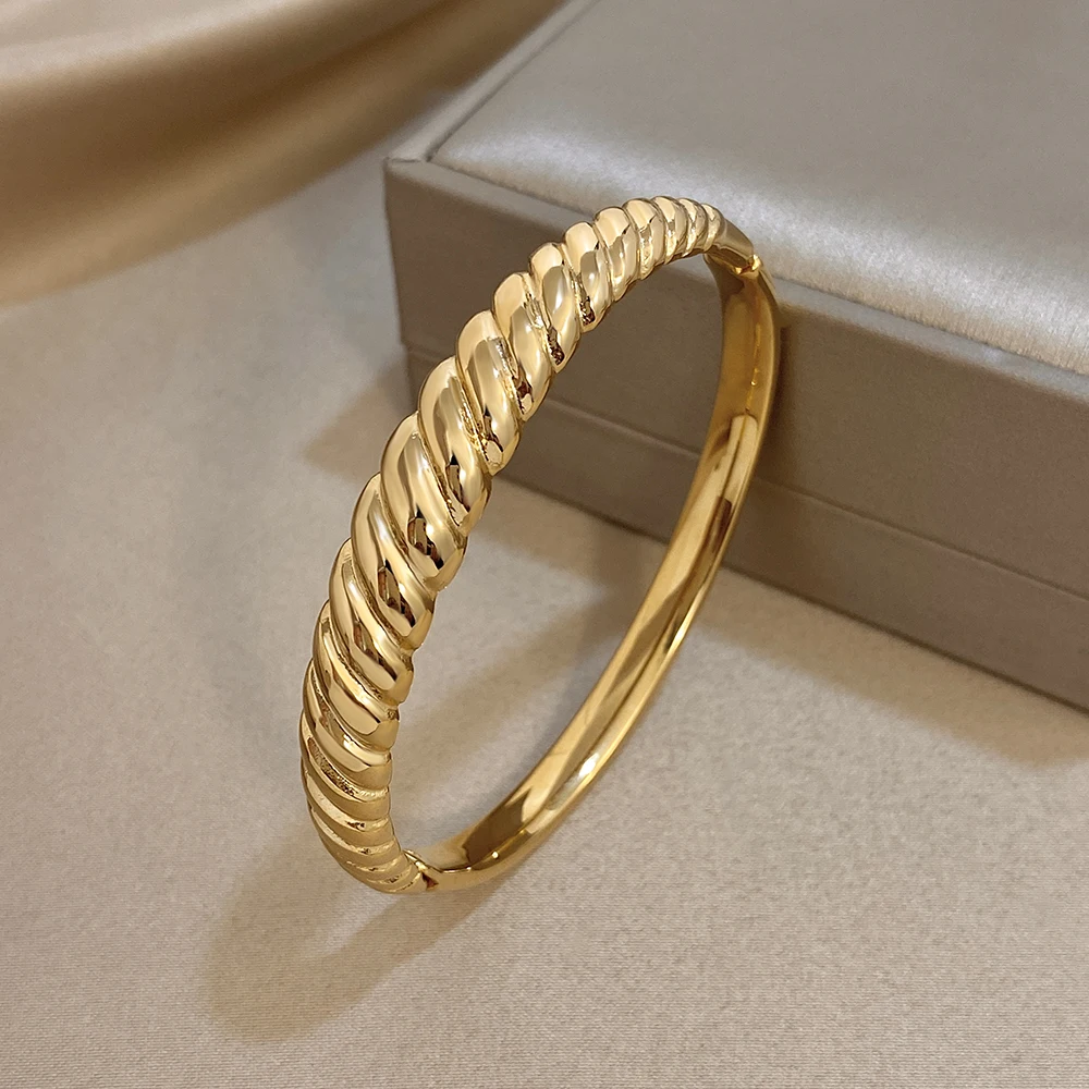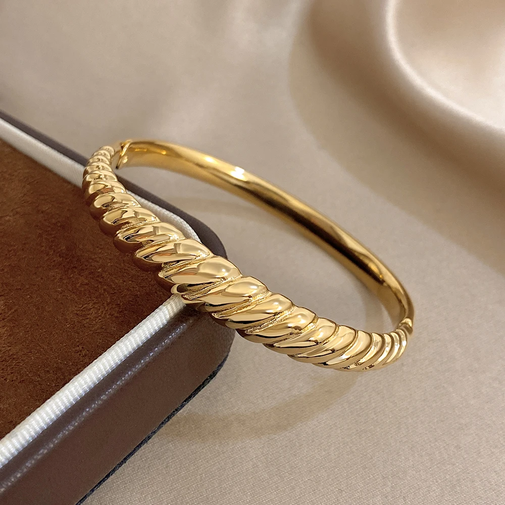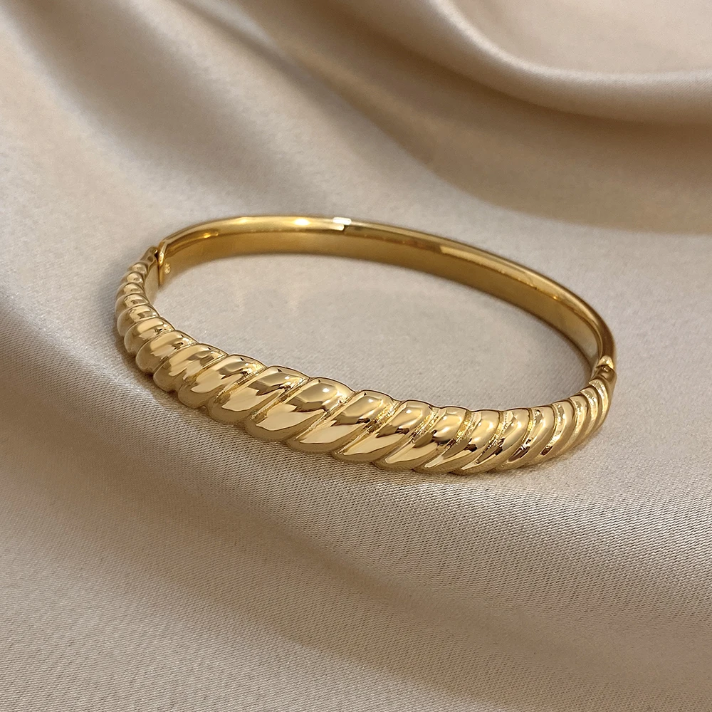Irregular Twisted Textured Chunky Bracelet for Women Trendy Gold Plated Stainless Steel Cuff Bangle Bracelets Waterproof Jewelry