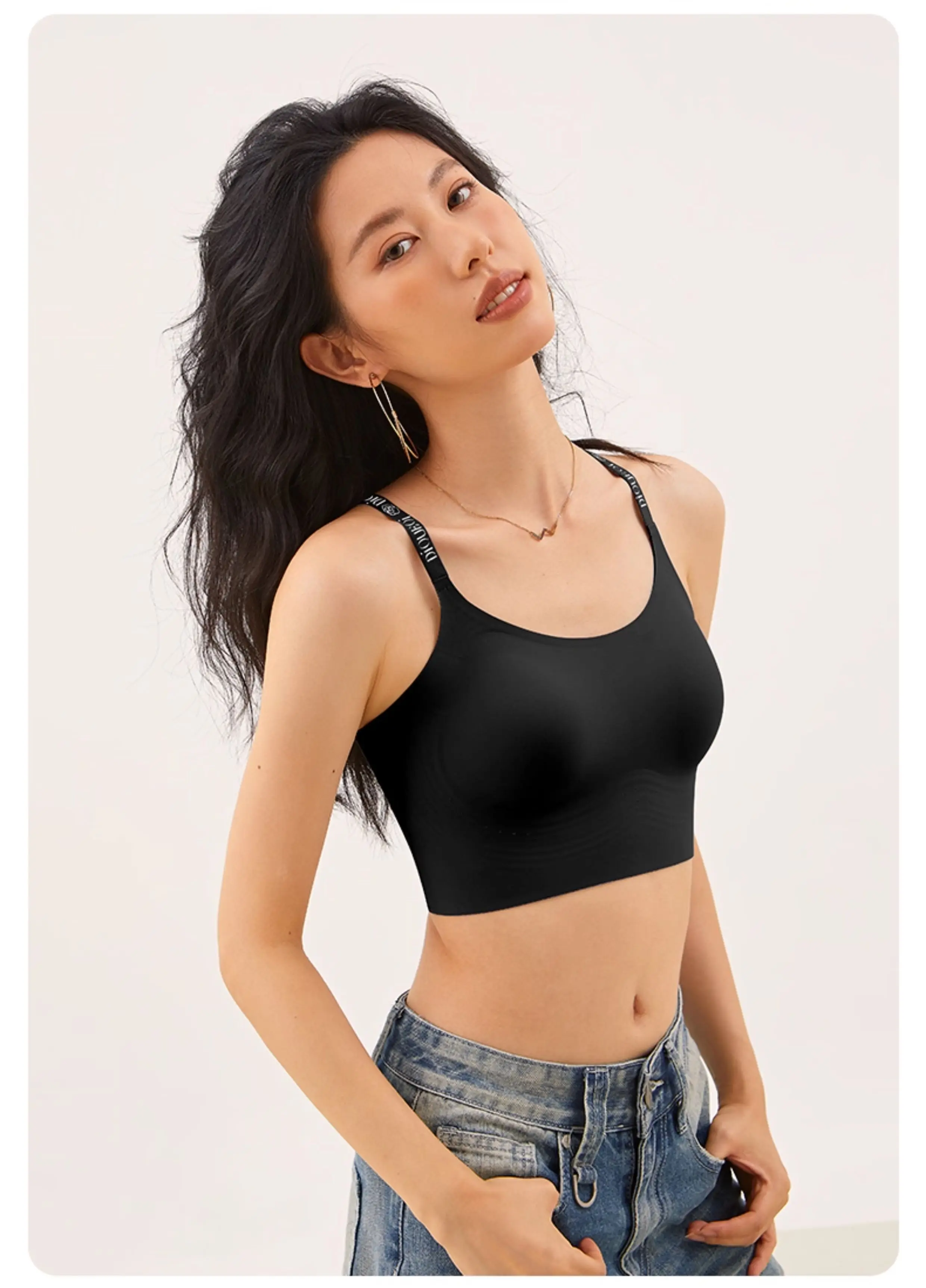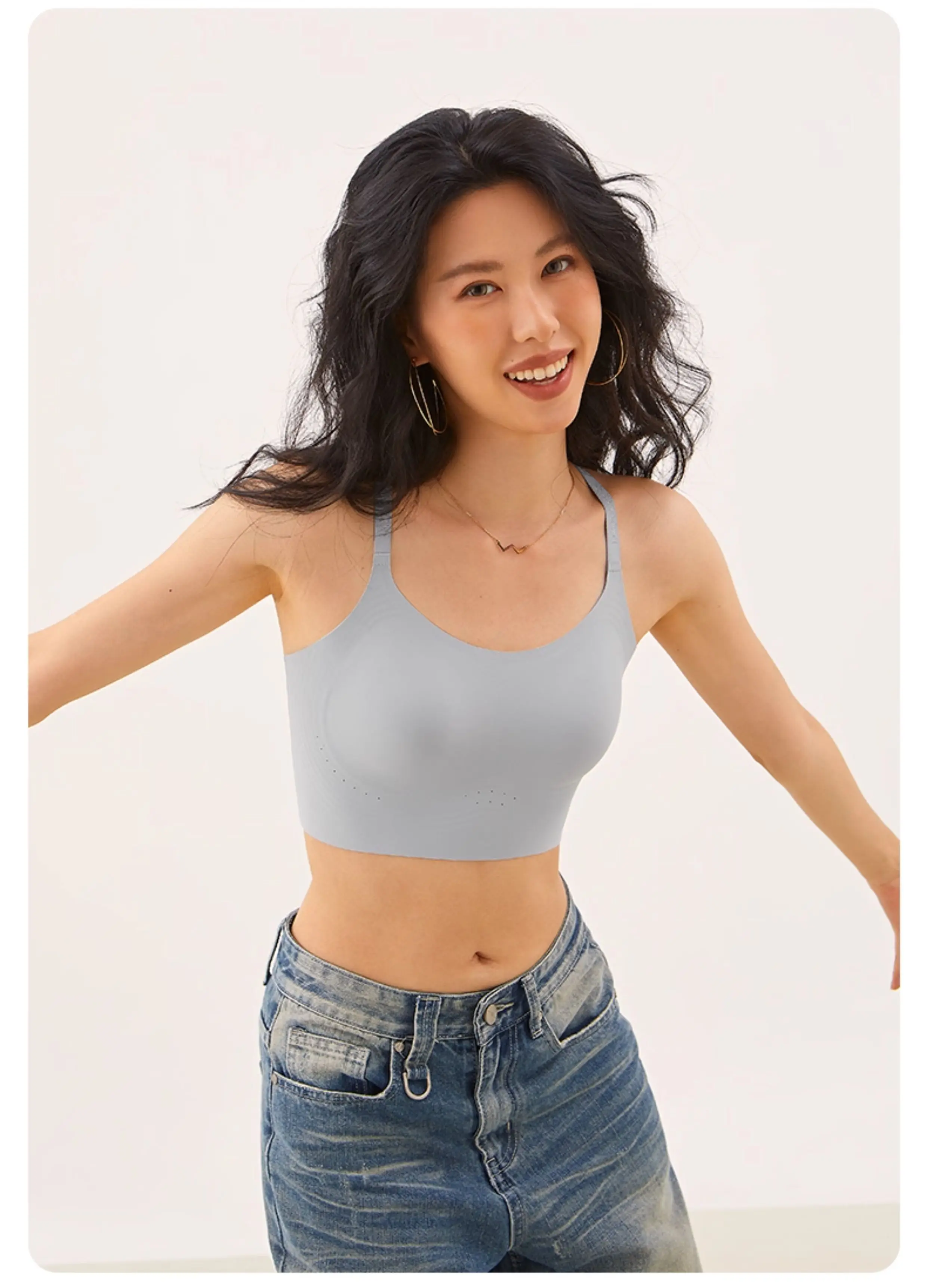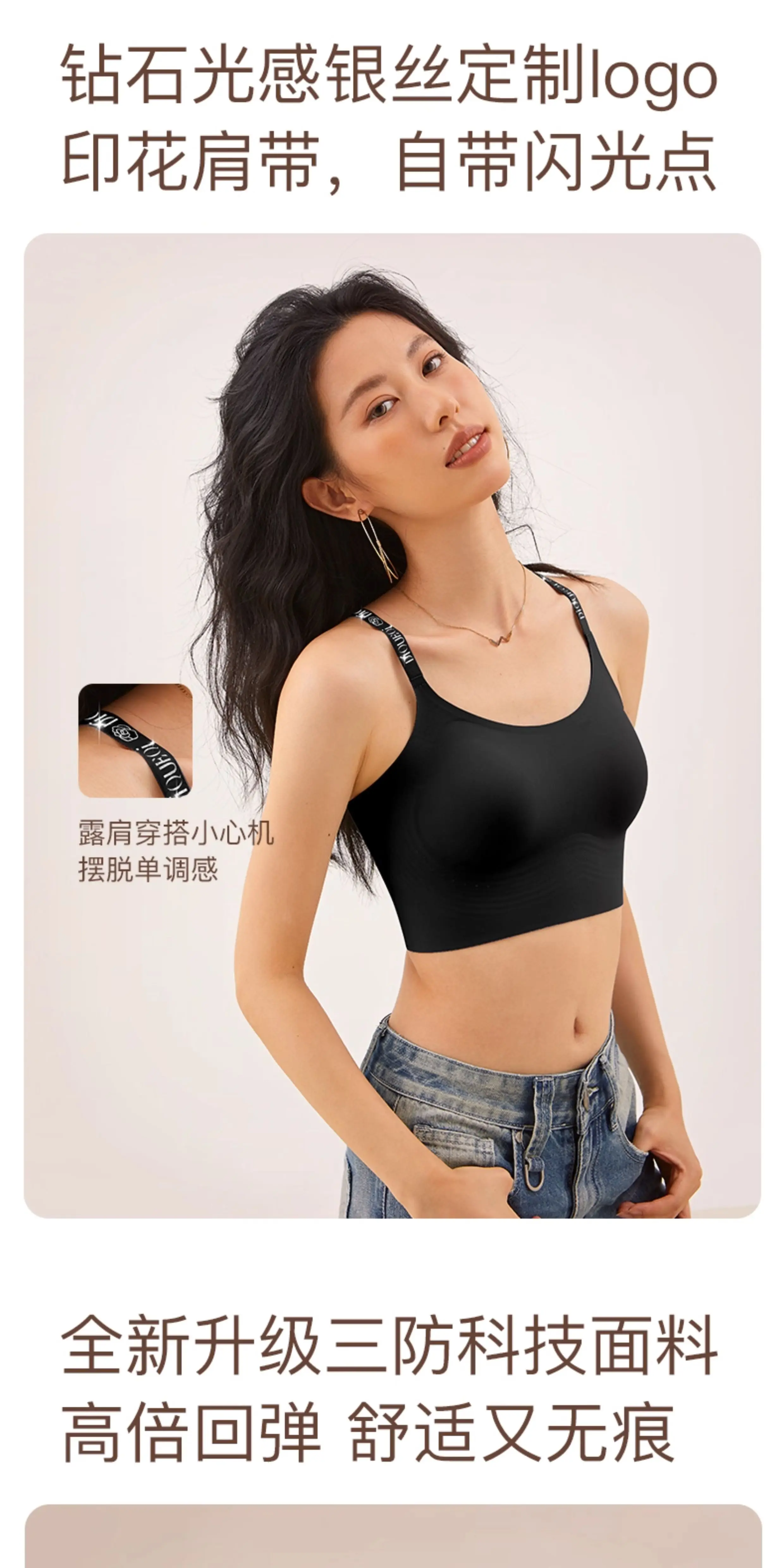 Jelly strip soft support seamless sports underwear women’s steel-free rim integrated cup gathers beautiful vest bra