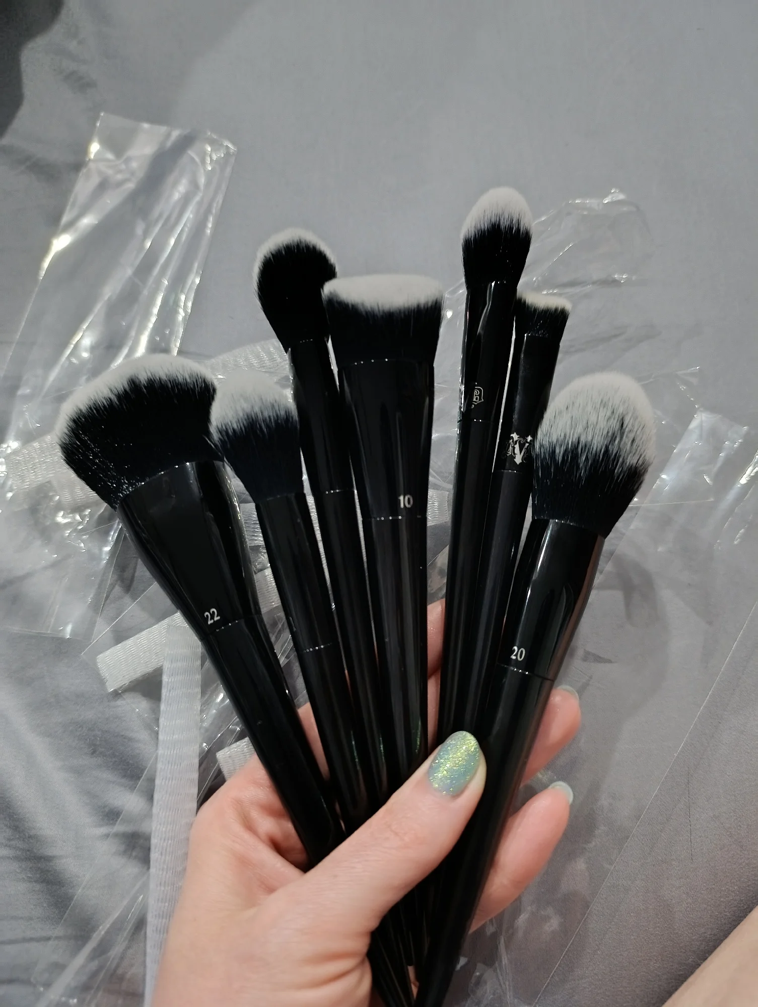 The brushes are great! Comfortable handles, the bristles pick up material well, excellent blending. Thank you! Packed neatly. They arrived without a box, in a bubble wrap bag, with a mesh fabric. Everything is intact.