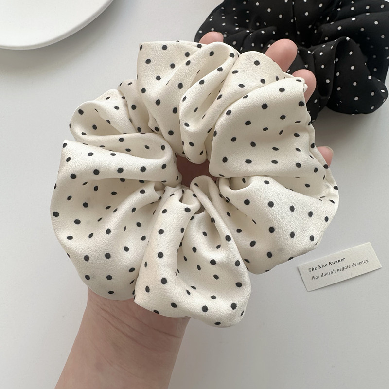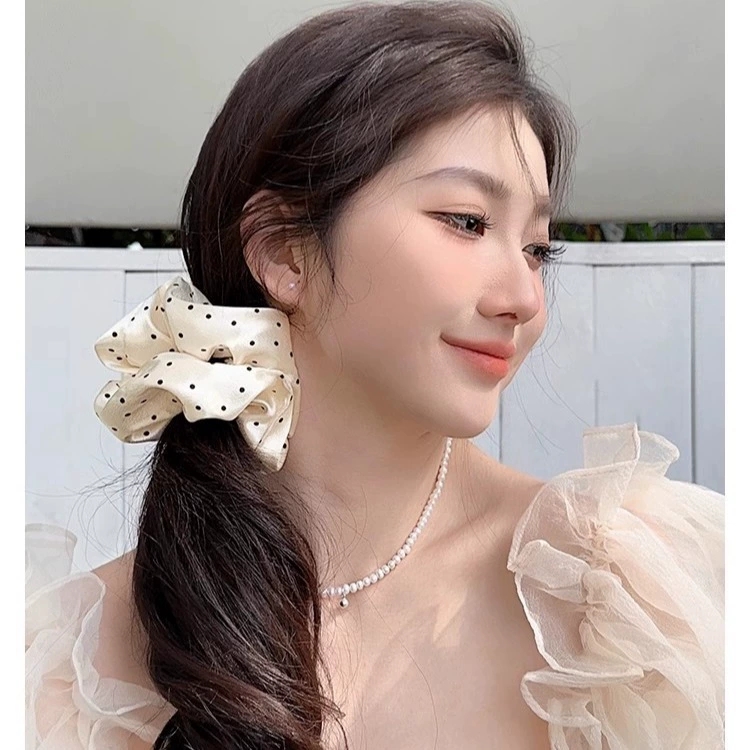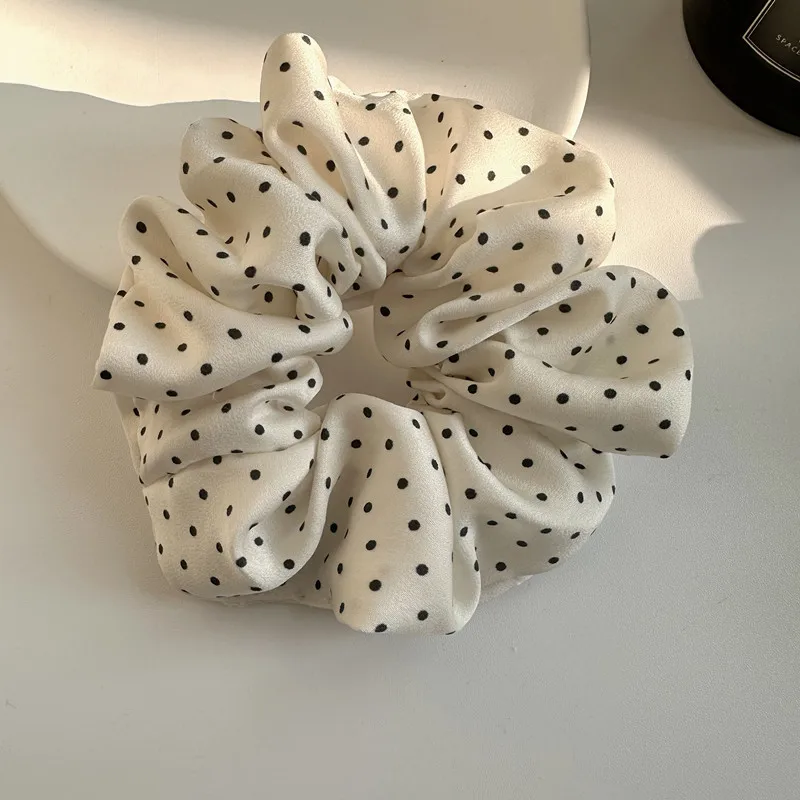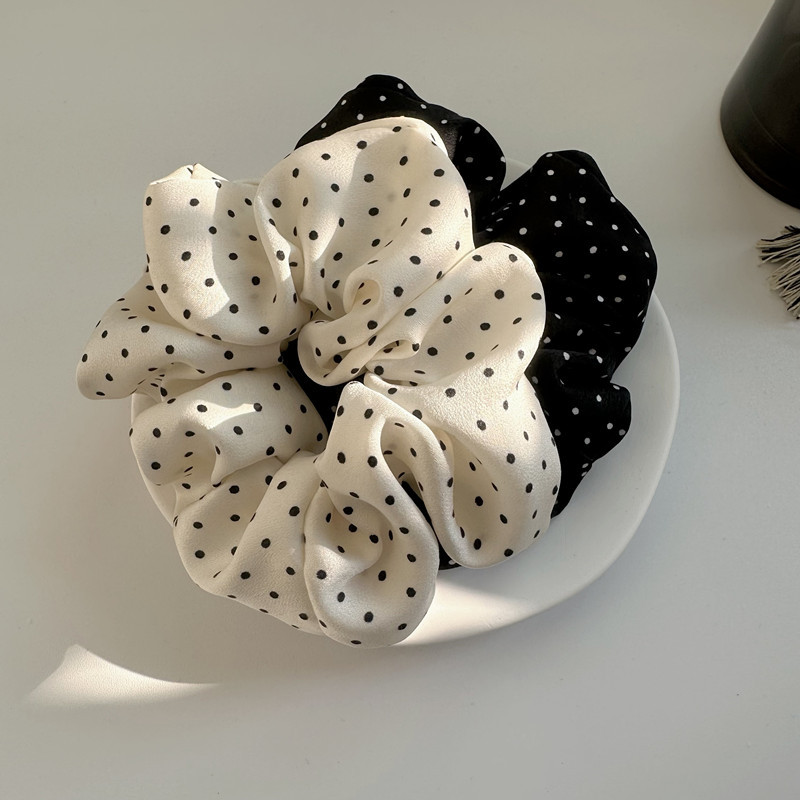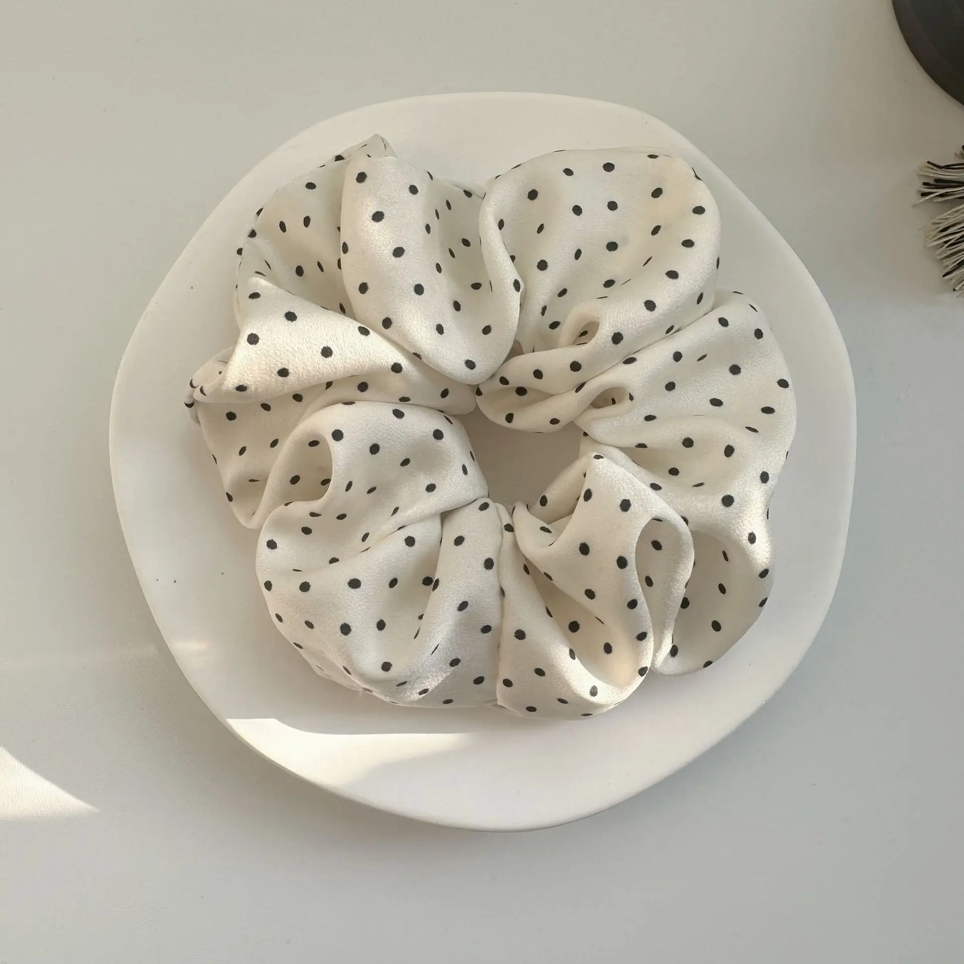 Korea Fashion Dot Satin Scrunchies for Women White Big Hair Bands Elastic Silk Hair Tie Girls Black Ponytail Holder Hair Rope