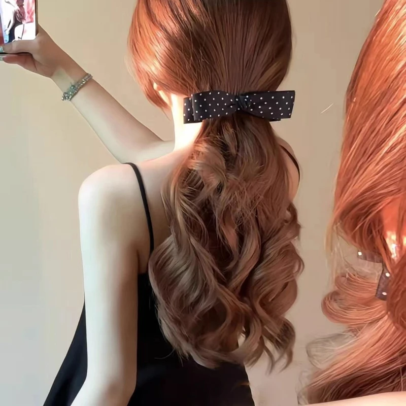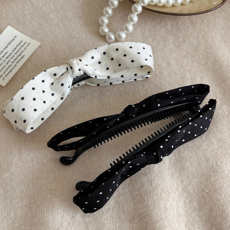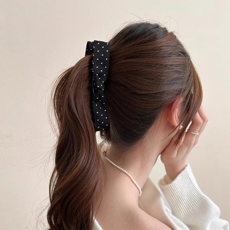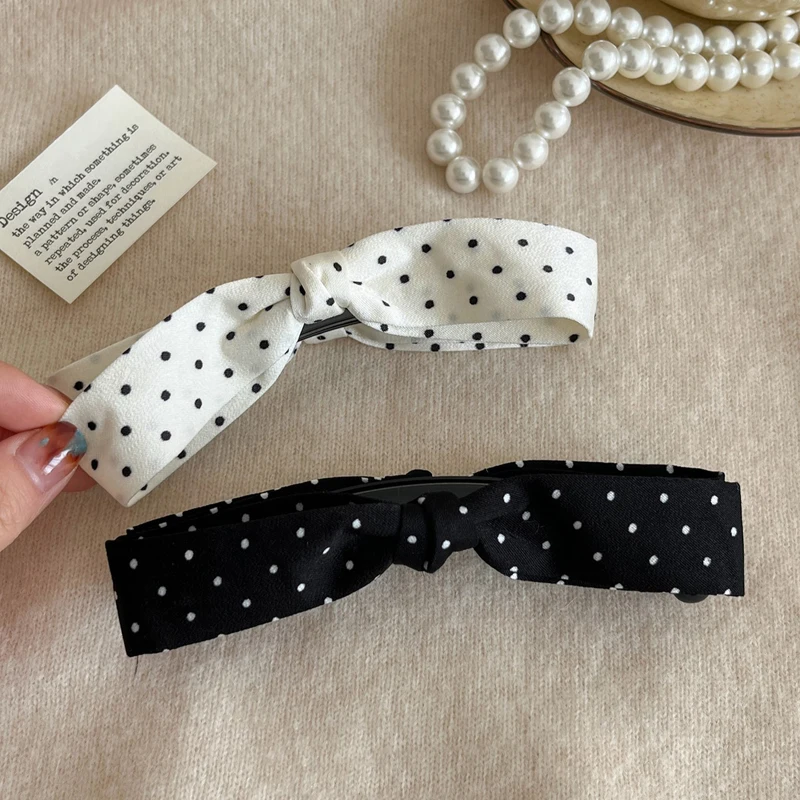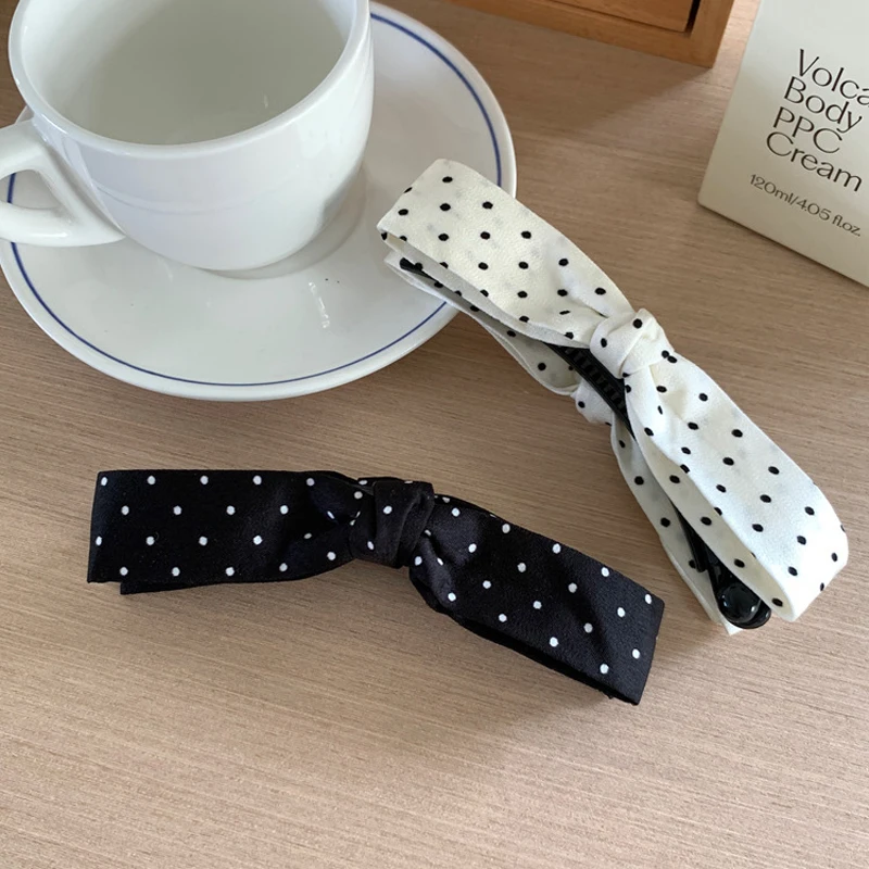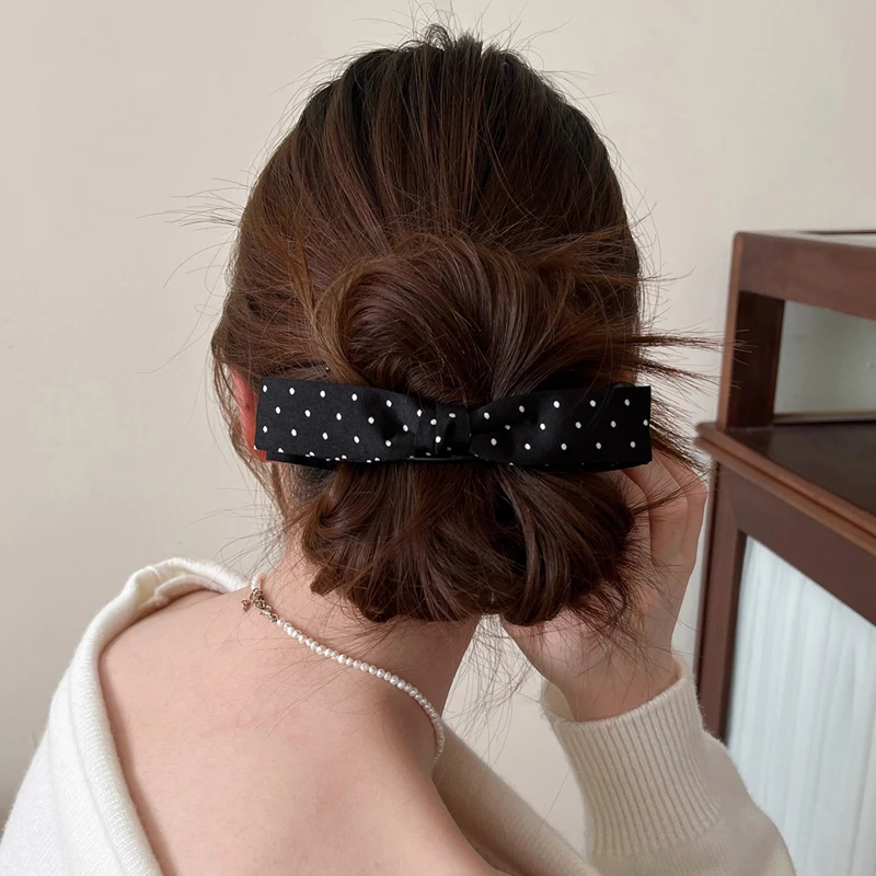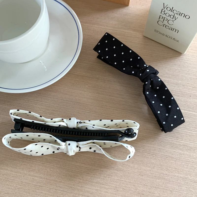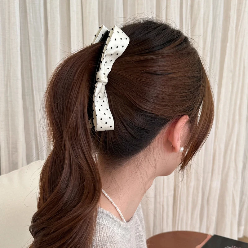 Korea Polka Dot Satin Bow Hair Clips for Women Girls Elegant Banana Clip Daily Headwear Ponytail Hairpin Charms Hair Accessories