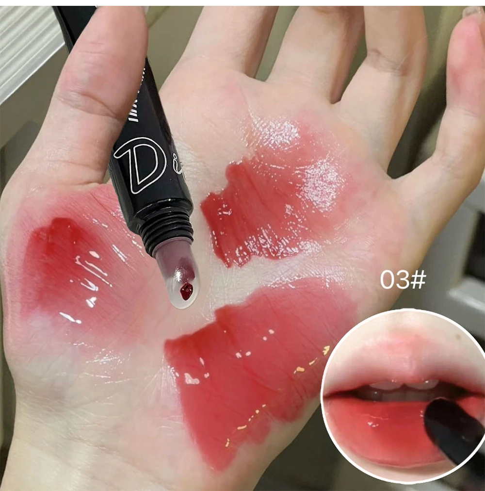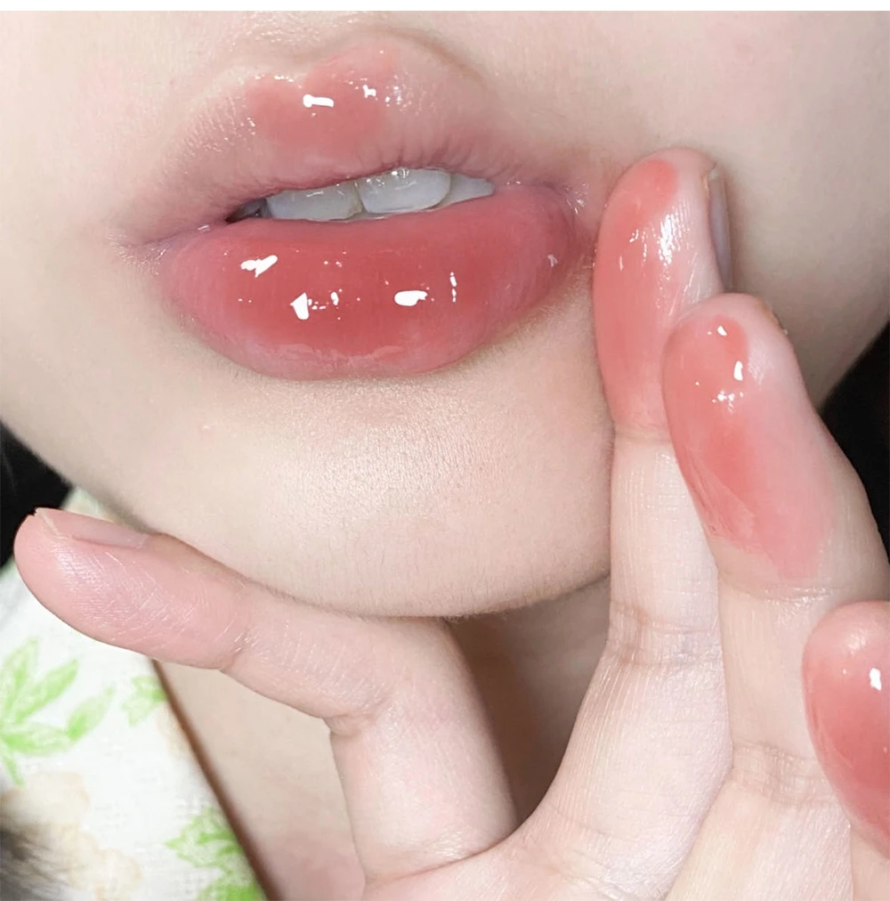 Korean Blood Red Glass Lip Gloss Makeup High Shine Watery Juicy Tint Non-Sticky Hydrating Long-Lasting Hydrating Lipstick