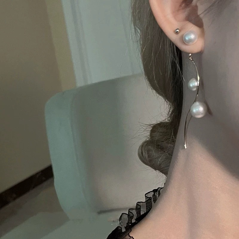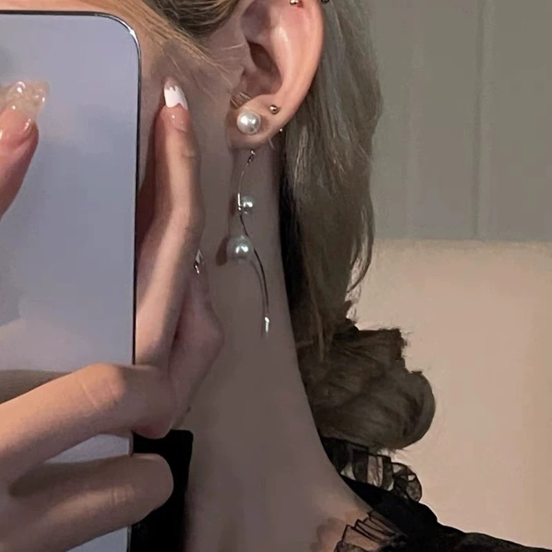Korean Exquisite Imitation Pearl Long Tassel Dangle Earring For Women Shiny Zircon Flower Pearl Drop Earrings Christmas Jewelry