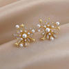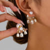 Korean Exquisite Imitation Pearl Long Tassel Dangle Earring For Women Shiny Zircon Flower Pearl Drop Earrings Christmas Jewelry