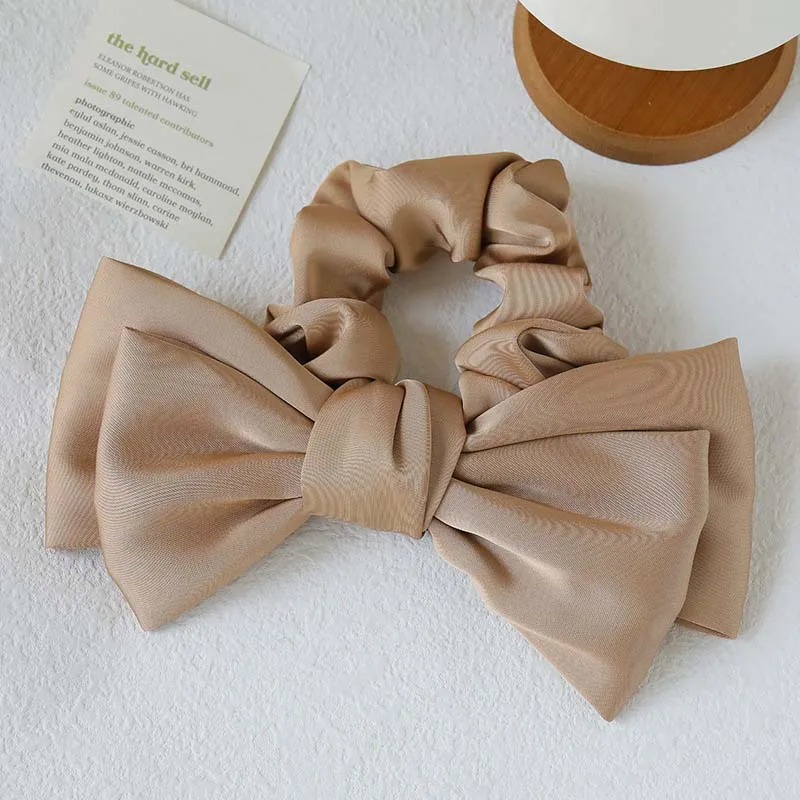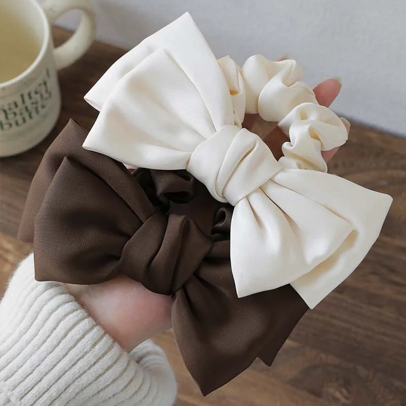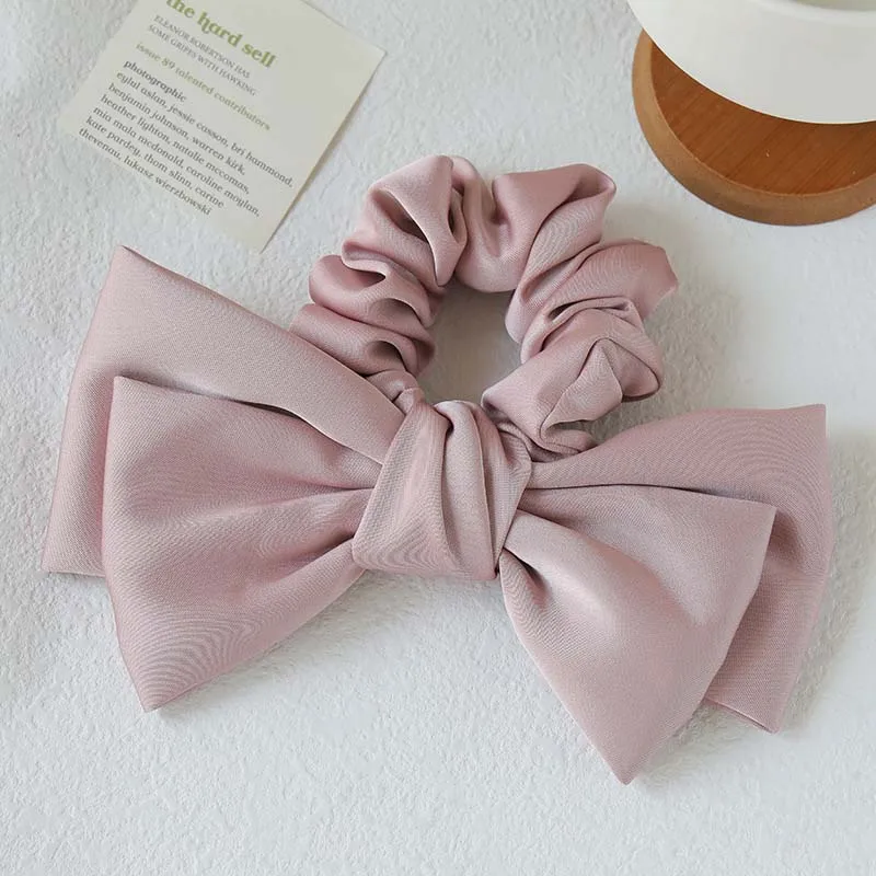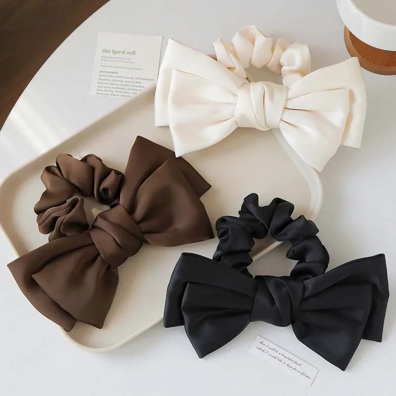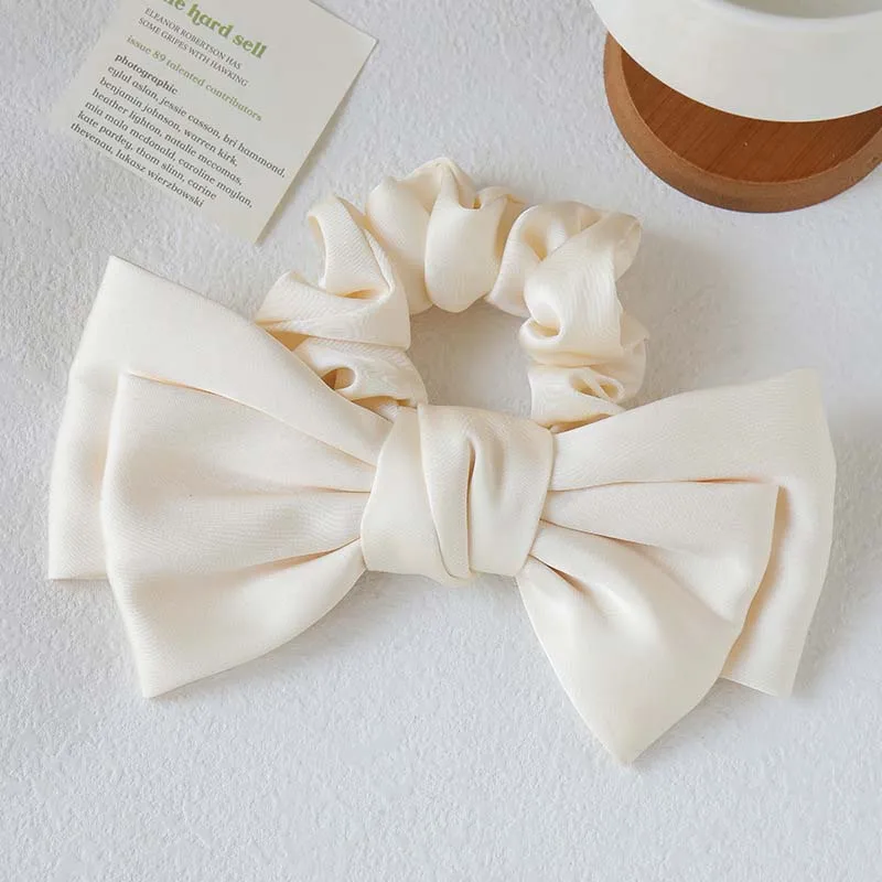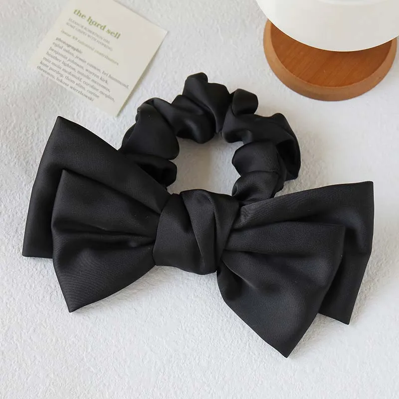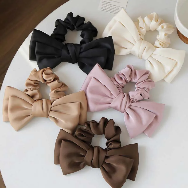 Korean Solid Color Satin Bow Hair Rope for Women Girls Sweet Elastic Ponytail Headband Rubber Band Headwear Hair Accessories