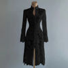 Lace Hollow Out Spliced Solid Dresses For Women Stand Collar Long Sleeve High Waist Single-breasted Elegant Coat Midi Dress