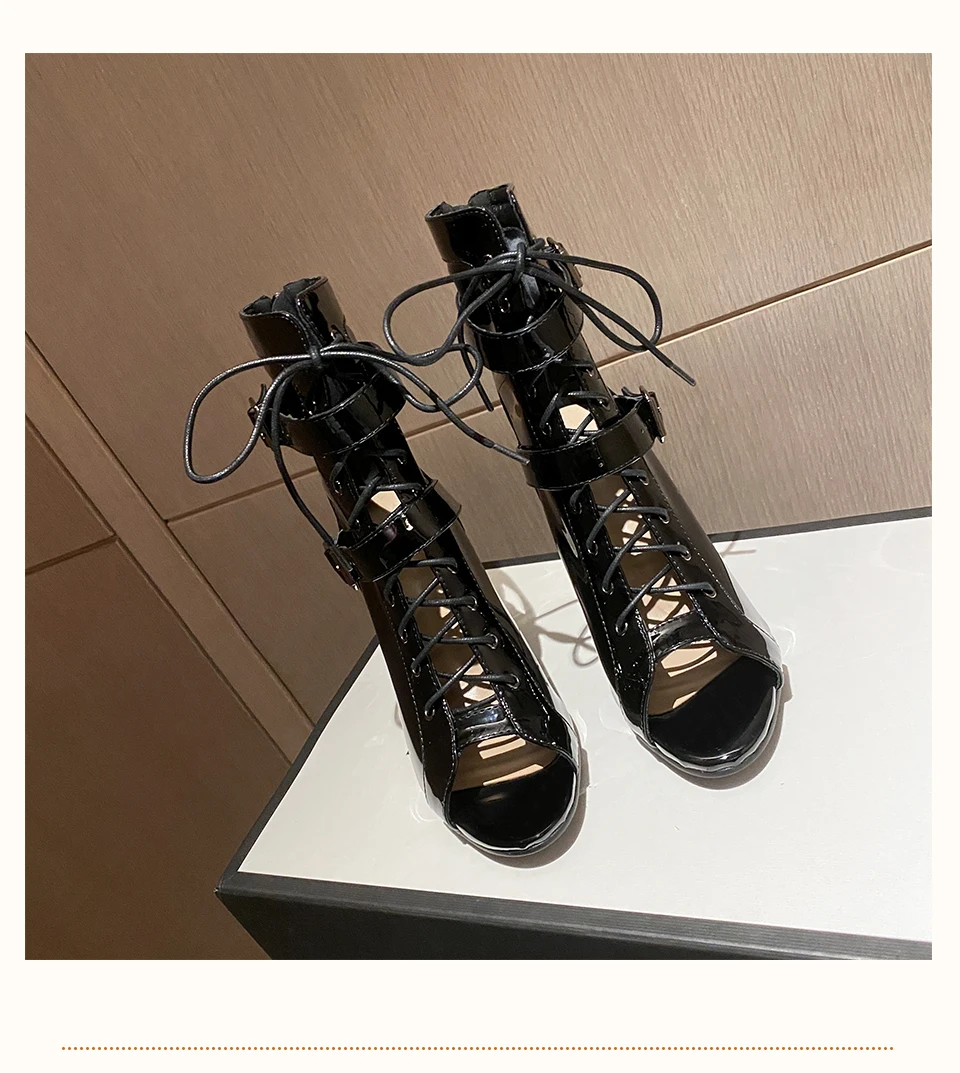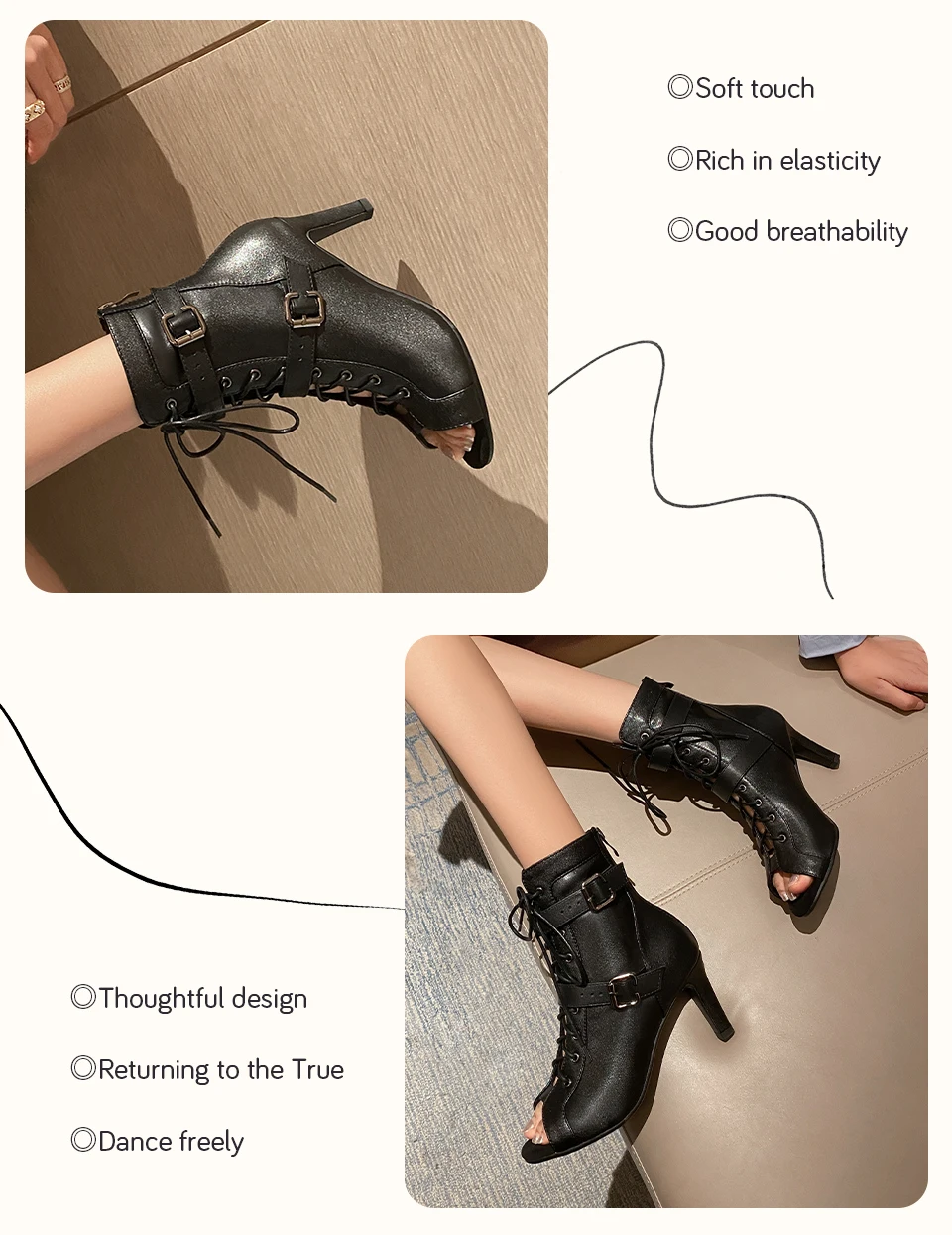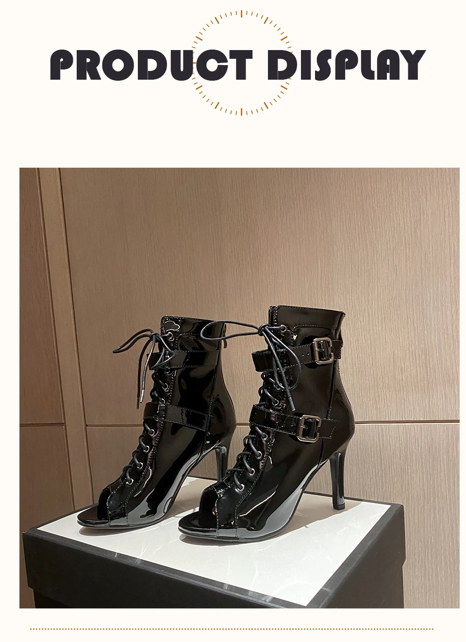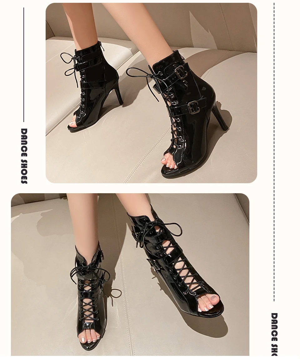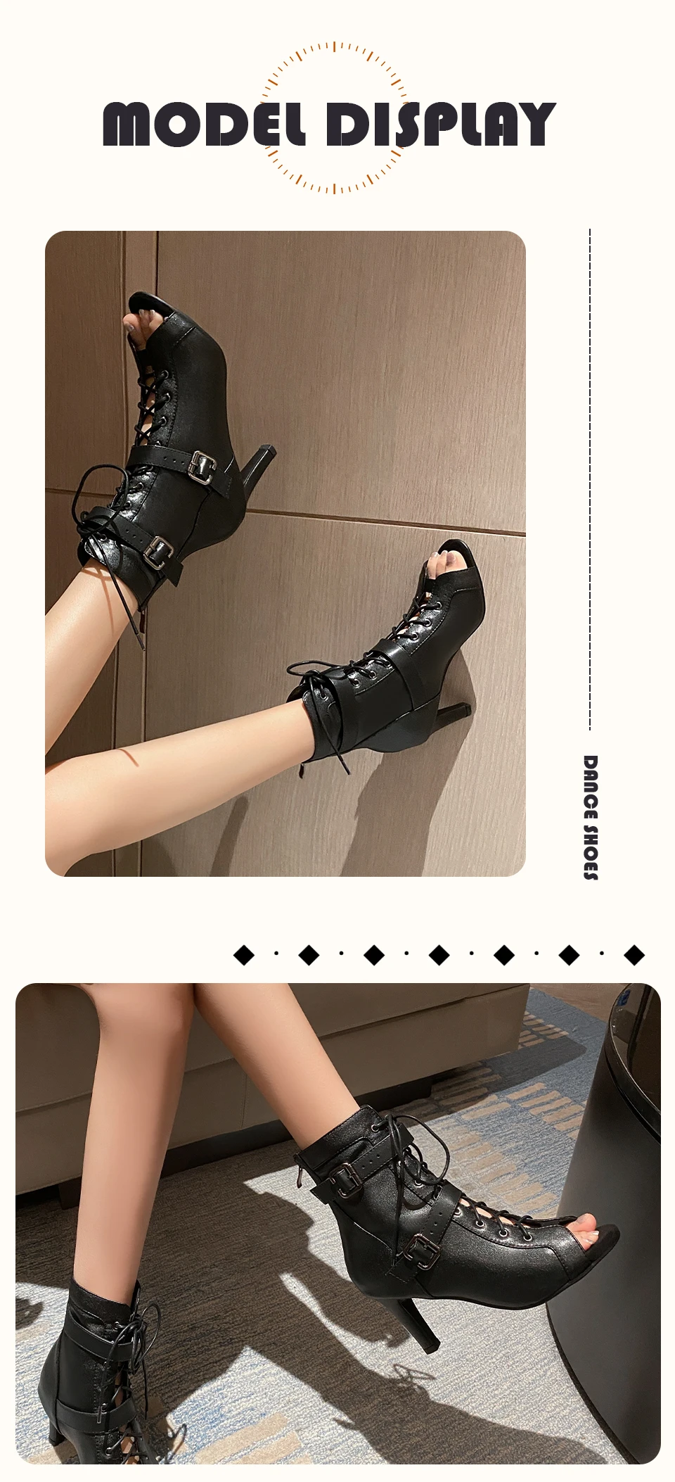 Lace-up Short Boots Fish Mouth Sandals Women’s Stiletto Dance Shoes Jazz Latin Salsa Dance High-heeled Large Size Dancing Shoes