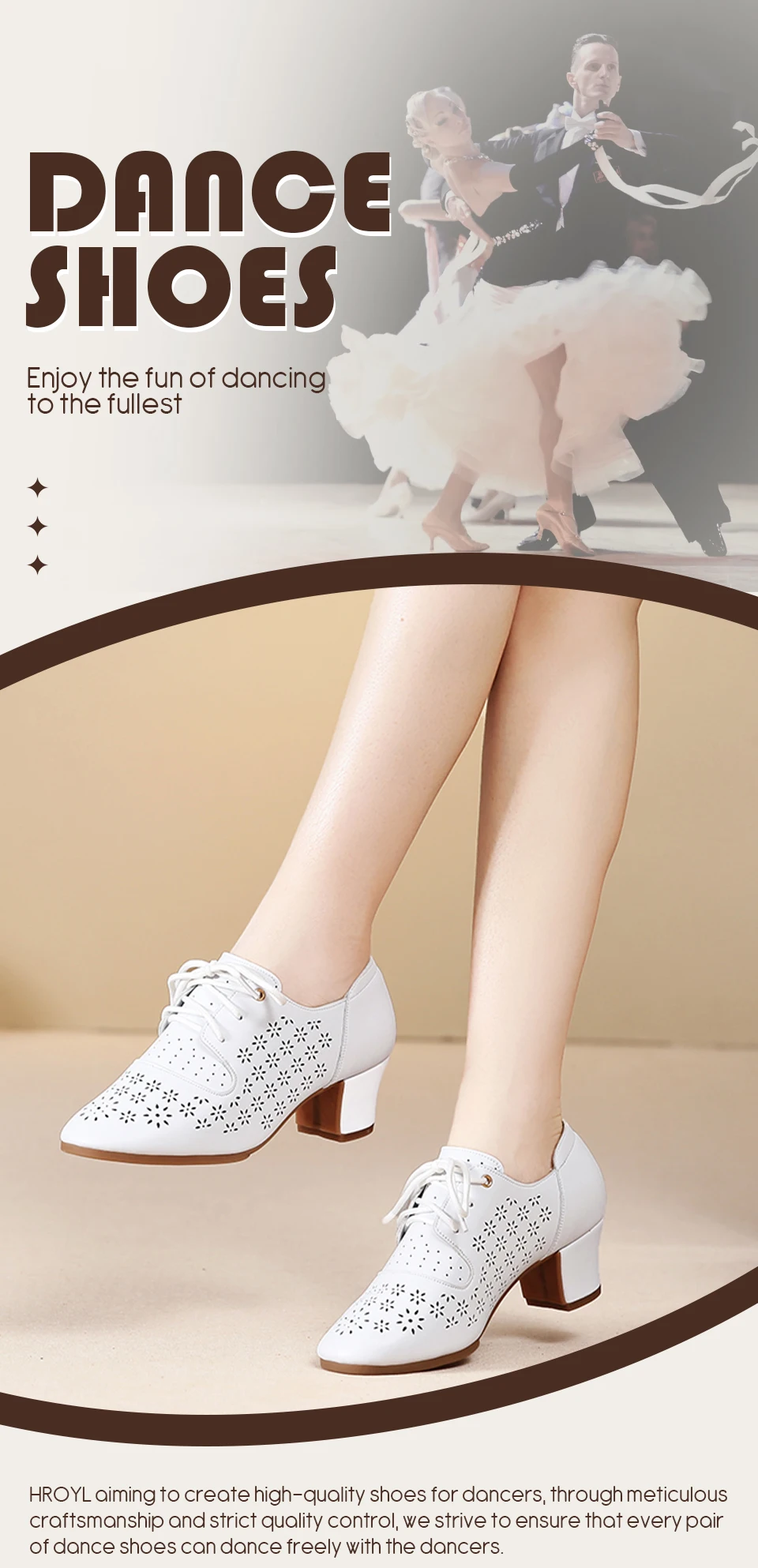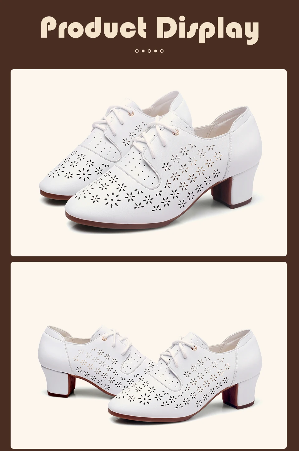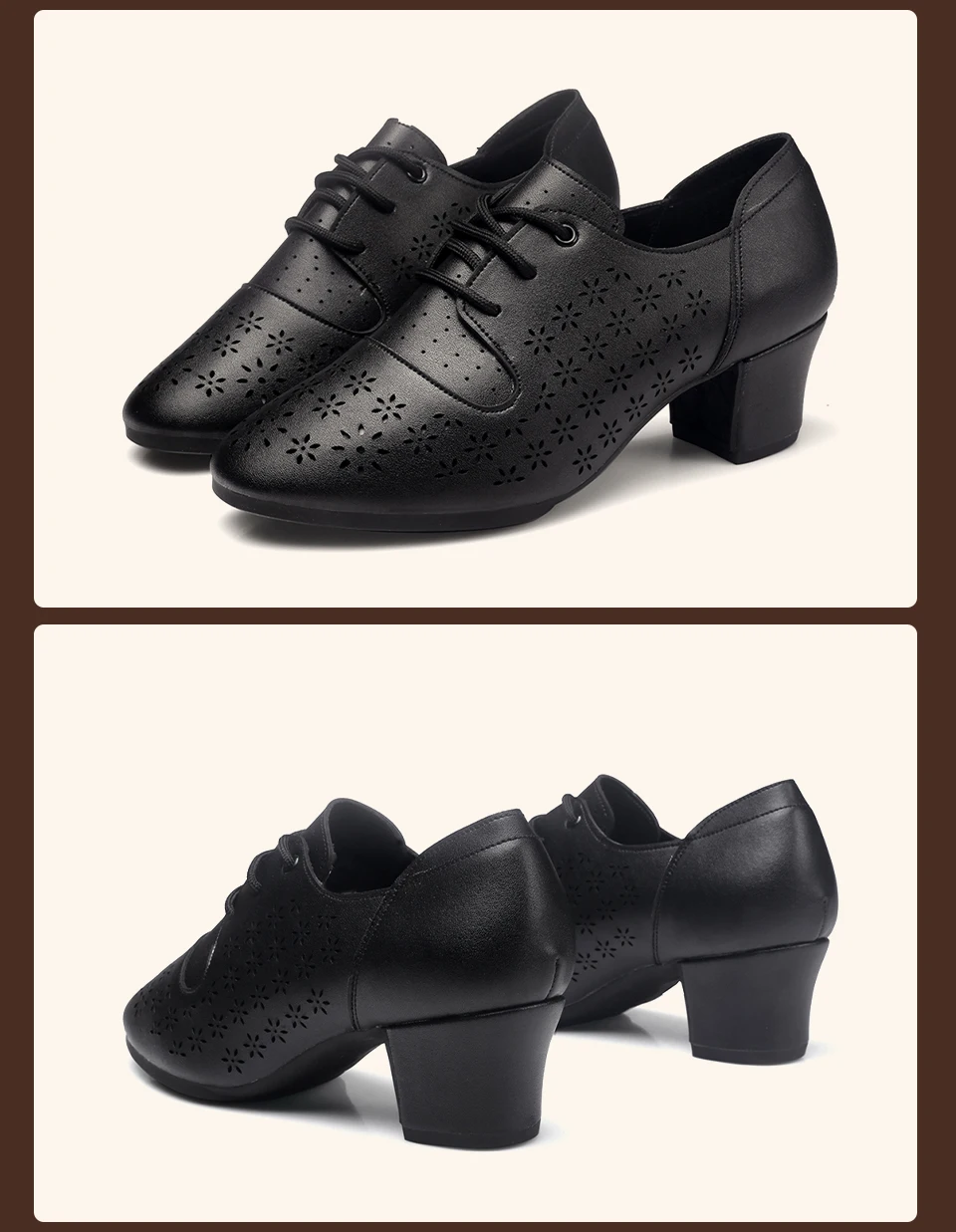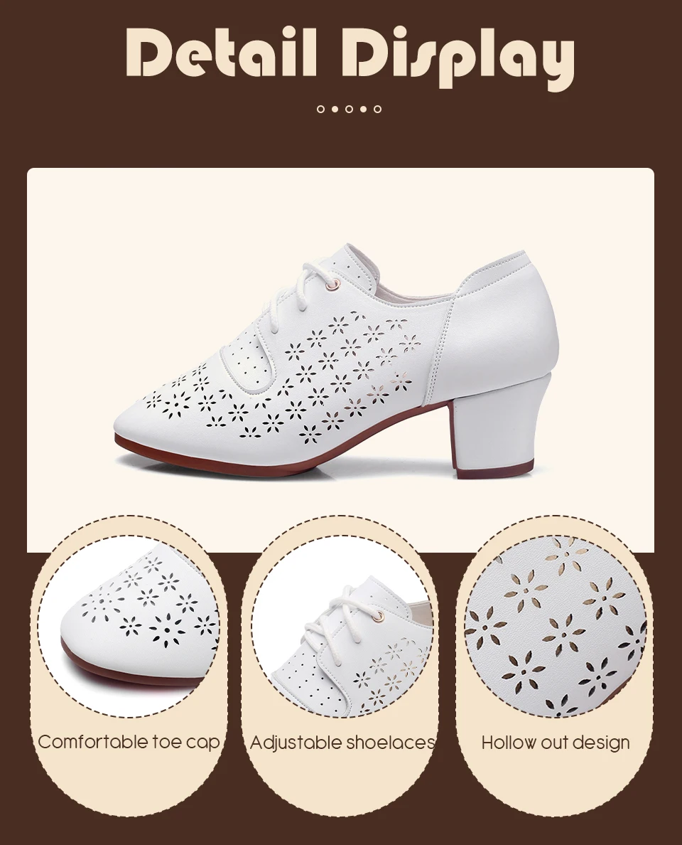 Ladies New Fashion Breathable Hole Mid-heel Soft-soled Dance Shoes Women Lace-up Dance Shoes National Standard Dancing Shoes