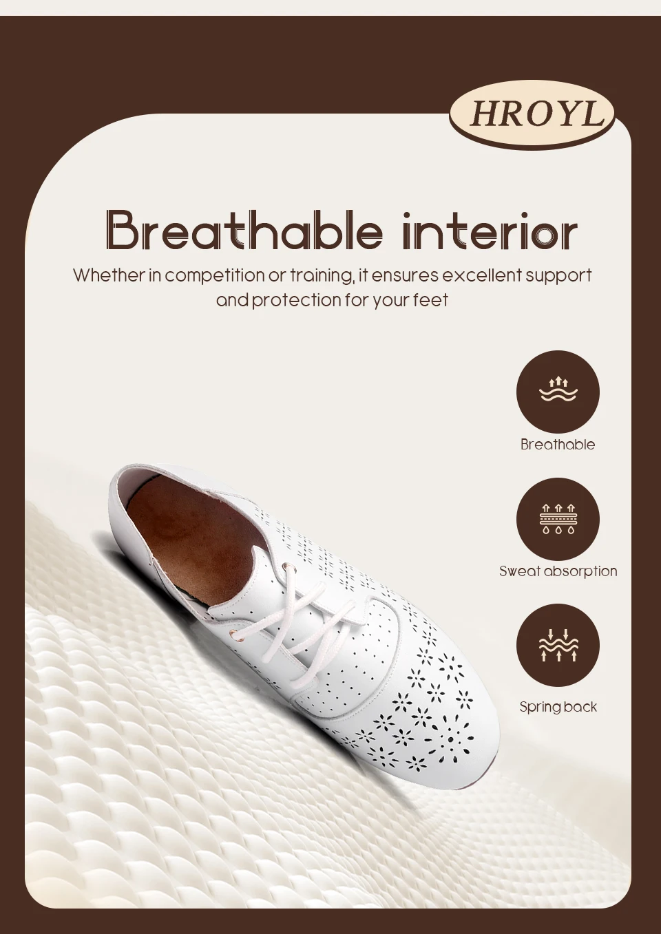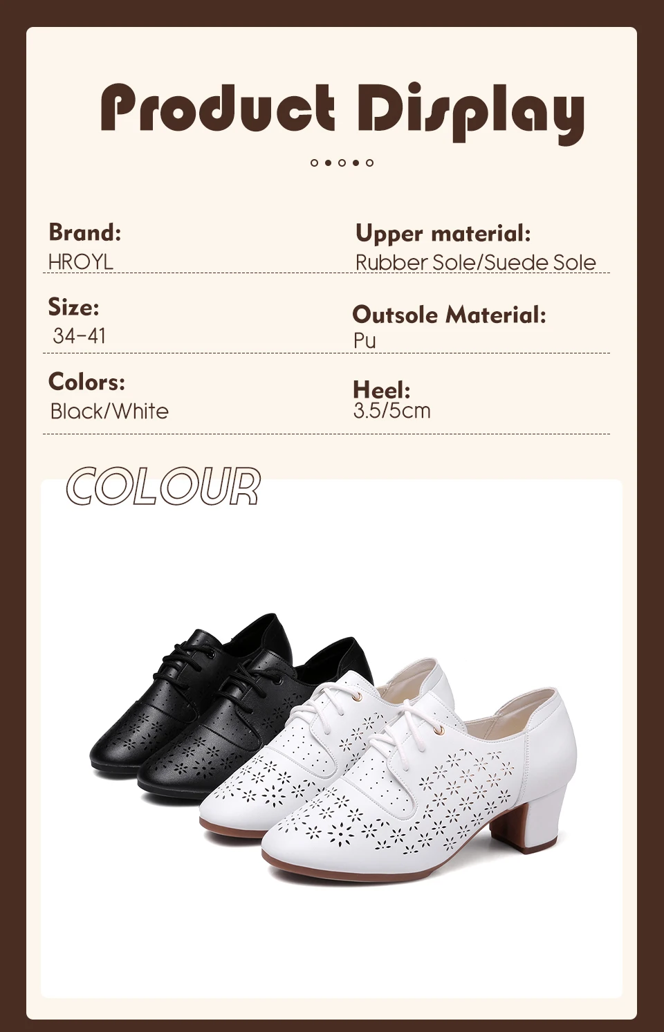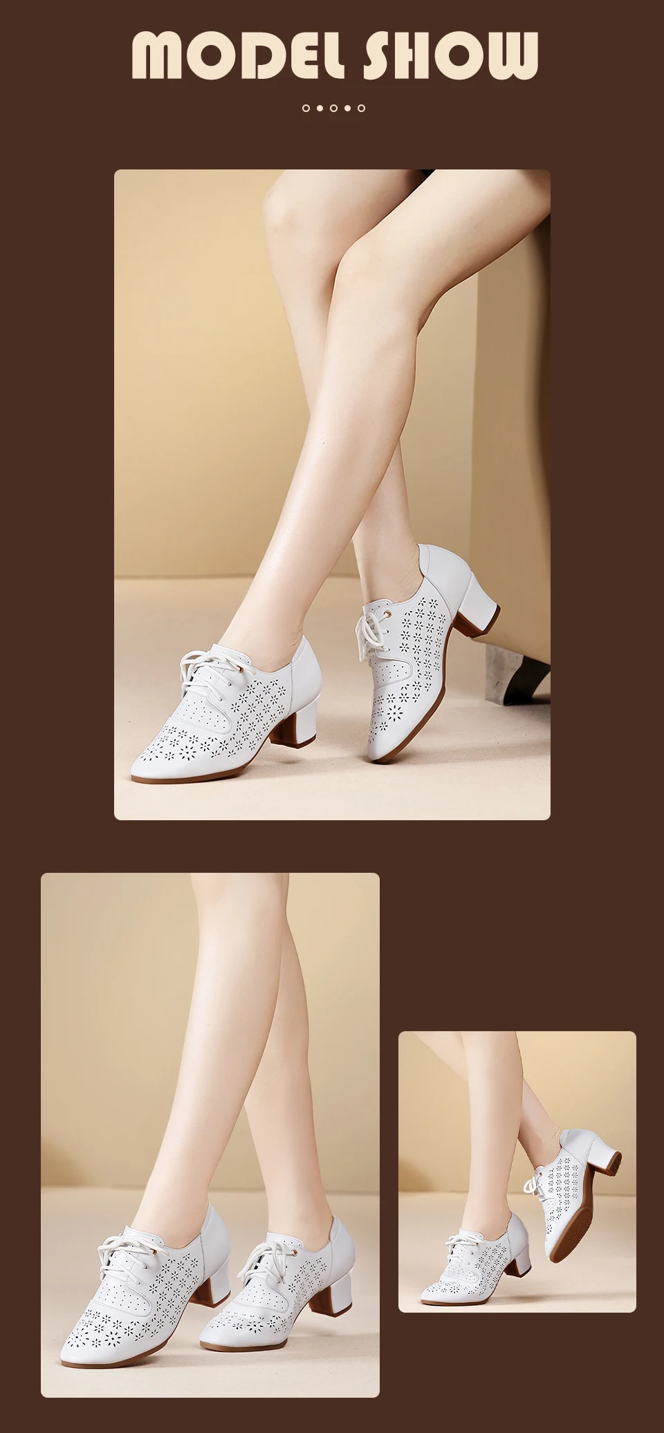 Ladies New Fashion Breathable Hole Mid-heel Soft-soled Dance Shoes Women Lace-up Dance Shoes National Standard Dancing Shoes