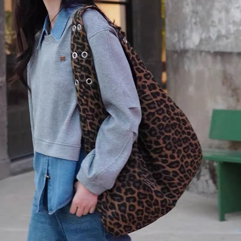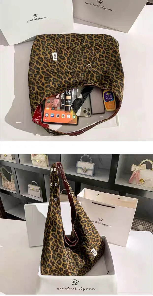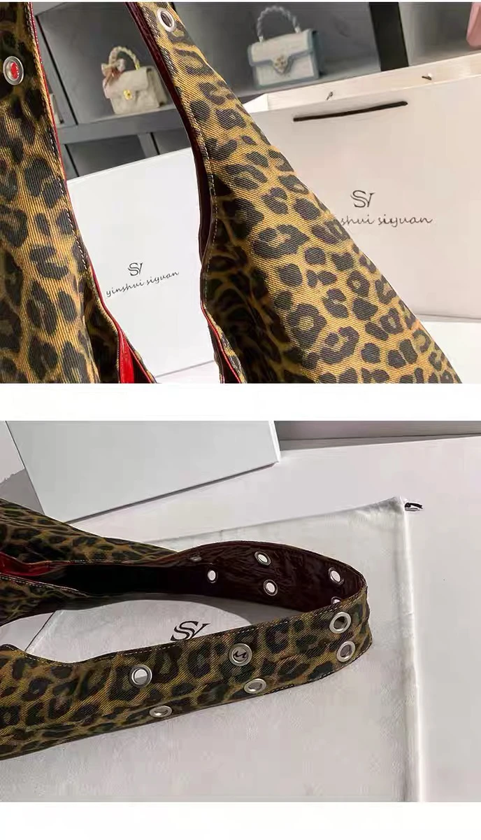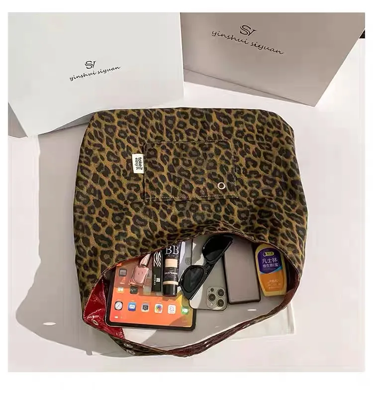 Large Capacity Red Bag Women leopard print New Retro Texture Single Shoulder Tote Bags Fashion Versatile Casual Ladies Handbags