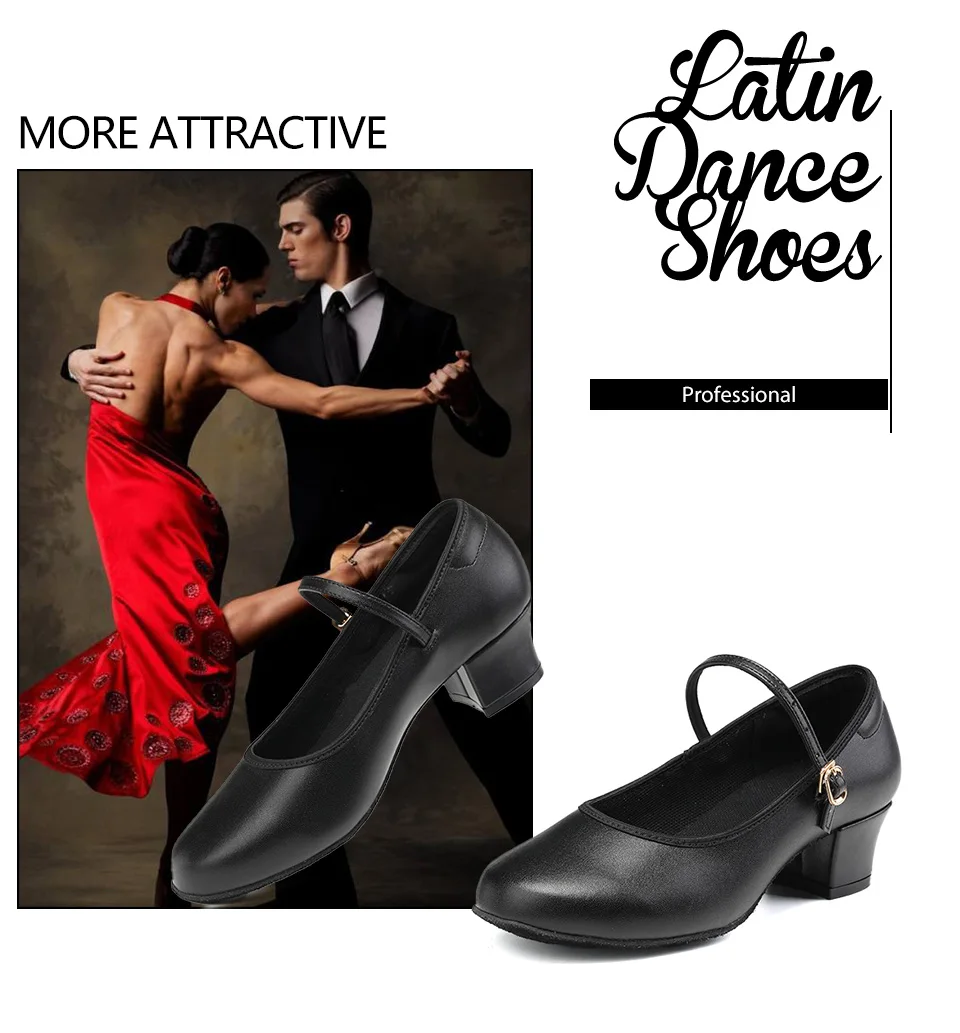 Latin Ballroom Dance Shoes for Women 4 CM Heel Closed Toe Modern Salsa Dance Teaching Performance Dancing Shoes