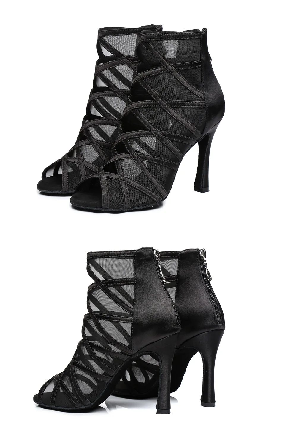 Latin Heeled Dance Shoes For Women Air-Mesh Zipper Women’s Ballroom Dancing Shoes Salsa Dance High Heels