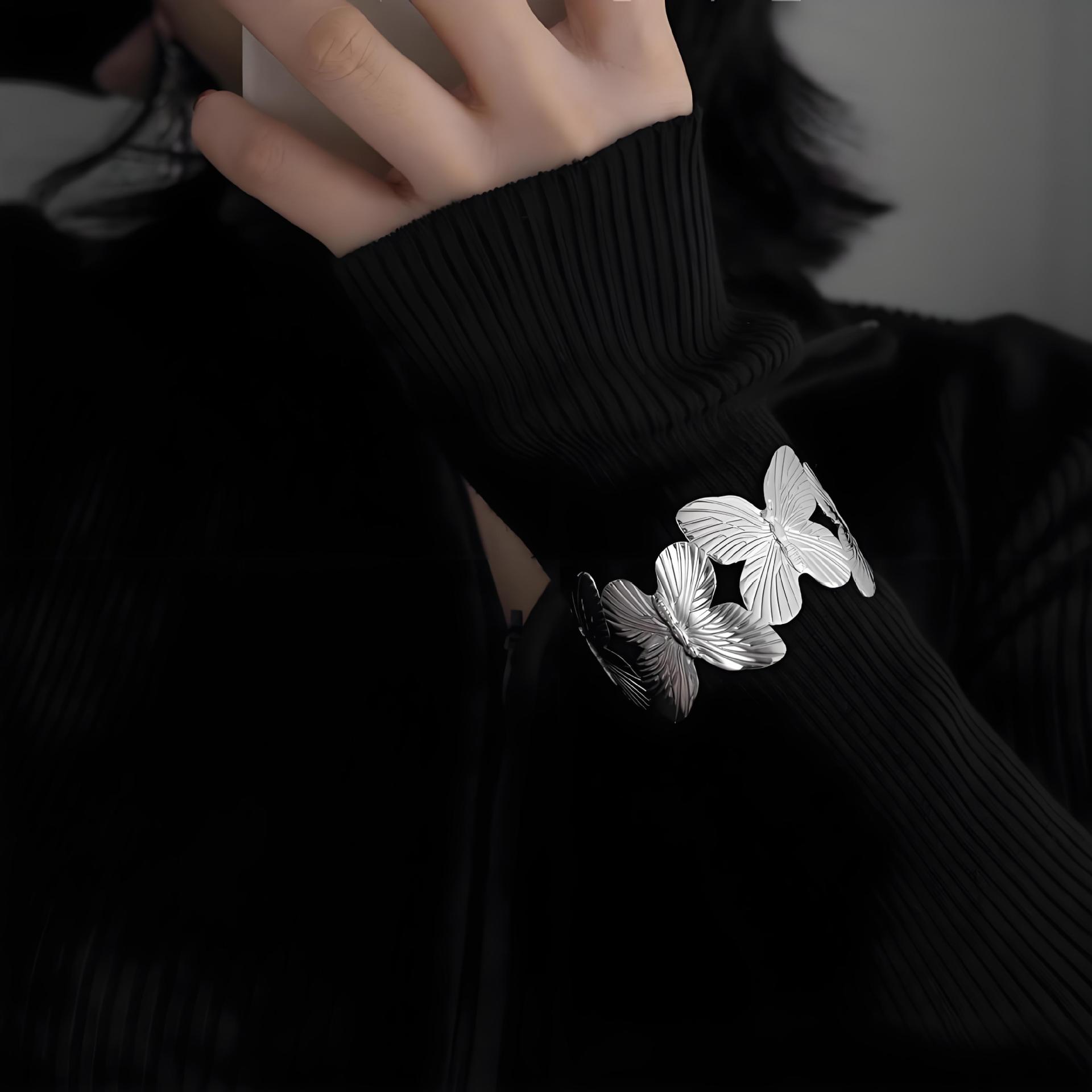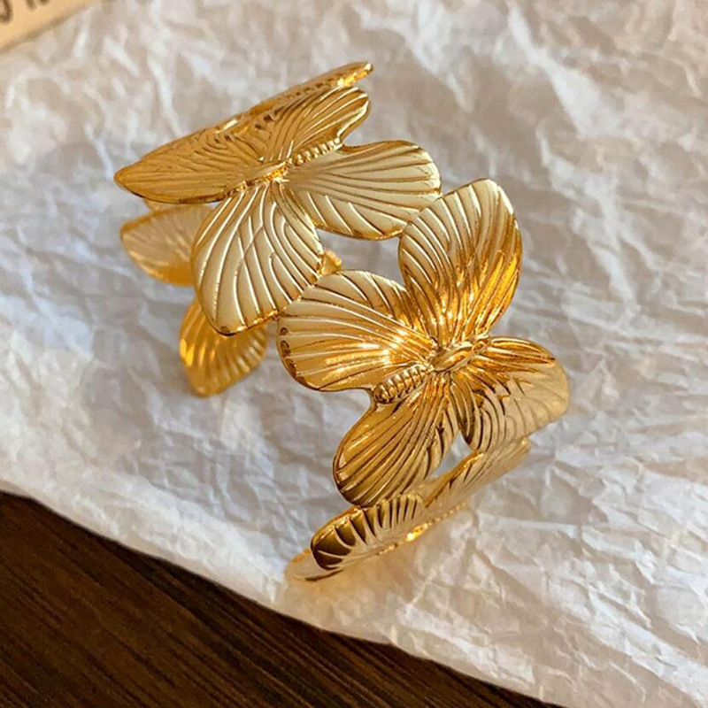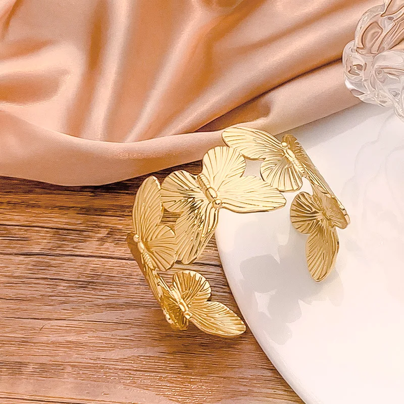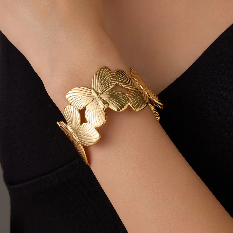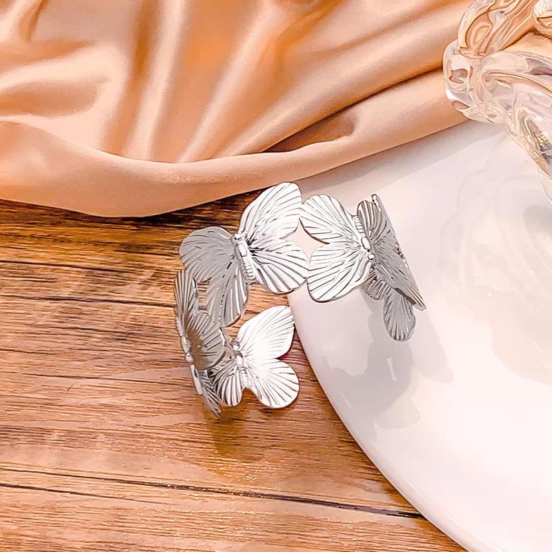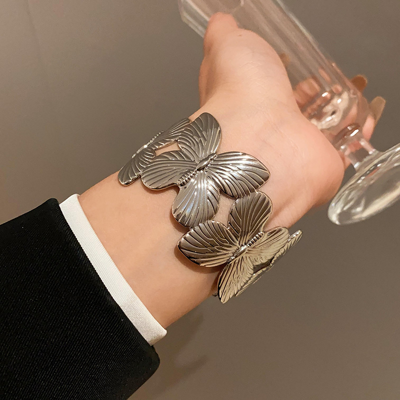 LATS Fashion New Metal Butterfly Cuff Bracelet for Women Girl Opening Geometric Adjustable Hand Jewelry Wholesale