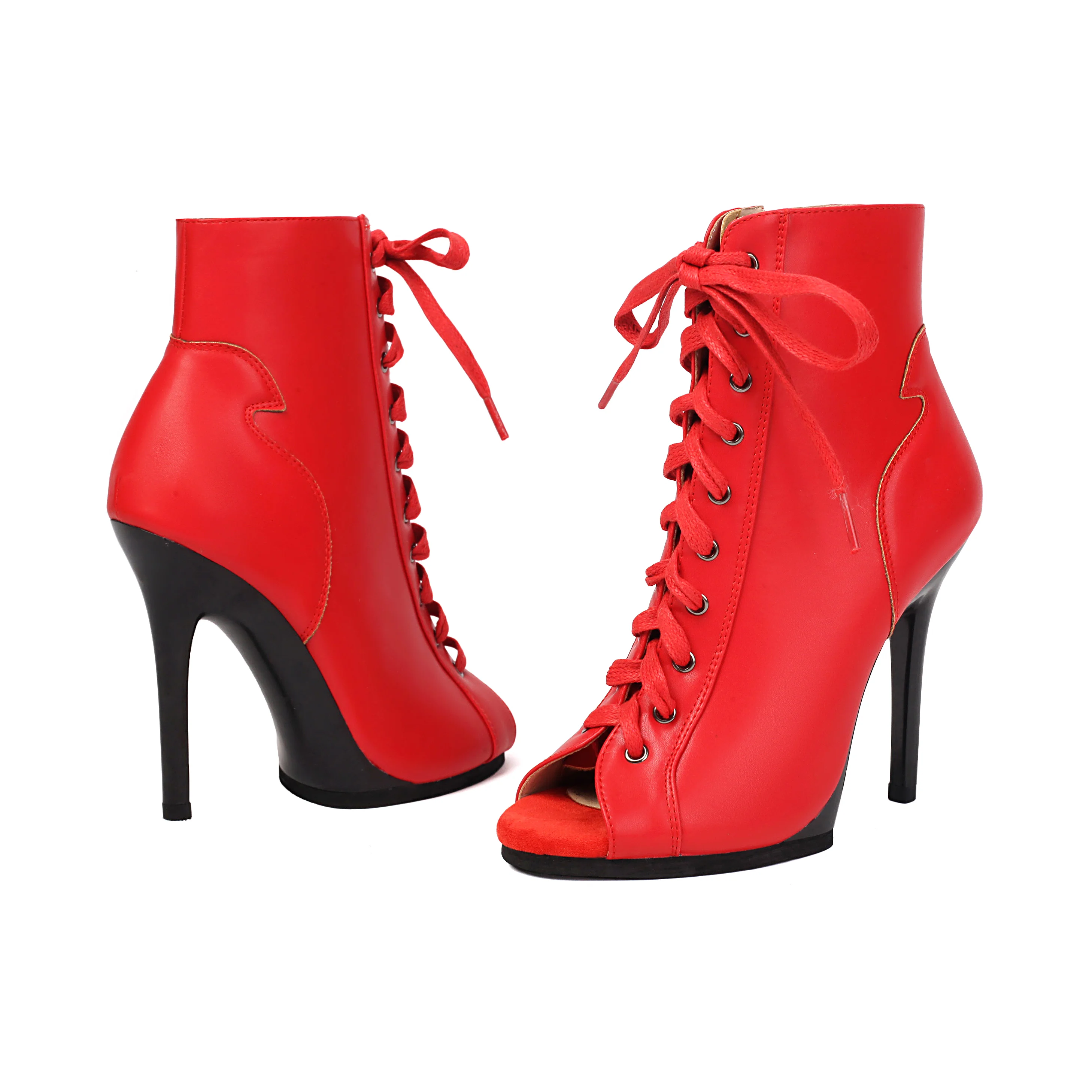 Leather Fish Mouth Boots Jazz Latin Dance Short Boots Jazz Dance High Heels Dance Shoes Woman Waterproof Platform Stiletto Heels
