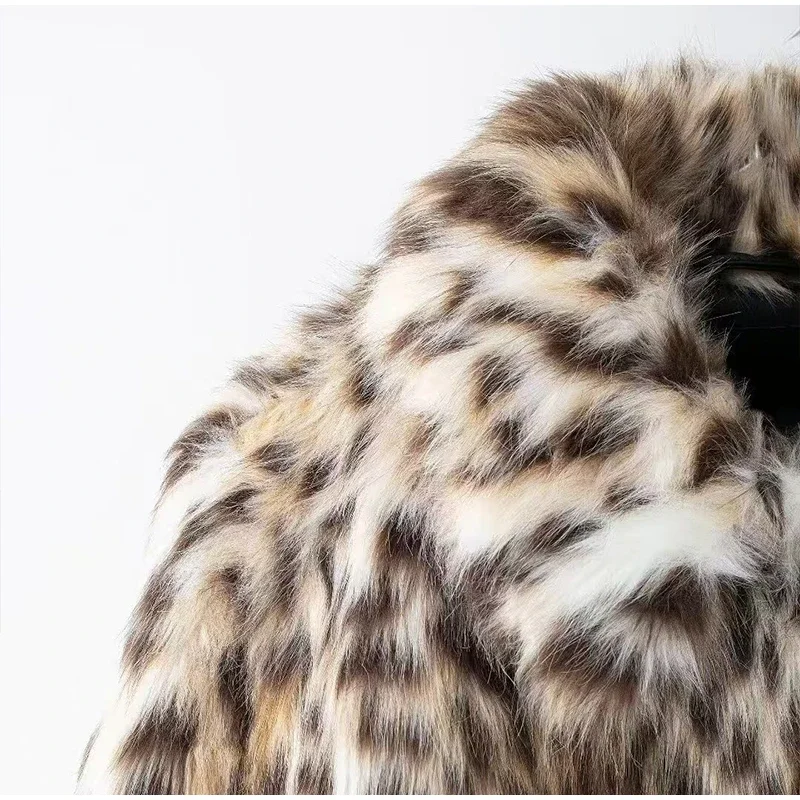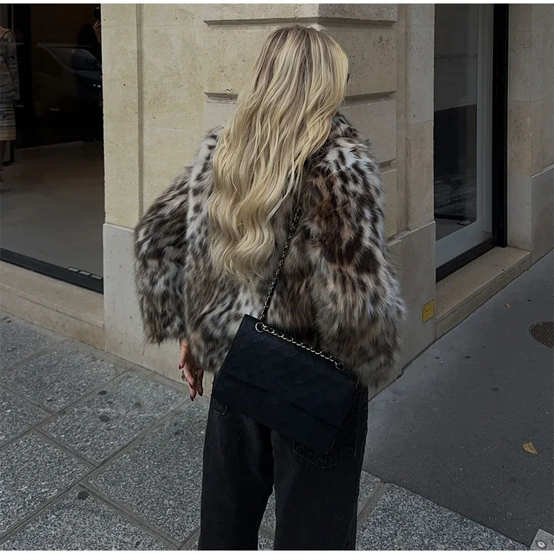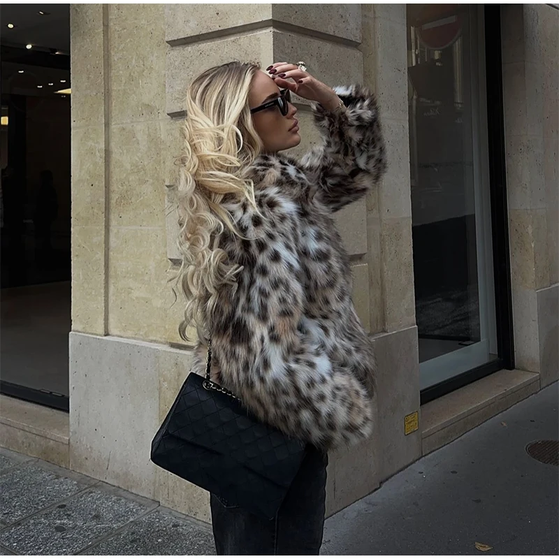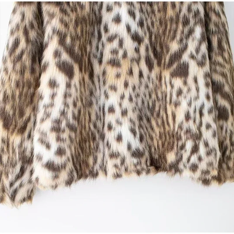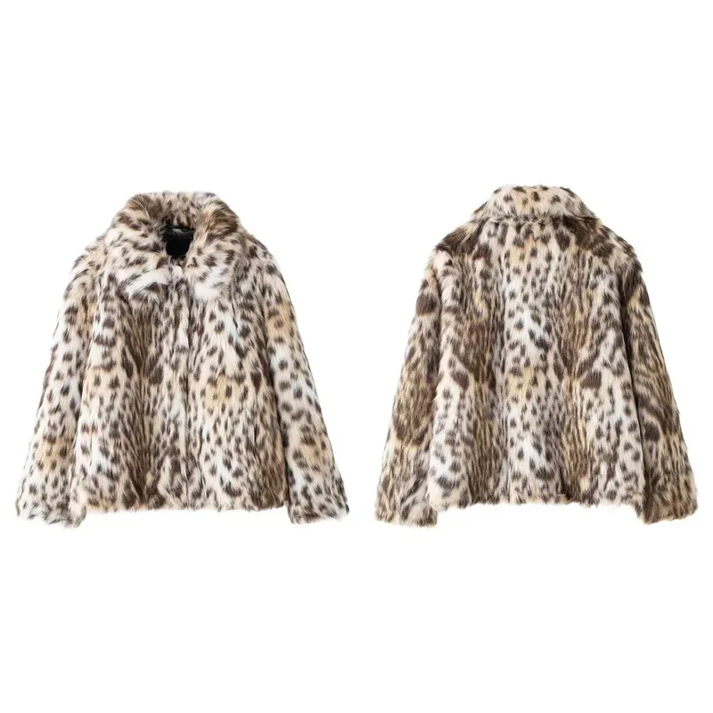 Leopard Print Faux Fur Short Coat Women Fashion Puff Plush Lapel Loose Button Jacket Female 2024 Winter Thick Warm Outerwear