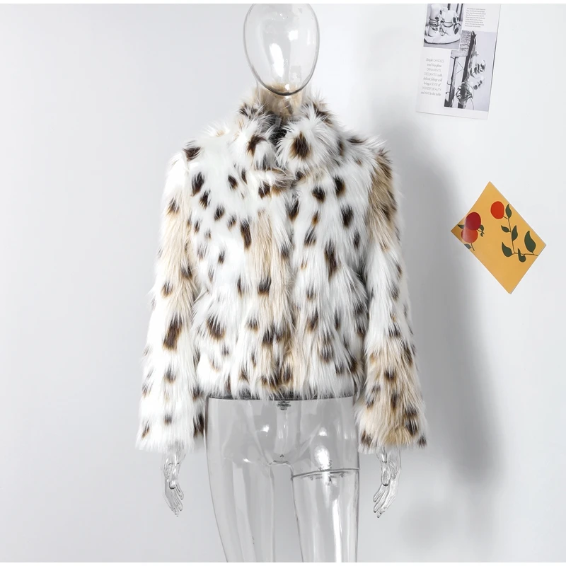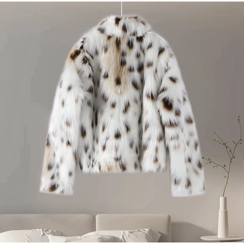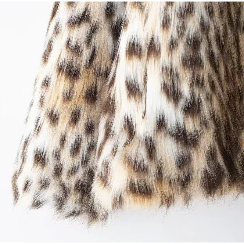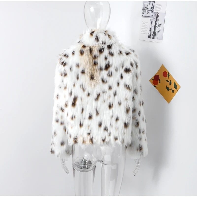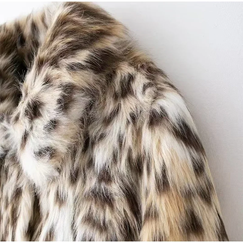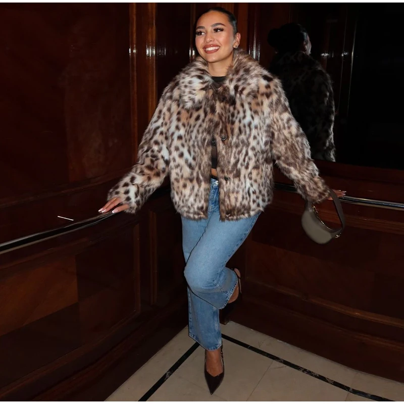 Leopard Print Faux Fur Short Coat Women Fashion Puff Plush Lapel Loose Button Jacket Female 2024 Winter Thick Warm Outerwear