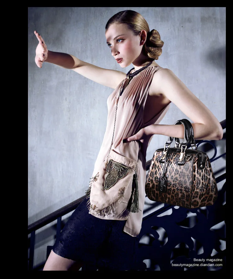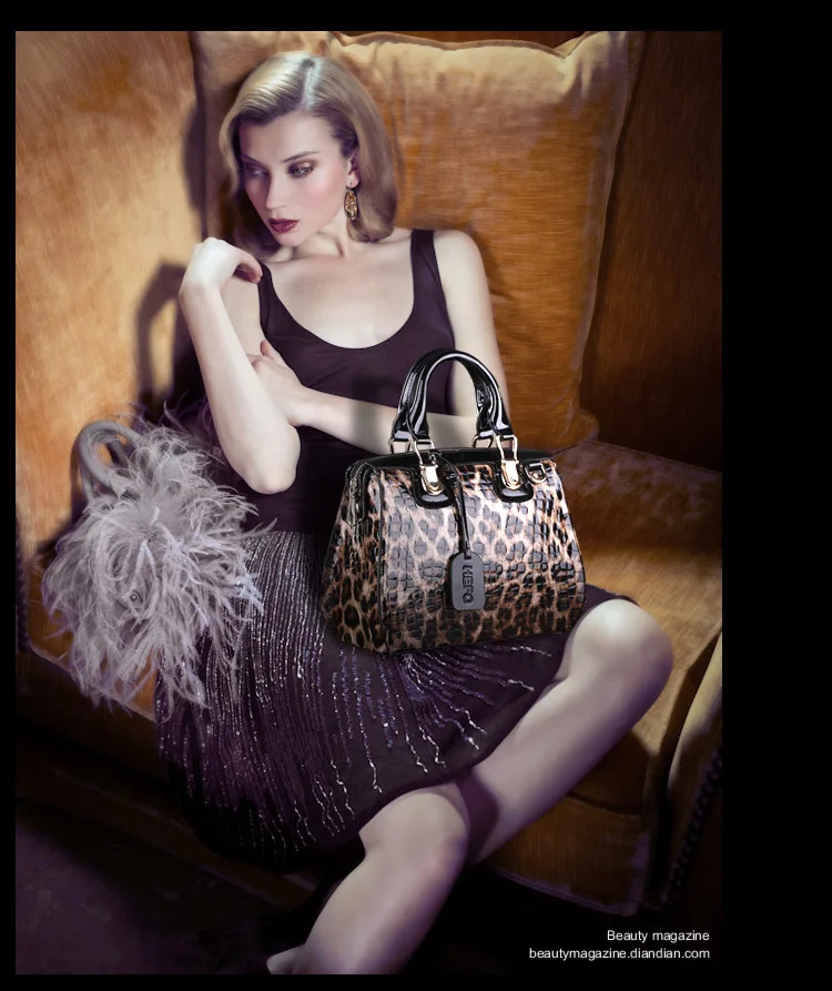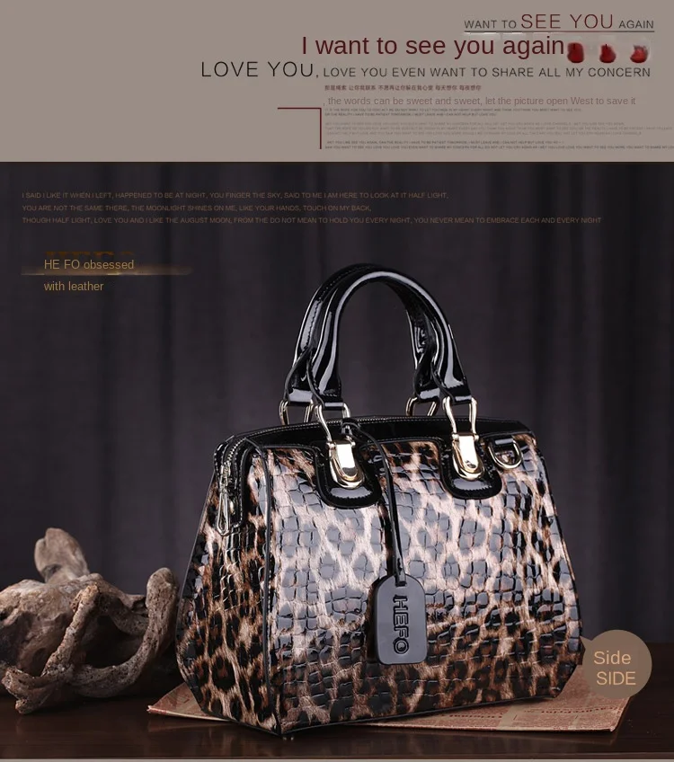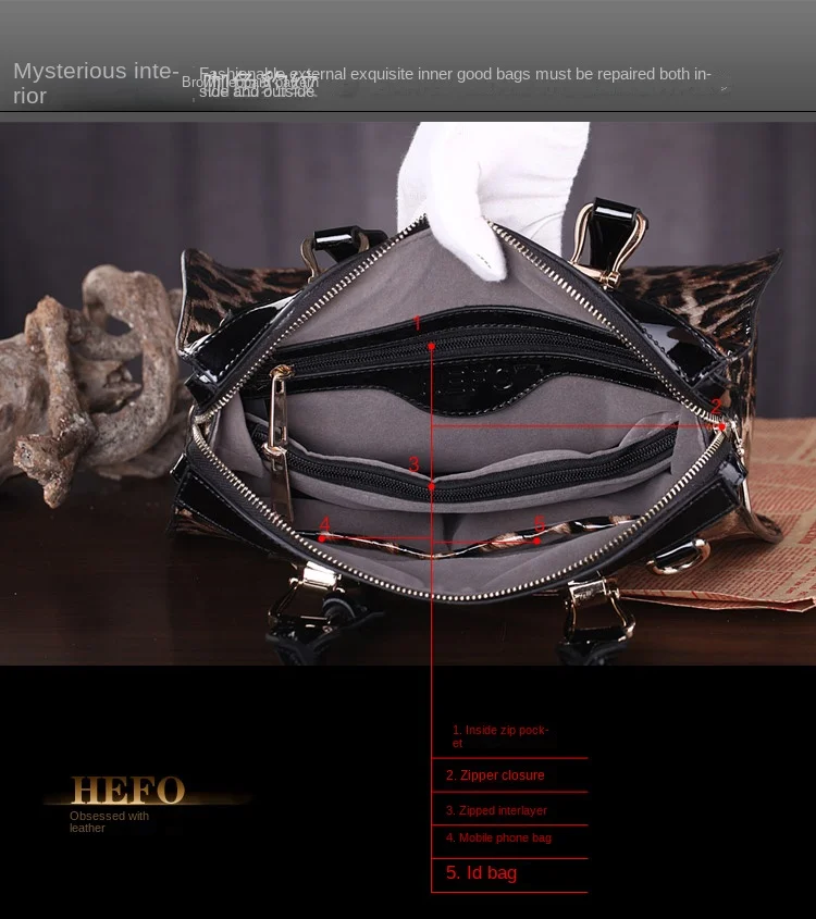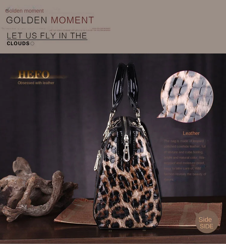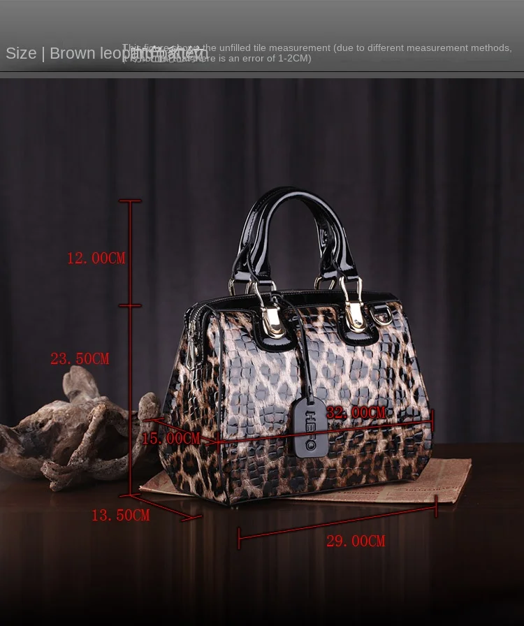 Leopard Women’s Bag Shaping Leather Bag Handbag Women’s Pure Cow Leather Bag Portable Shoulder Crossbody Three-Purpose Hard Bag
