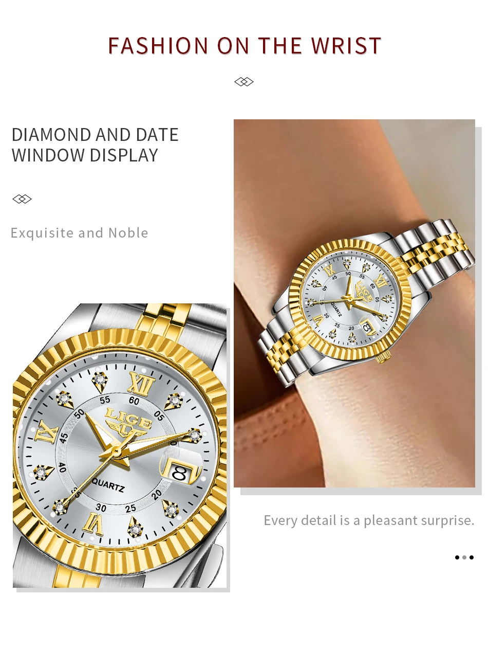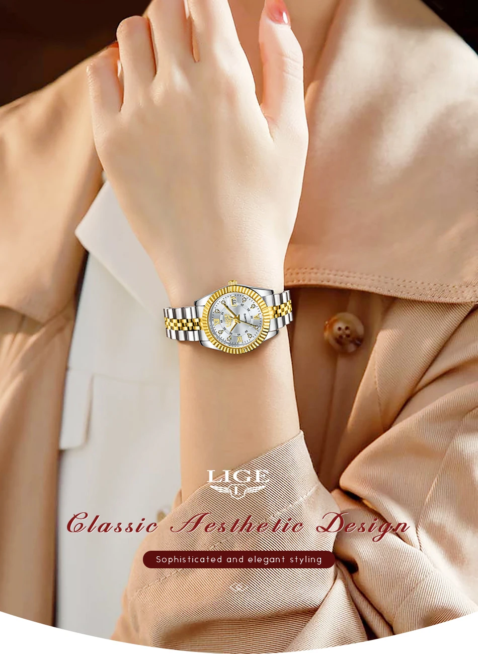 LIGE Design Top Brand Luxury Quartz Woman Watch Fashion Stainless Steel Band Waterproof Auto Date Women’s Wristwatch Reloj Mujer