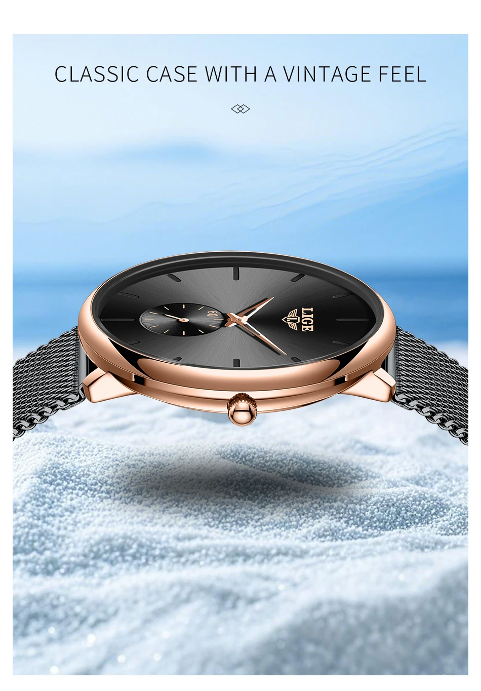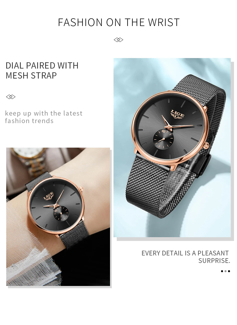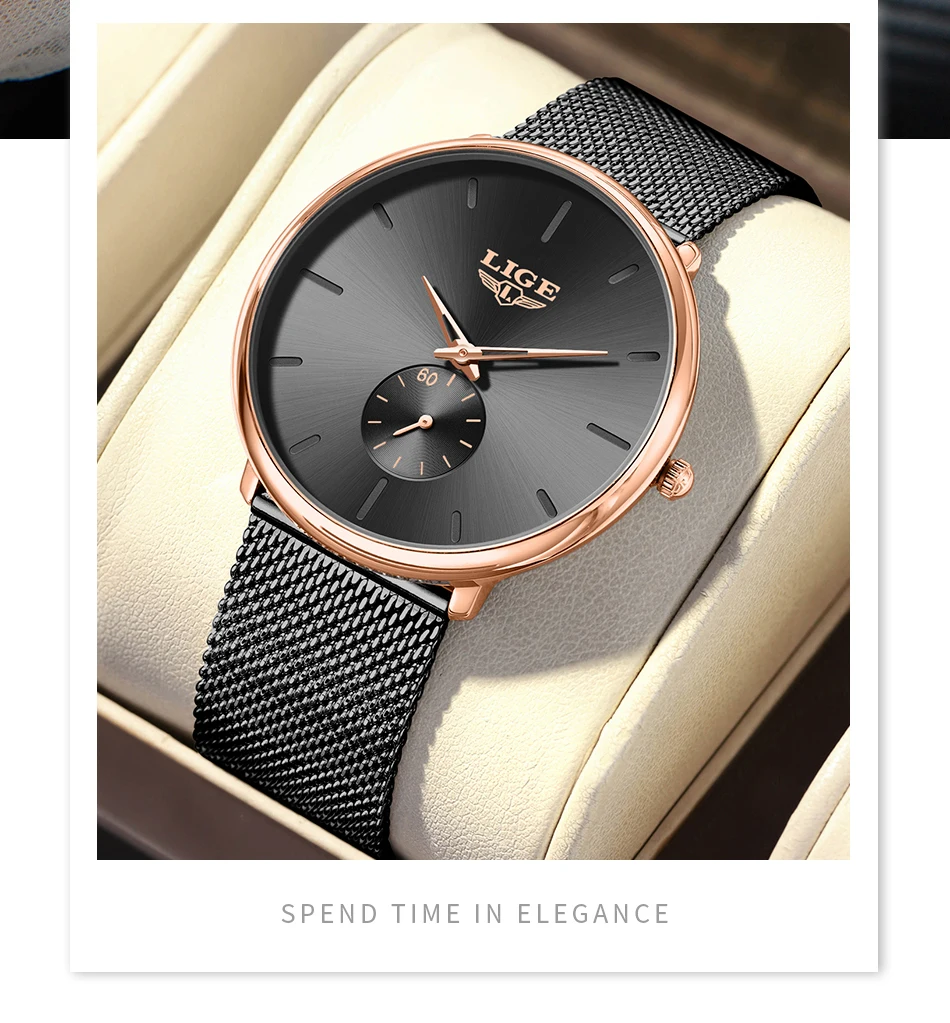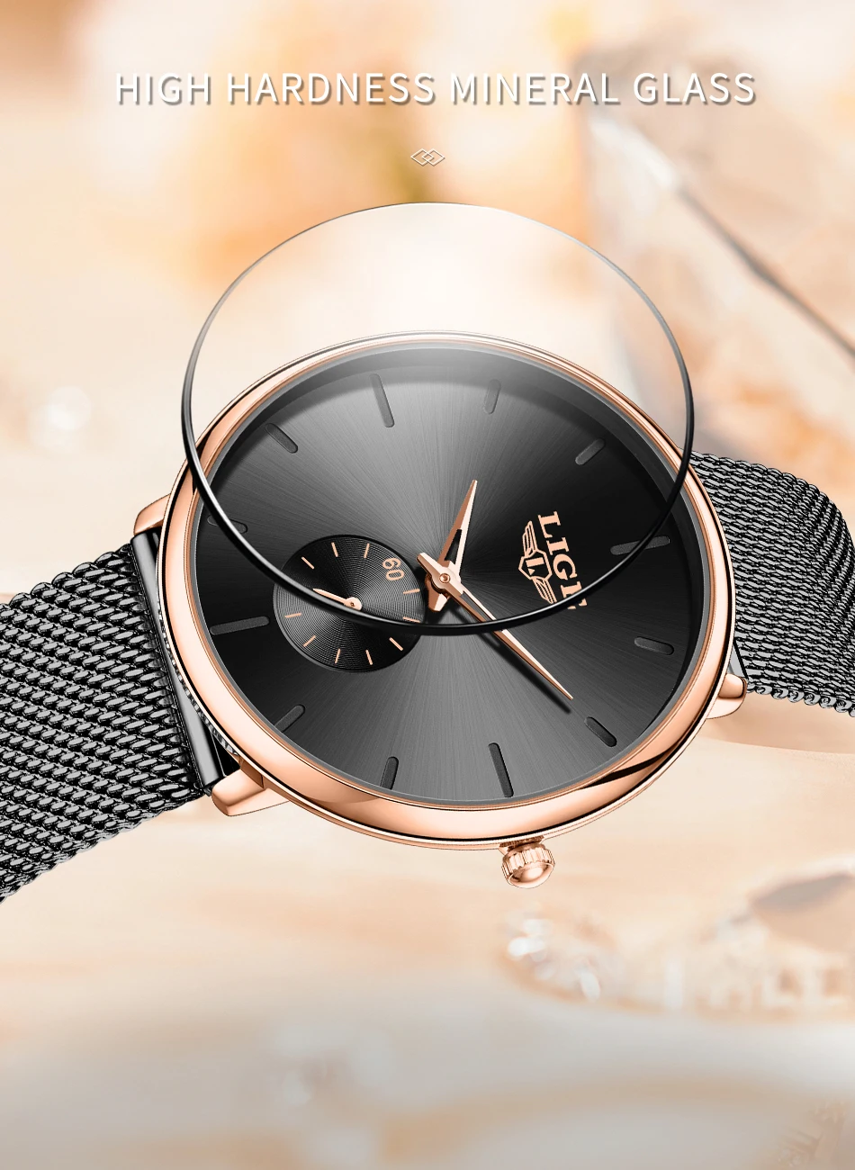 LIGE Elegant Stylish Woman Watches Simple Luxury Ultra-Thin Classic Stainless Steel Mesh Belt Waterproof Quartz Women Wristwatch