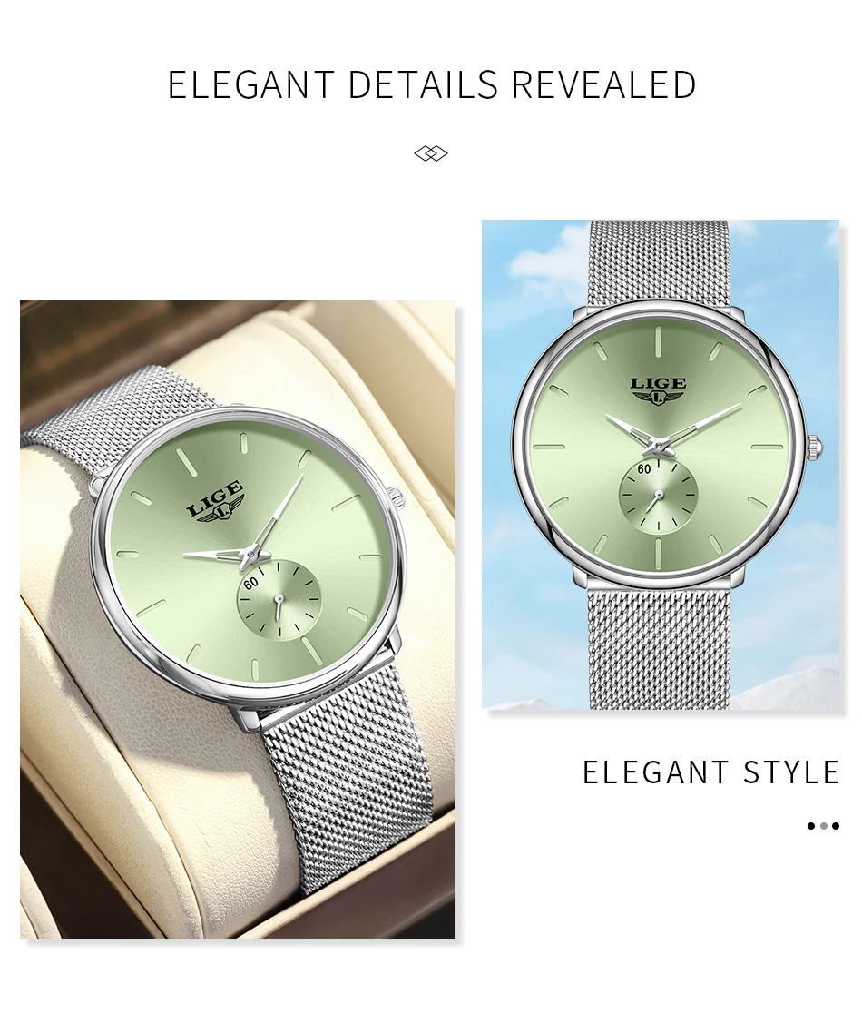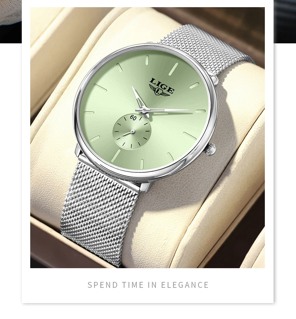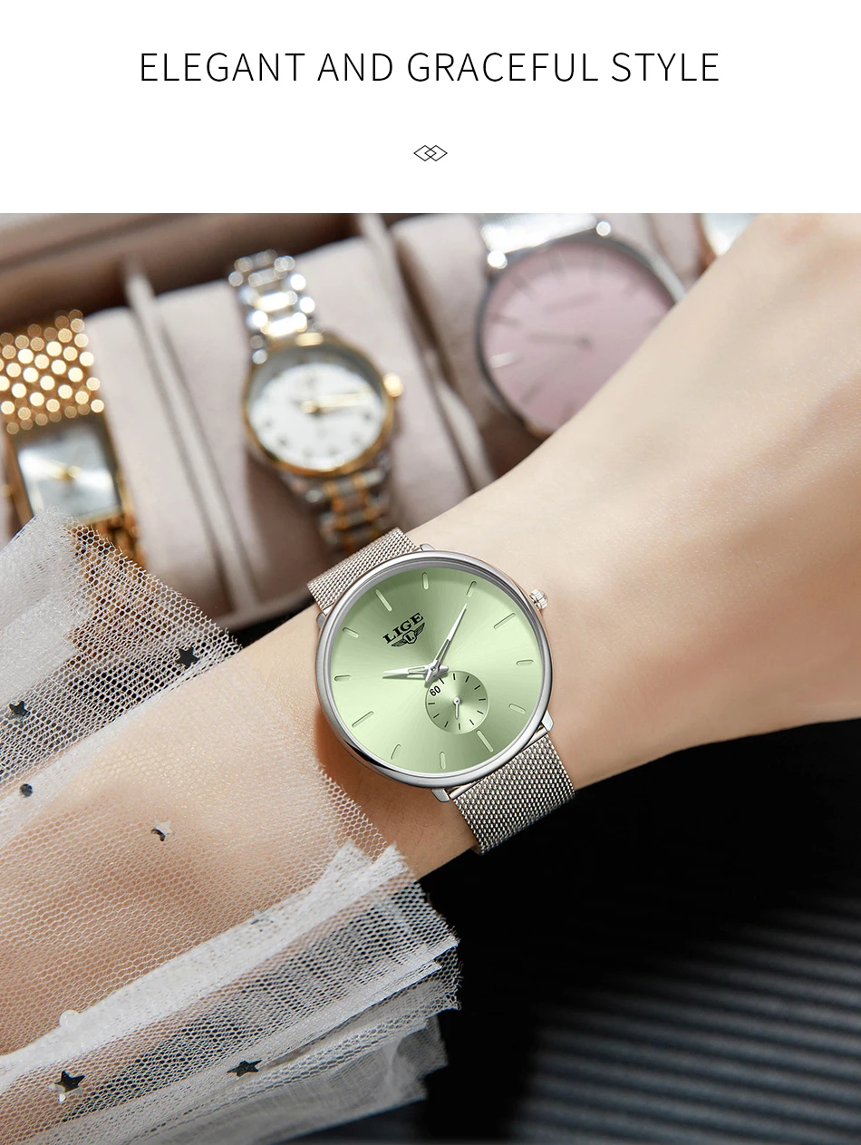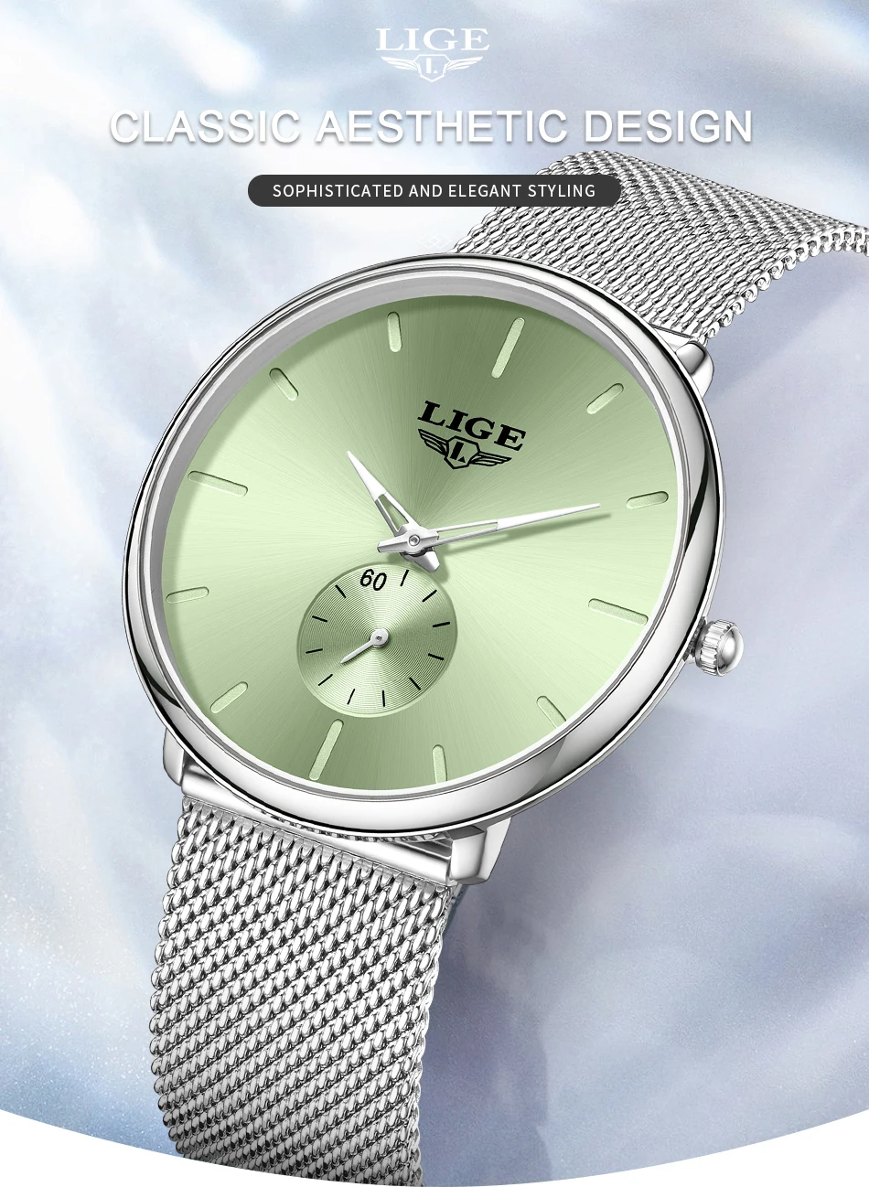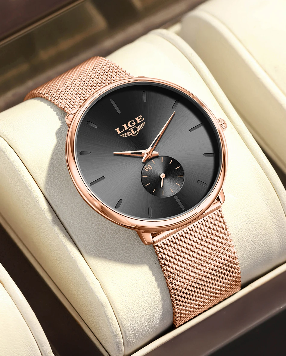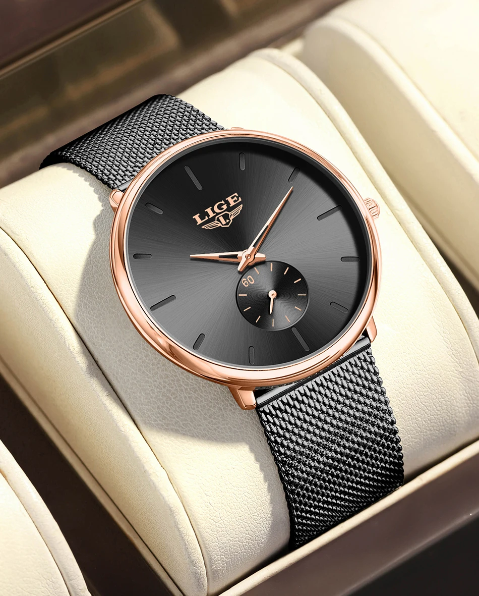 LIGE Fashion Elegant Watches for Woman Simple Luxury Thin Fashion Classic Mesh Strap Waterproof Quartz Women’s Wristwatch Gifts