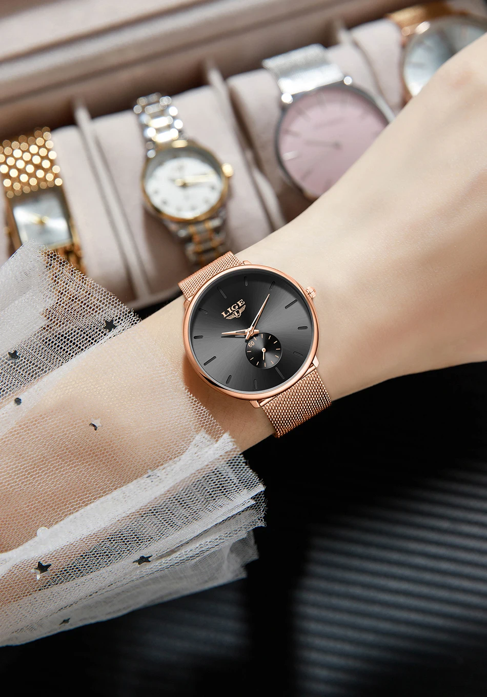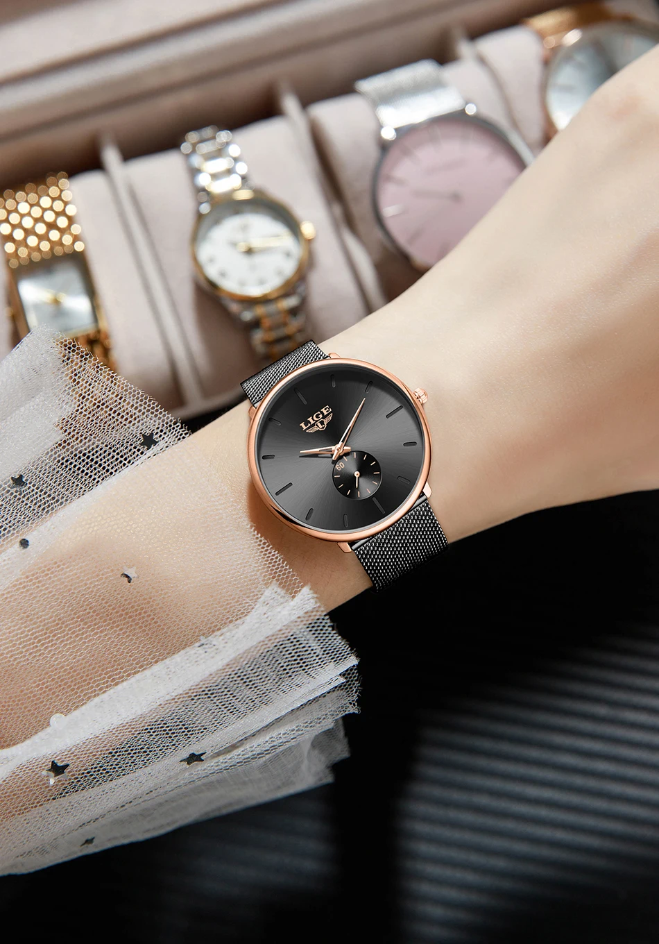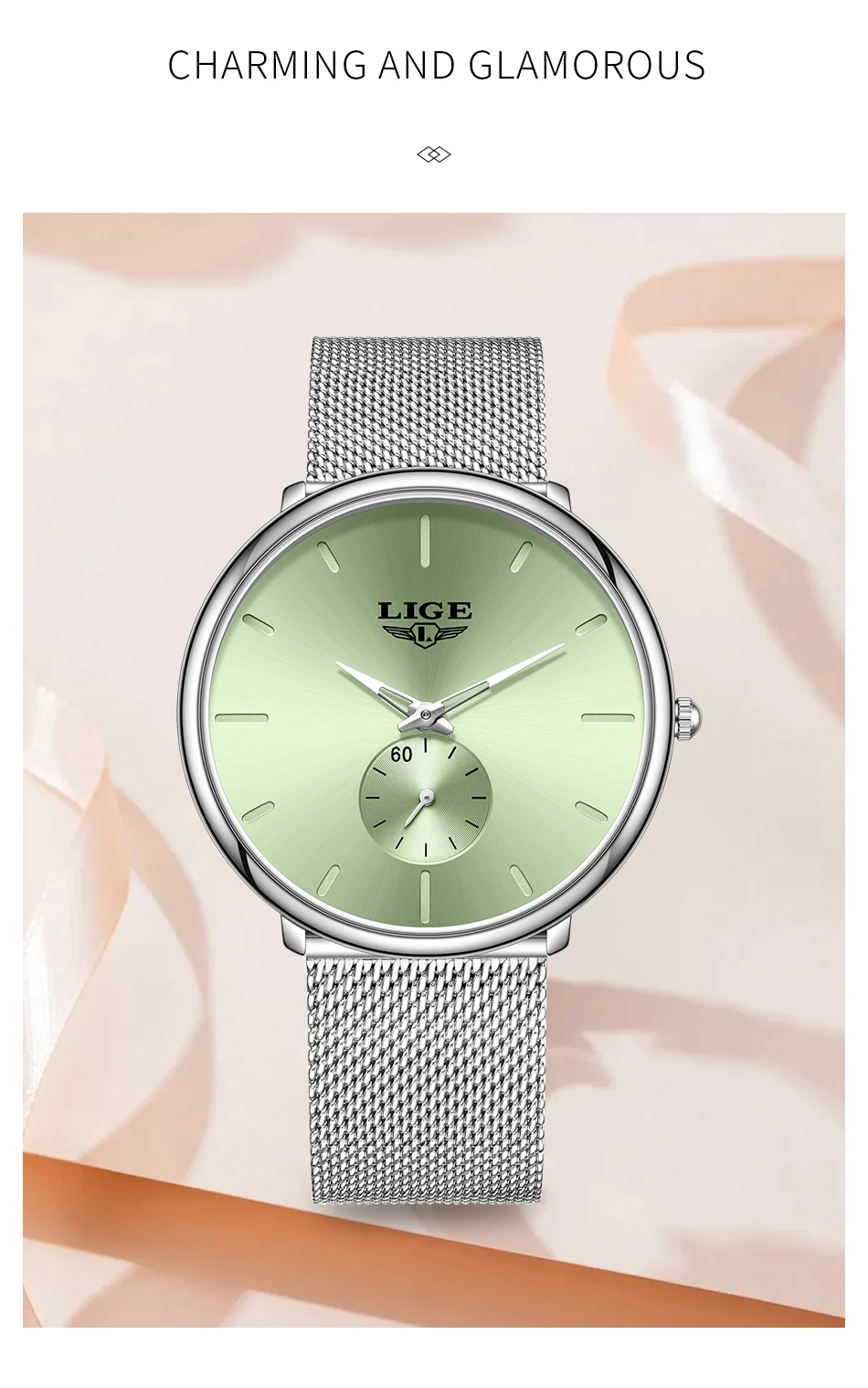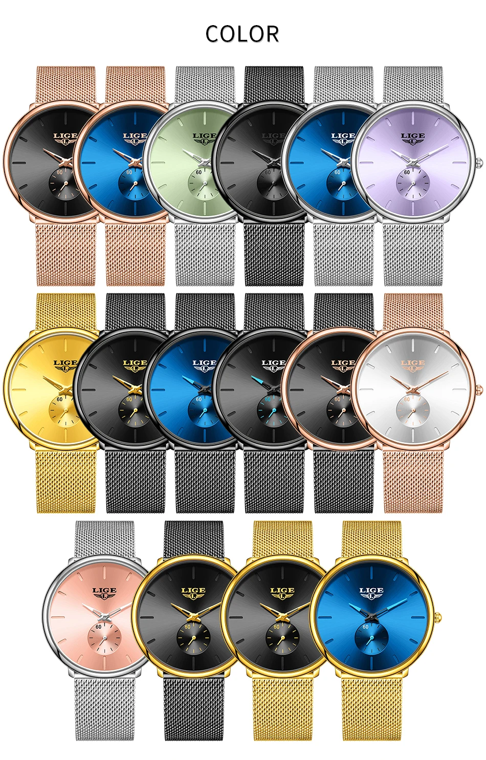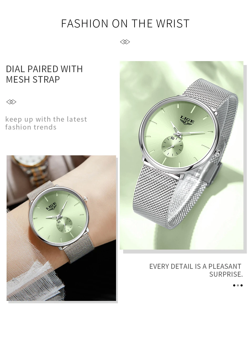 LIGE Fashion Elegant Watches for Woman Simple Luxury Thin Fashion Classic Mesh Strap Waterproof Quartz Women’s Wristwatch Gifts