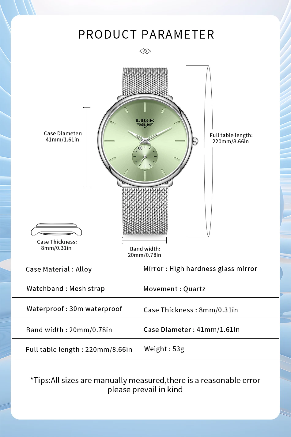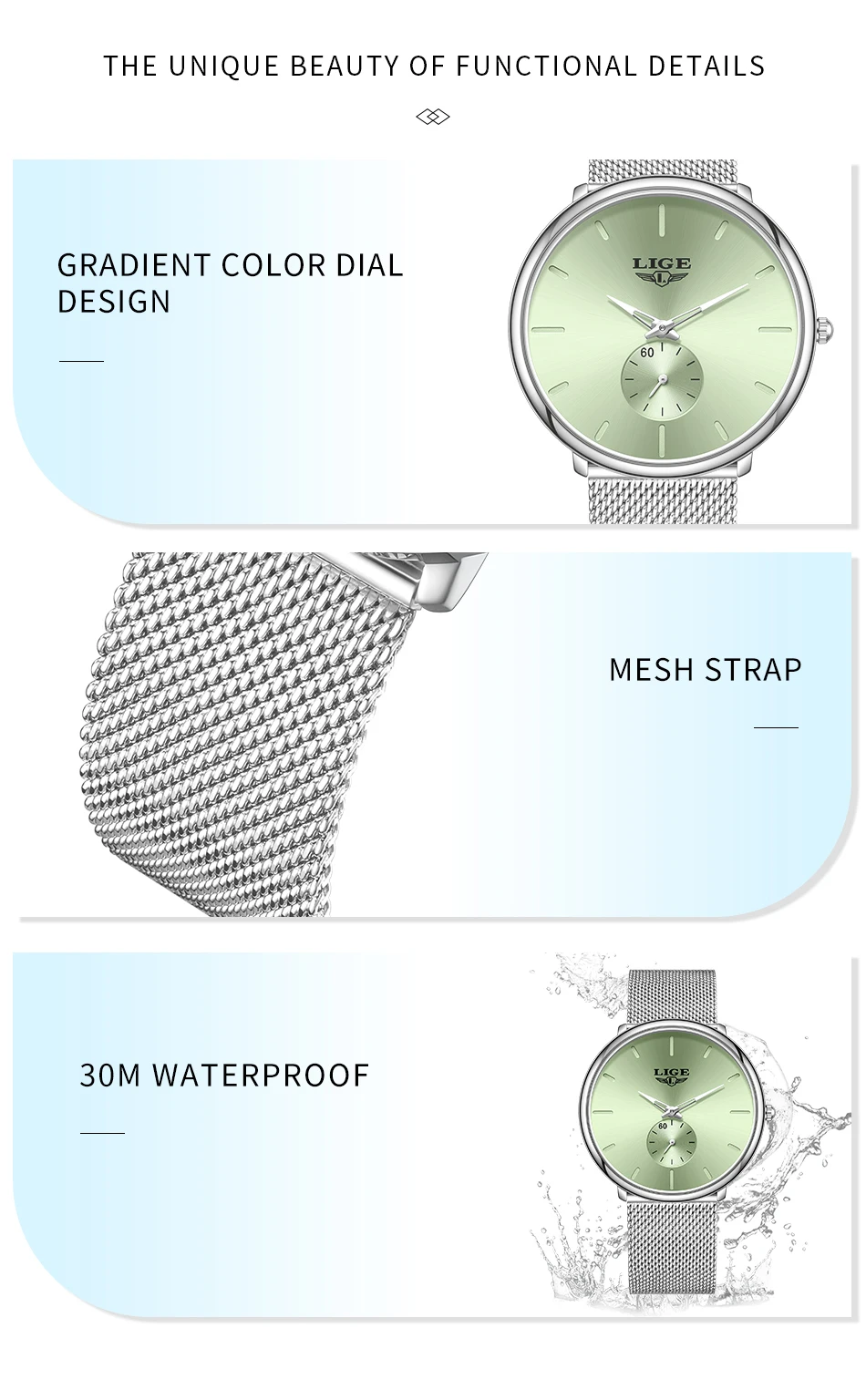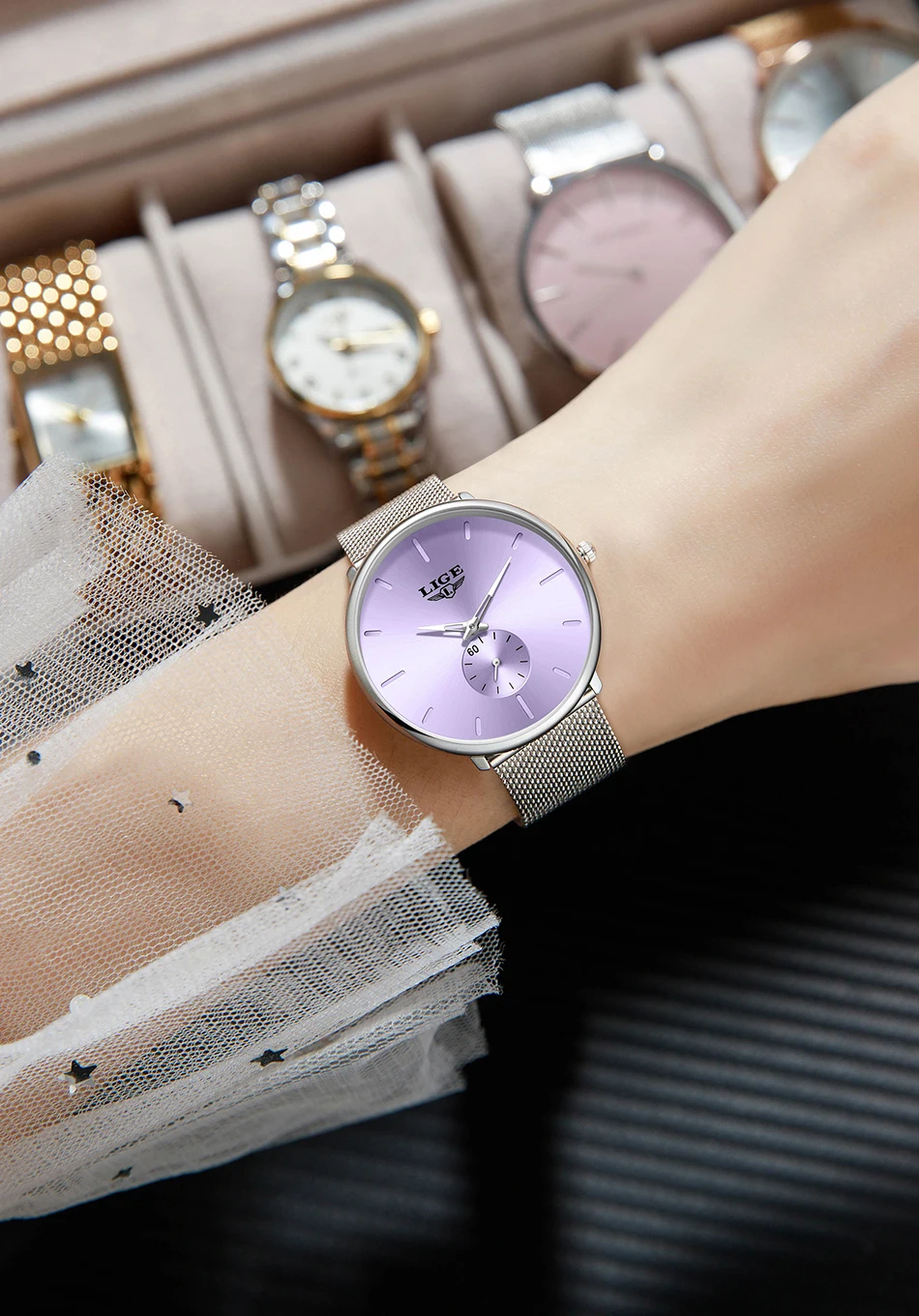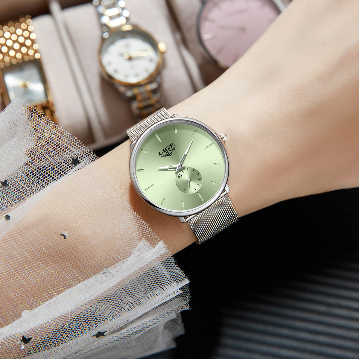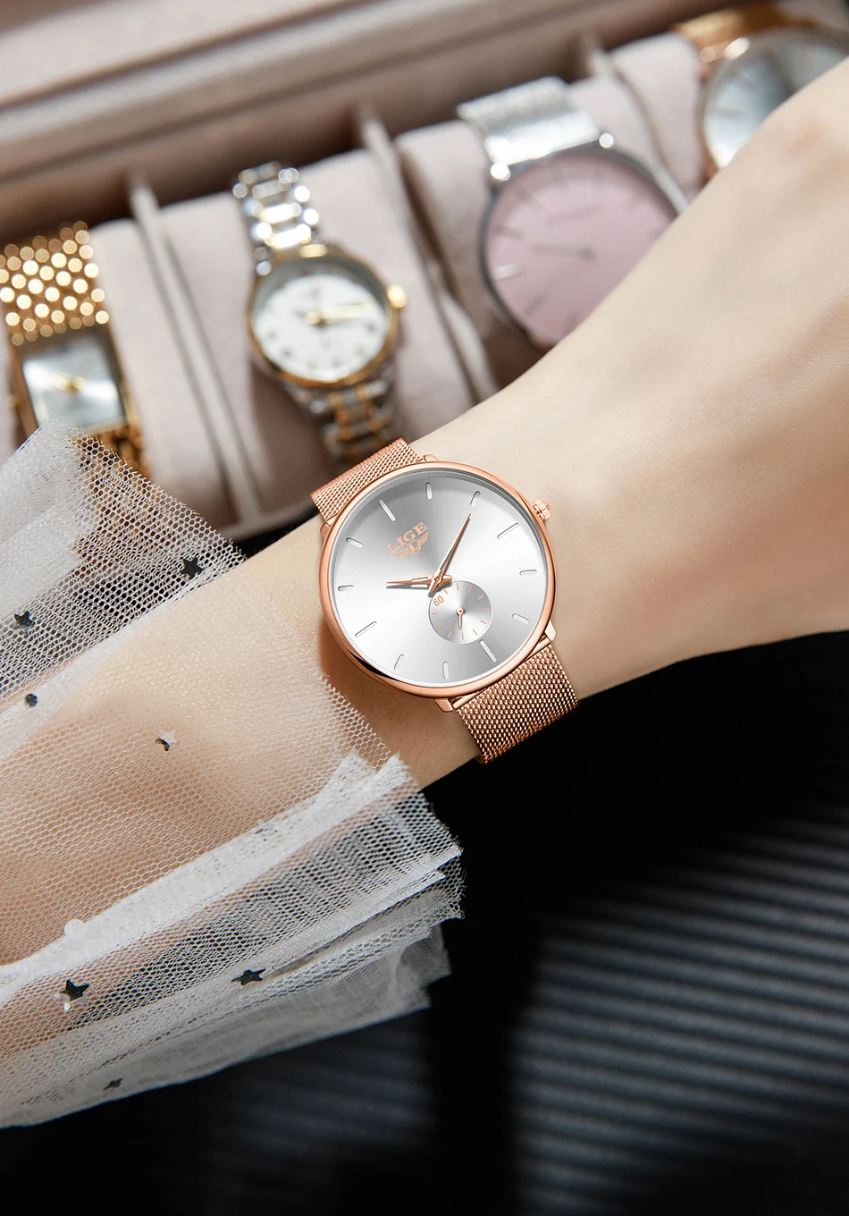 LIGE Fashion Elegant Watches for Woman Simple Luxury Thin Fashion Classic Mesh Strap Waterproof Quartz Women’s Wristwatch Gifts