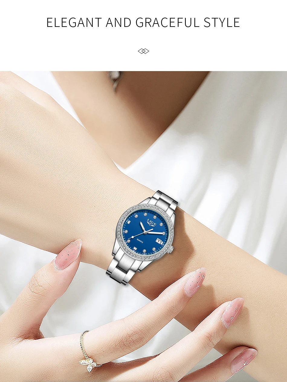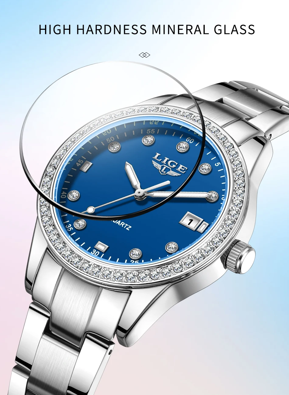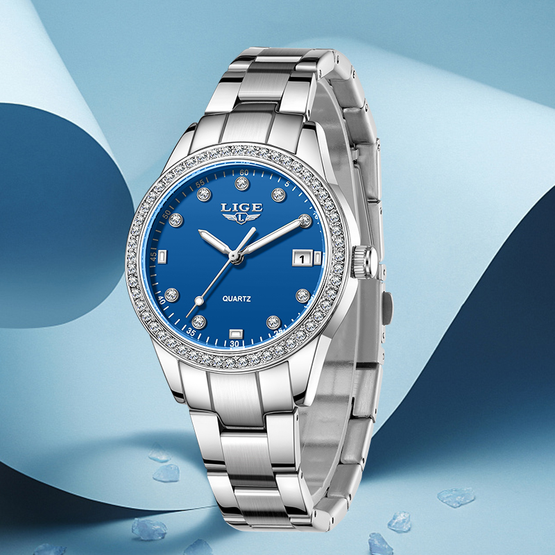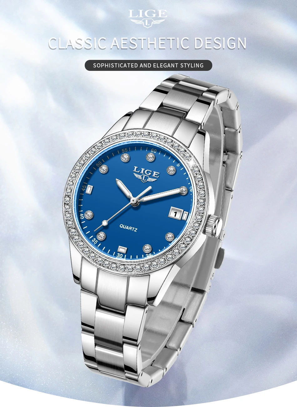 LIGE Fashion Simple Design Quartz Woman Watch Casual Elegant Luxury Waterproof Calendar Stainless Watches for Women Ladies Gifts