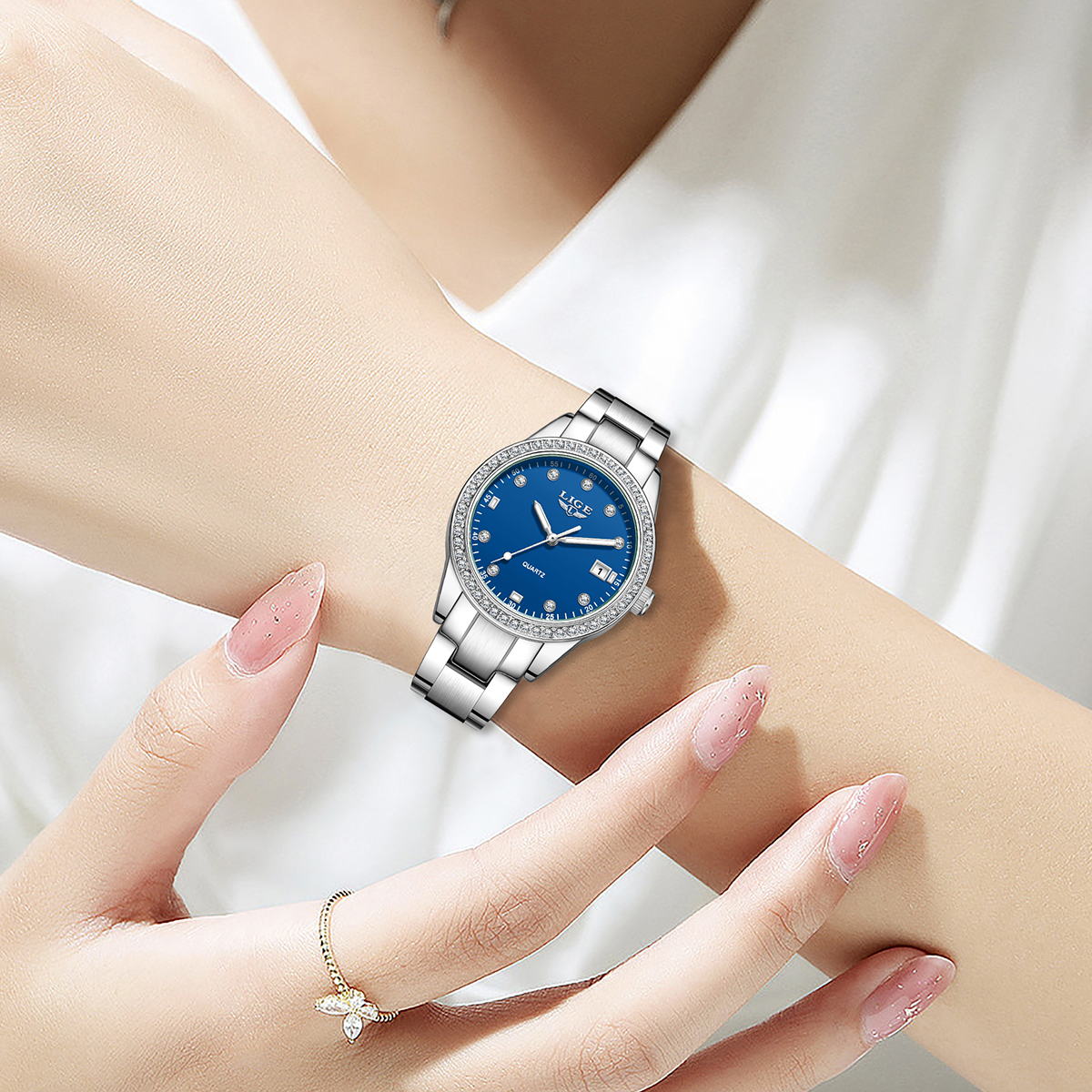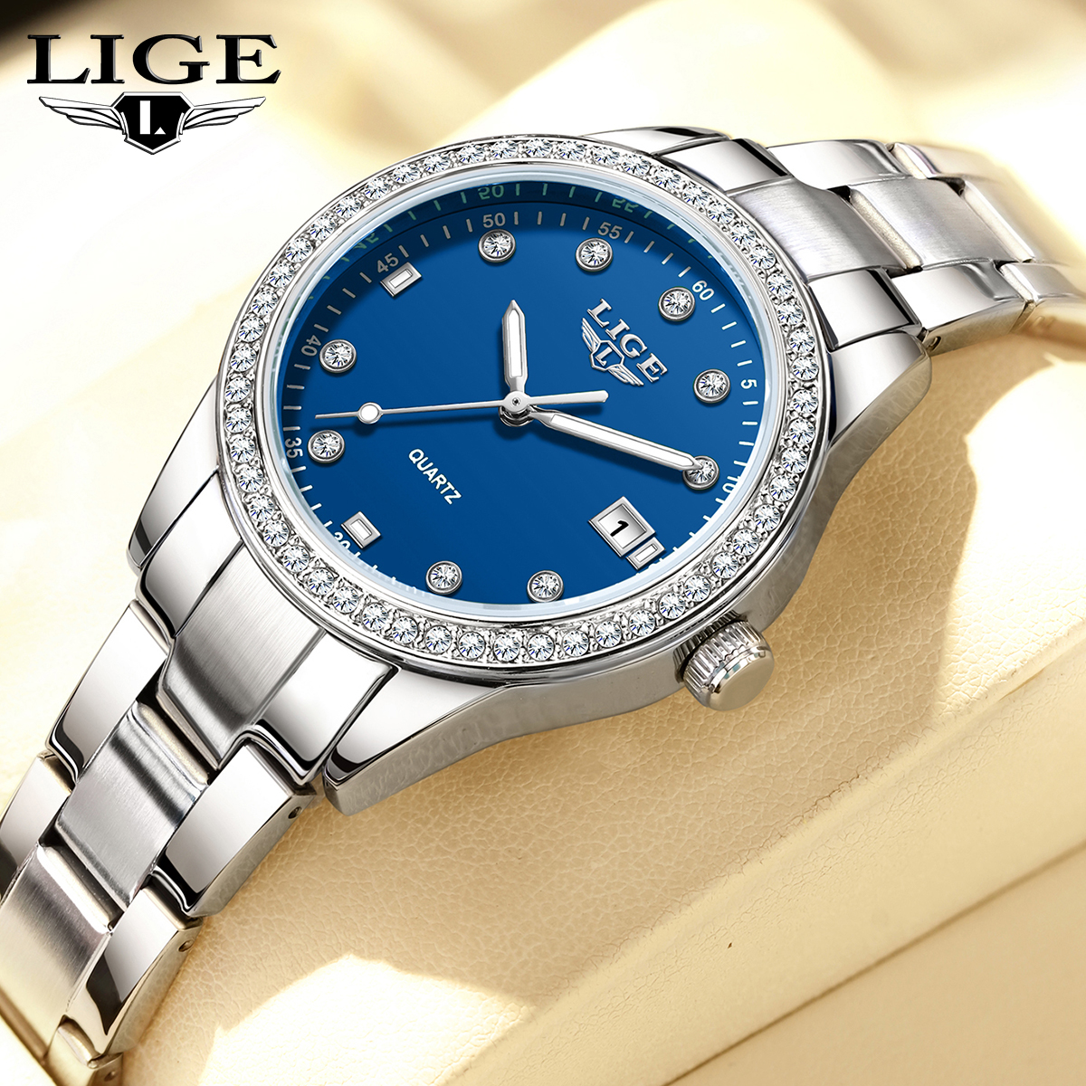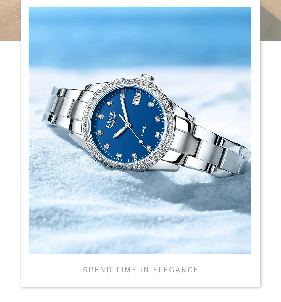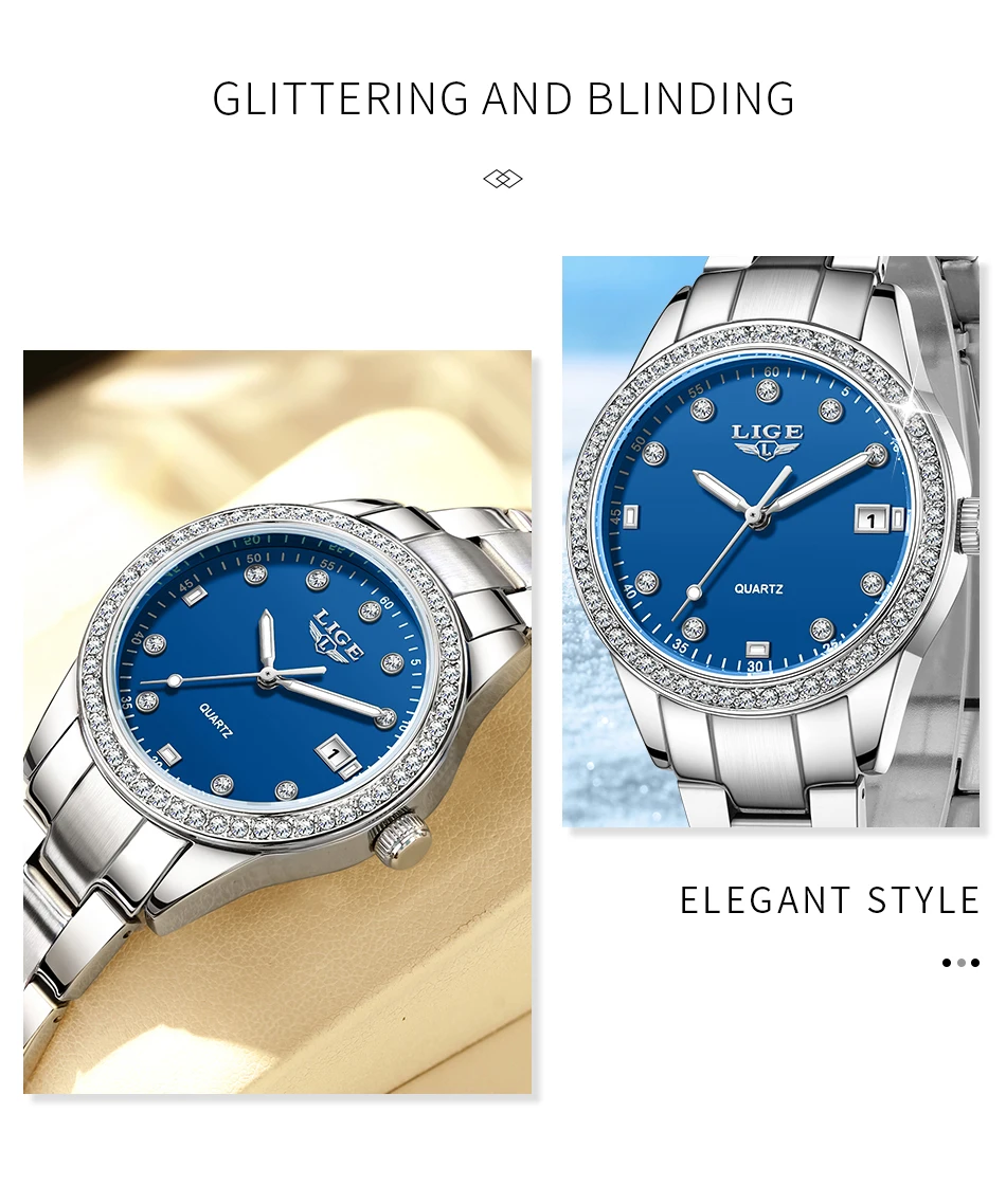 LIGE Fashion Simple Design Quartz Woman Watch Casual Elegant Luxury Waterproof Calendar Stainless Watches for Women Ladies Gifts
