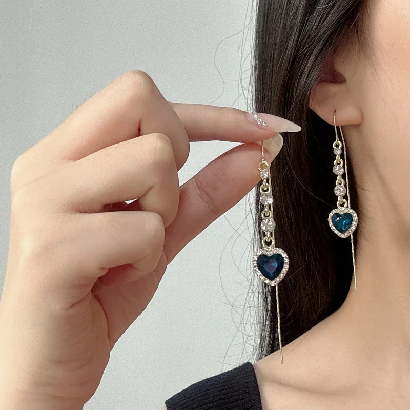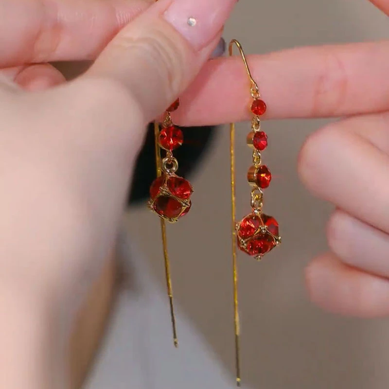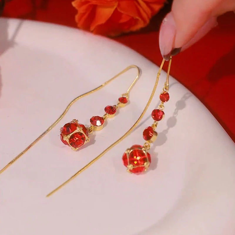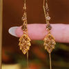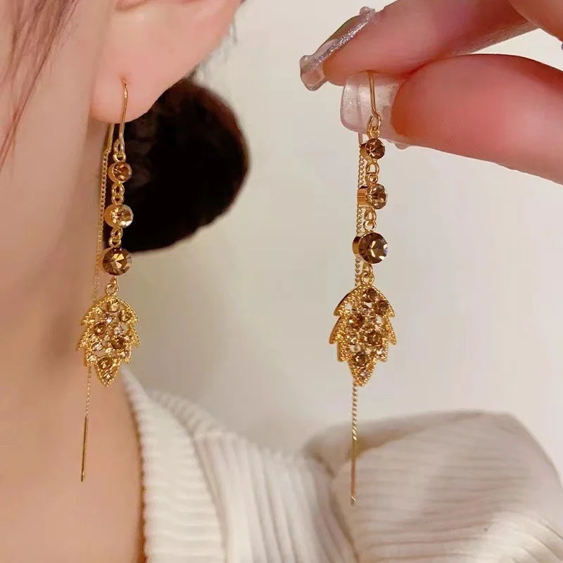 Light Luxury Red Zircon Waterdrop Long Tassel Earrings For Women Brown Crystal Leaf Temperament Earring Party Wedding Jewelry