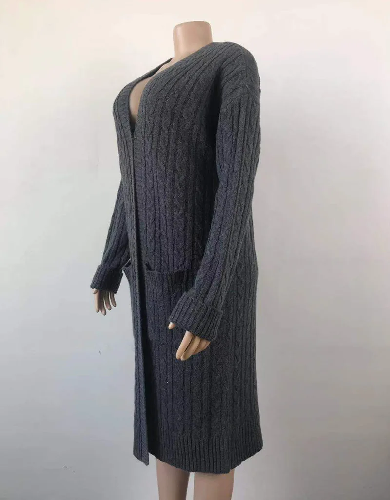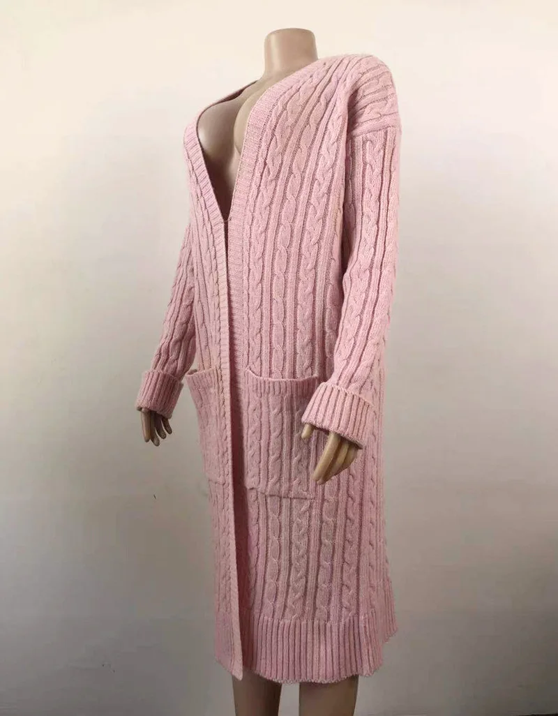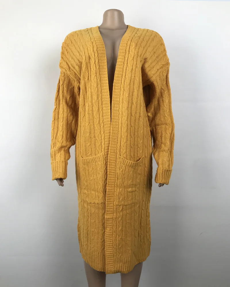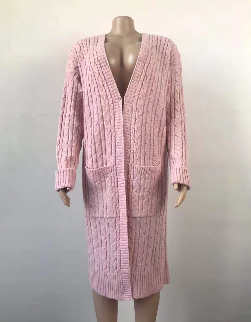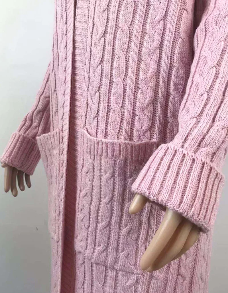 Long Cardigans Women Cotton Fall 2025 Thick Spring Winter Female Knitted Sweater Pocket Yellow Pink Grey Color Ladies Outerwear