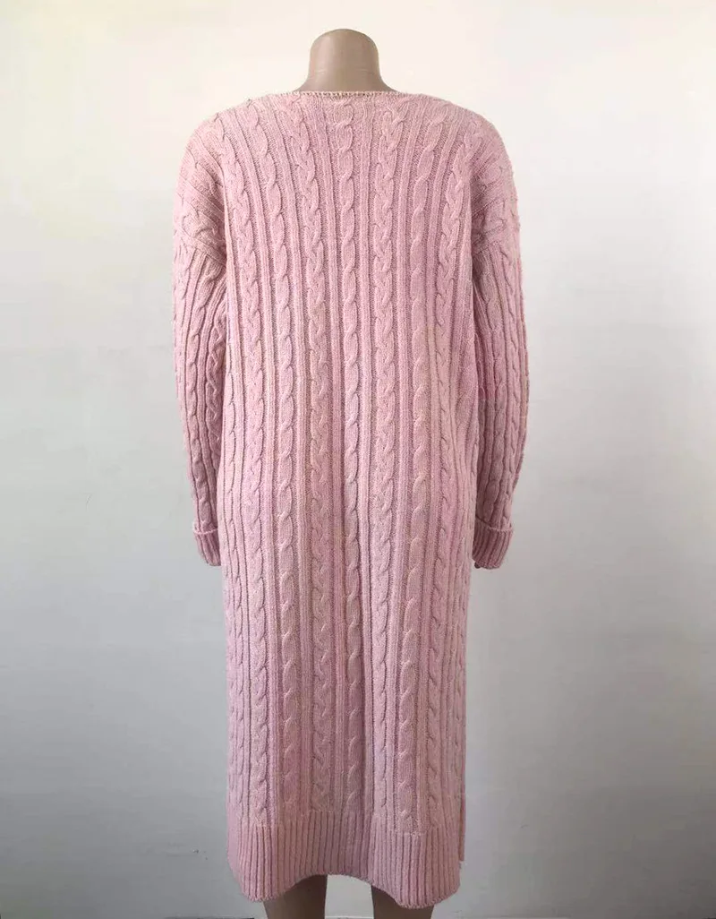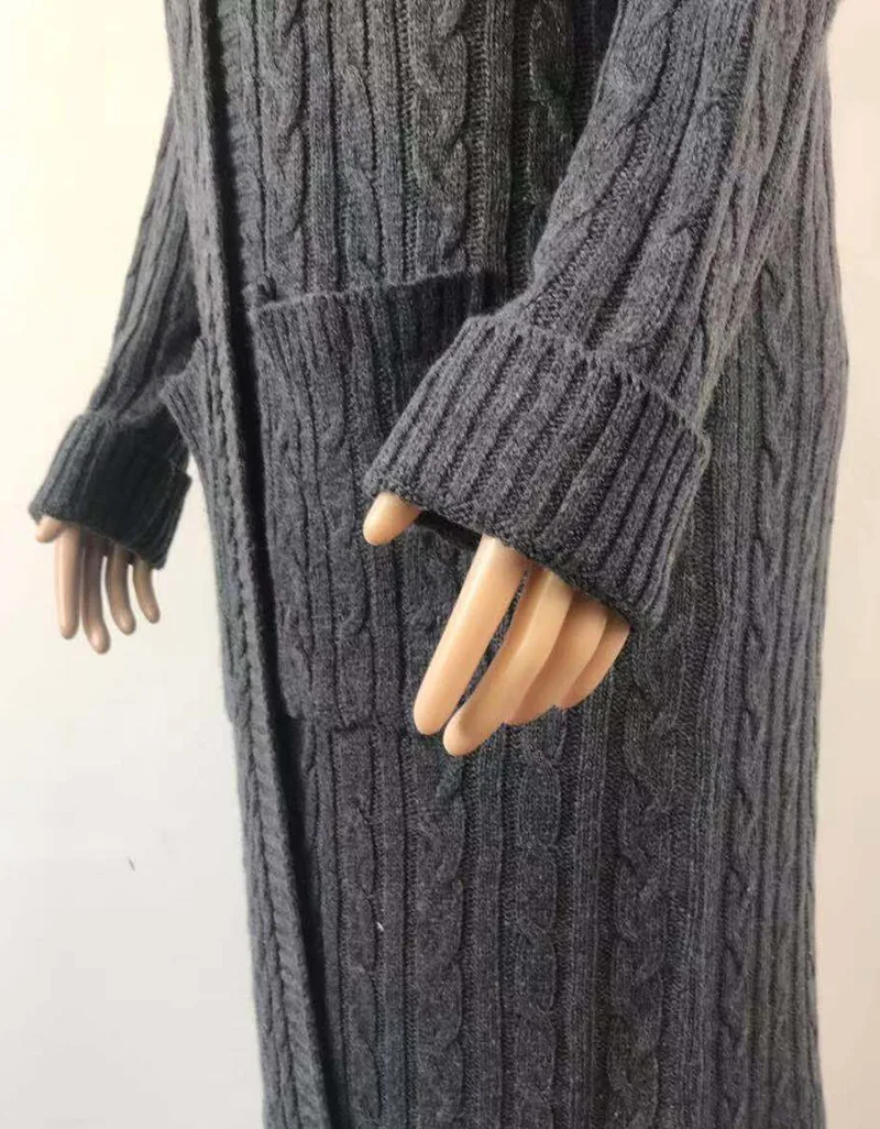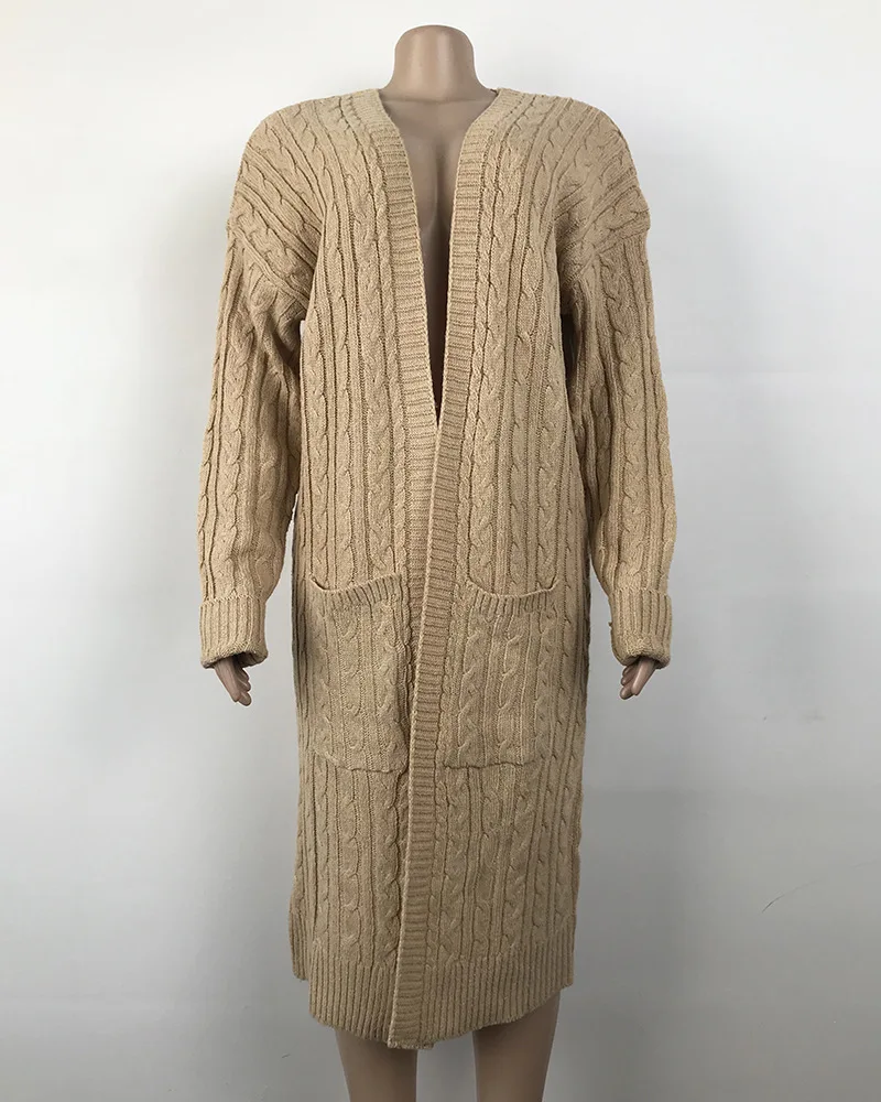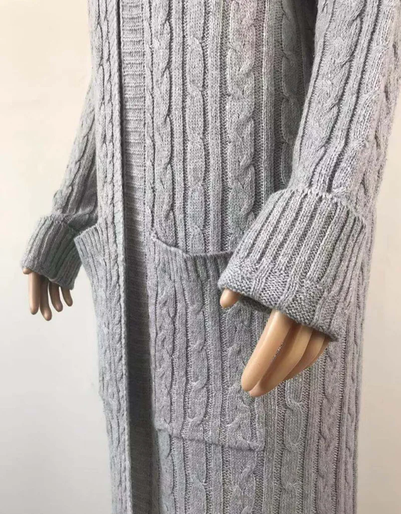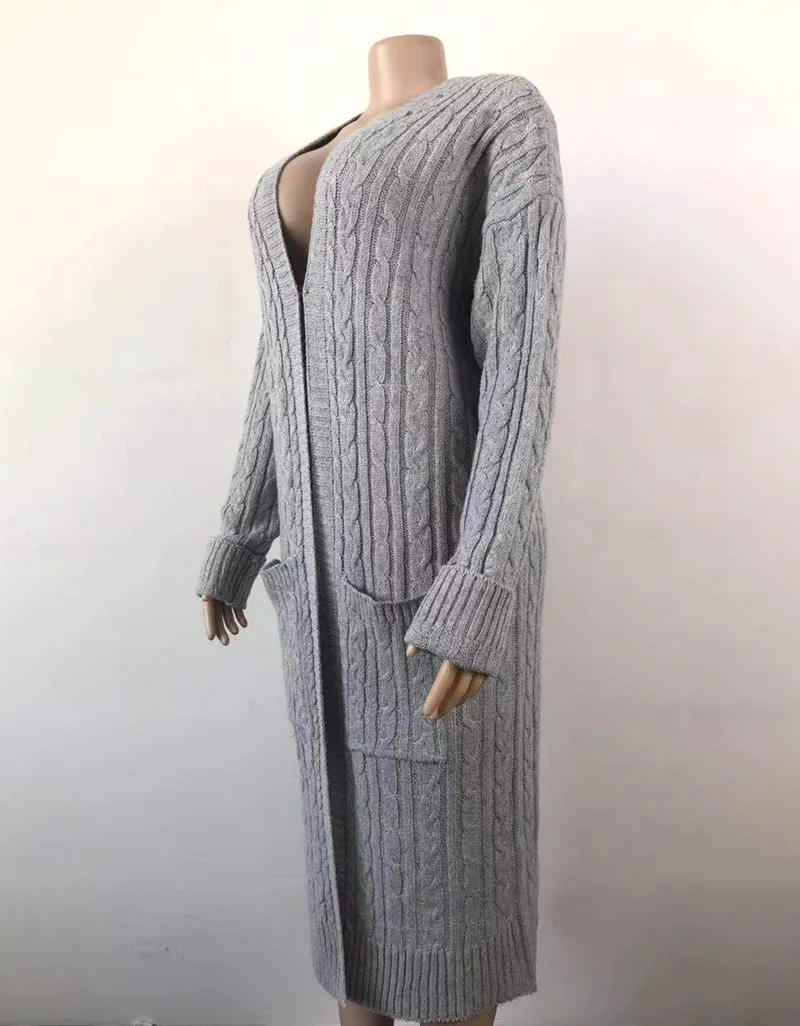 Long Cardigans Women Cotton Fall 2025 Thick Spring Winter Female Knitted Sweater Pocket Yellow Pink Grey Color Ladies Outerwear