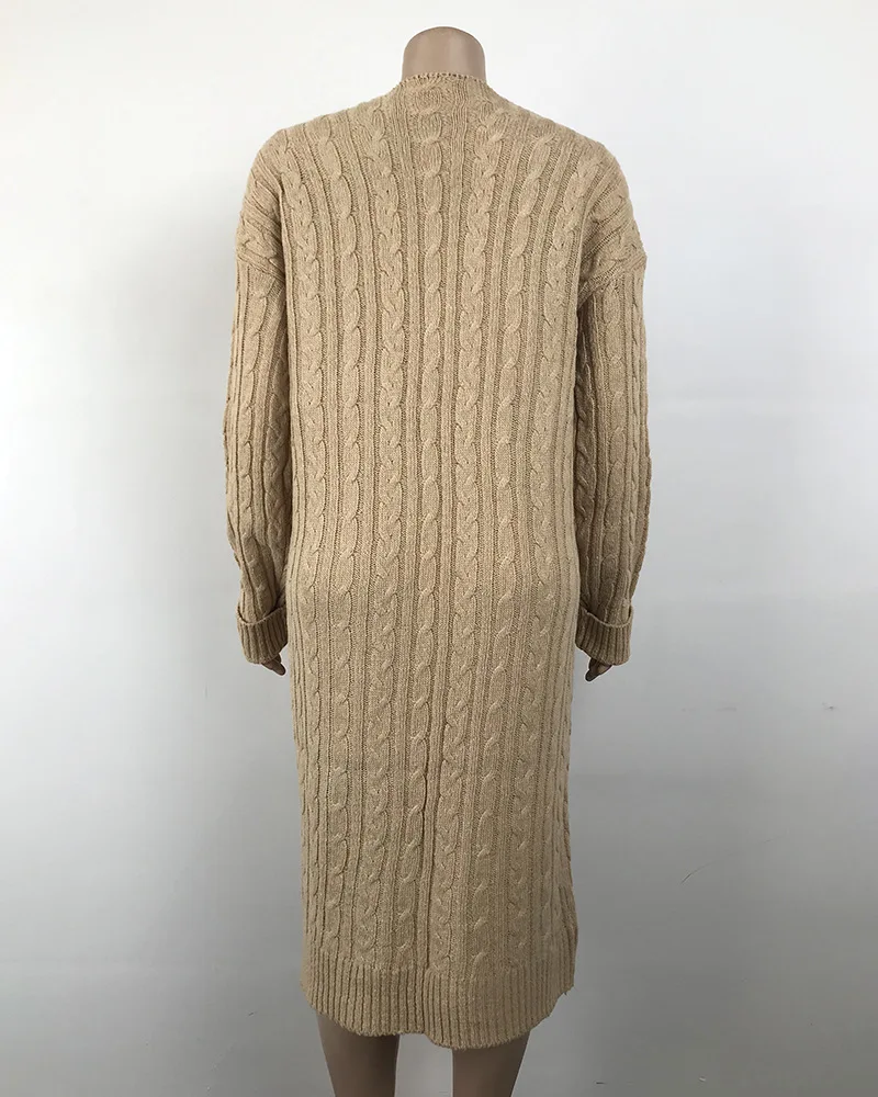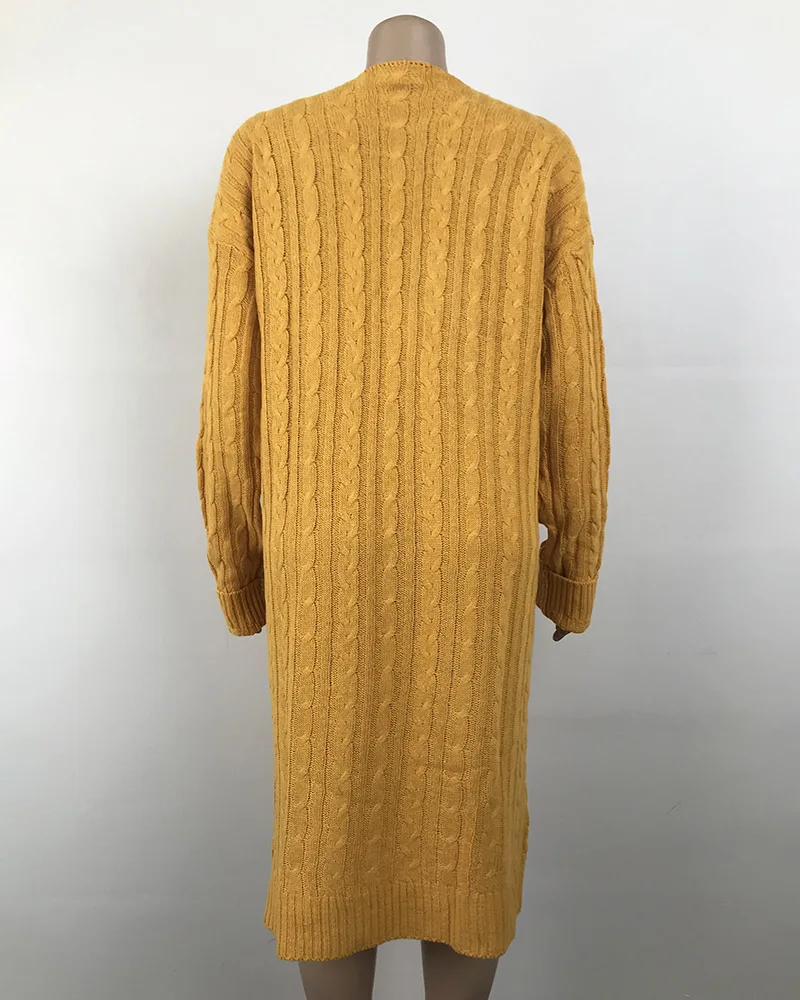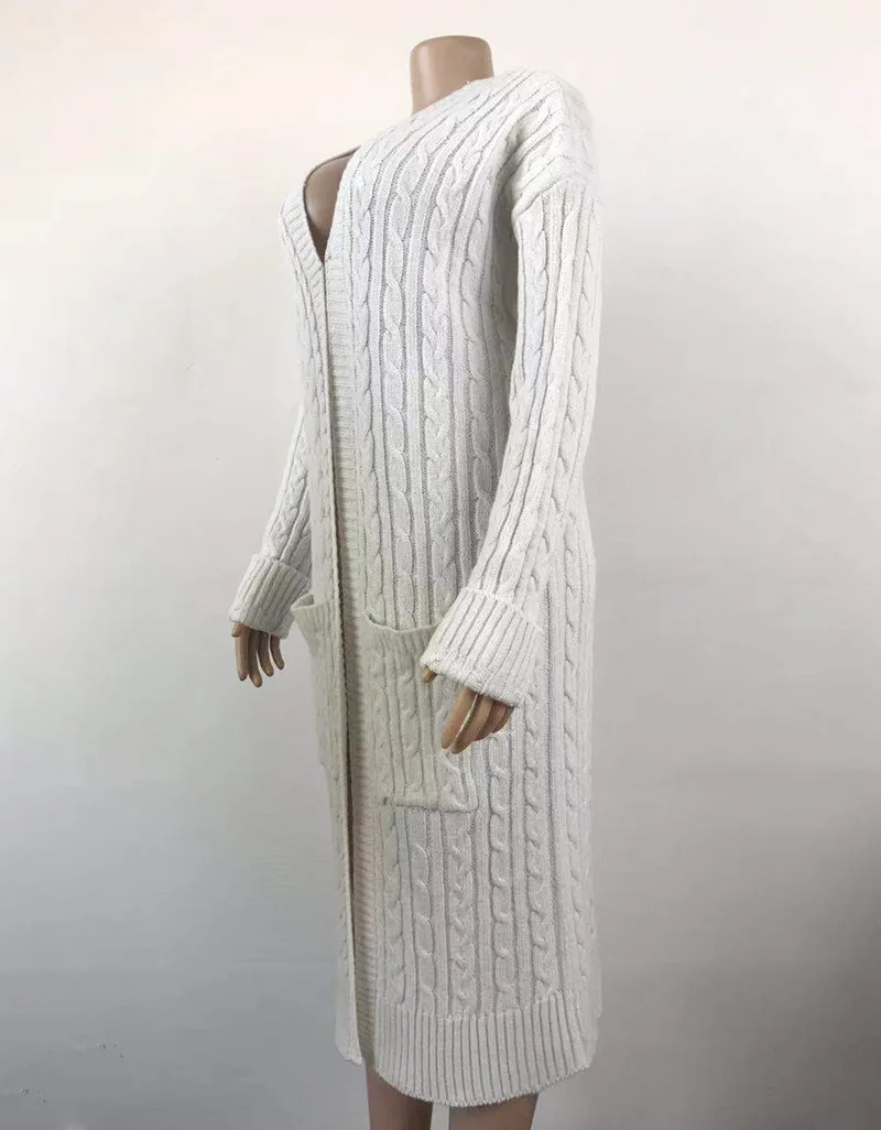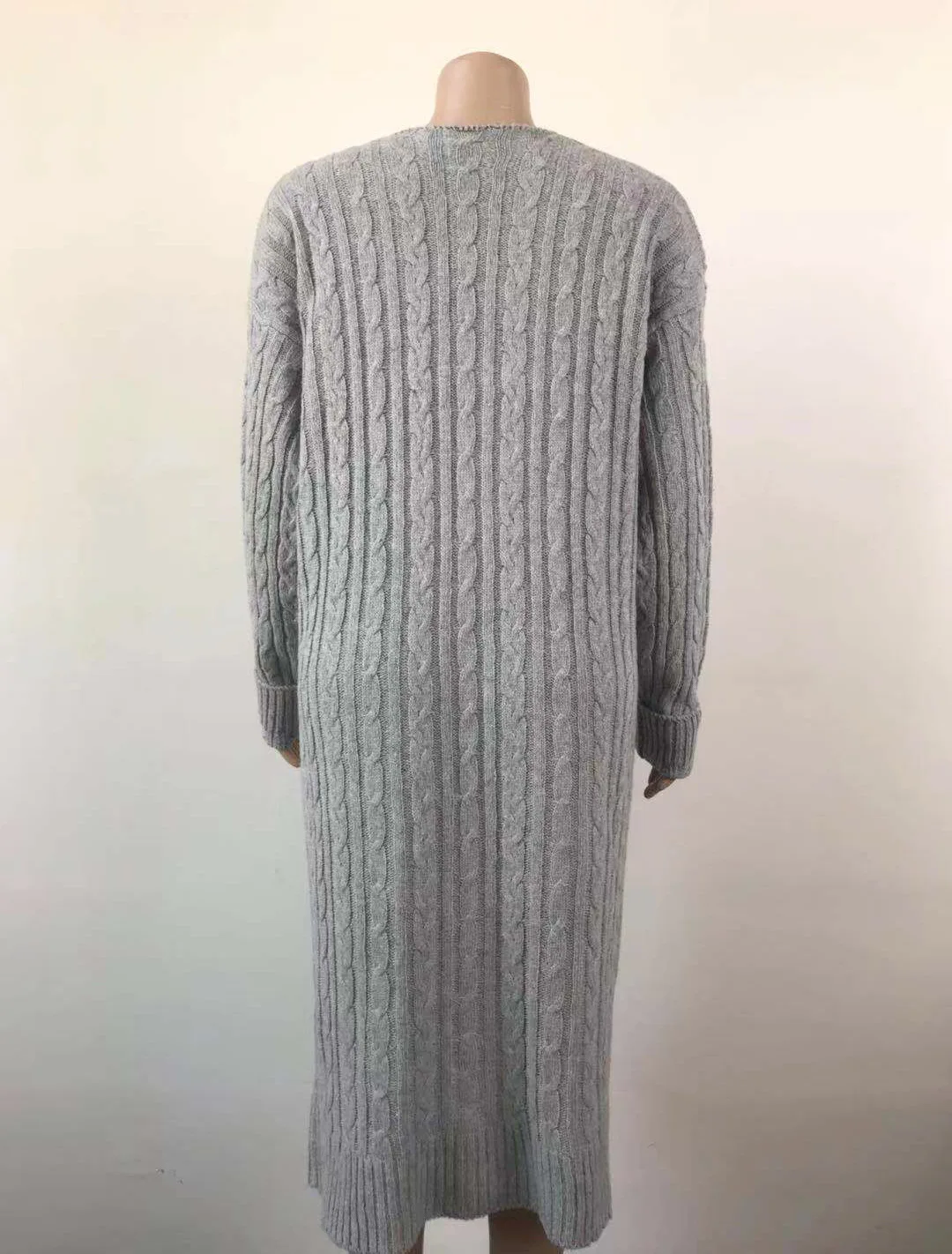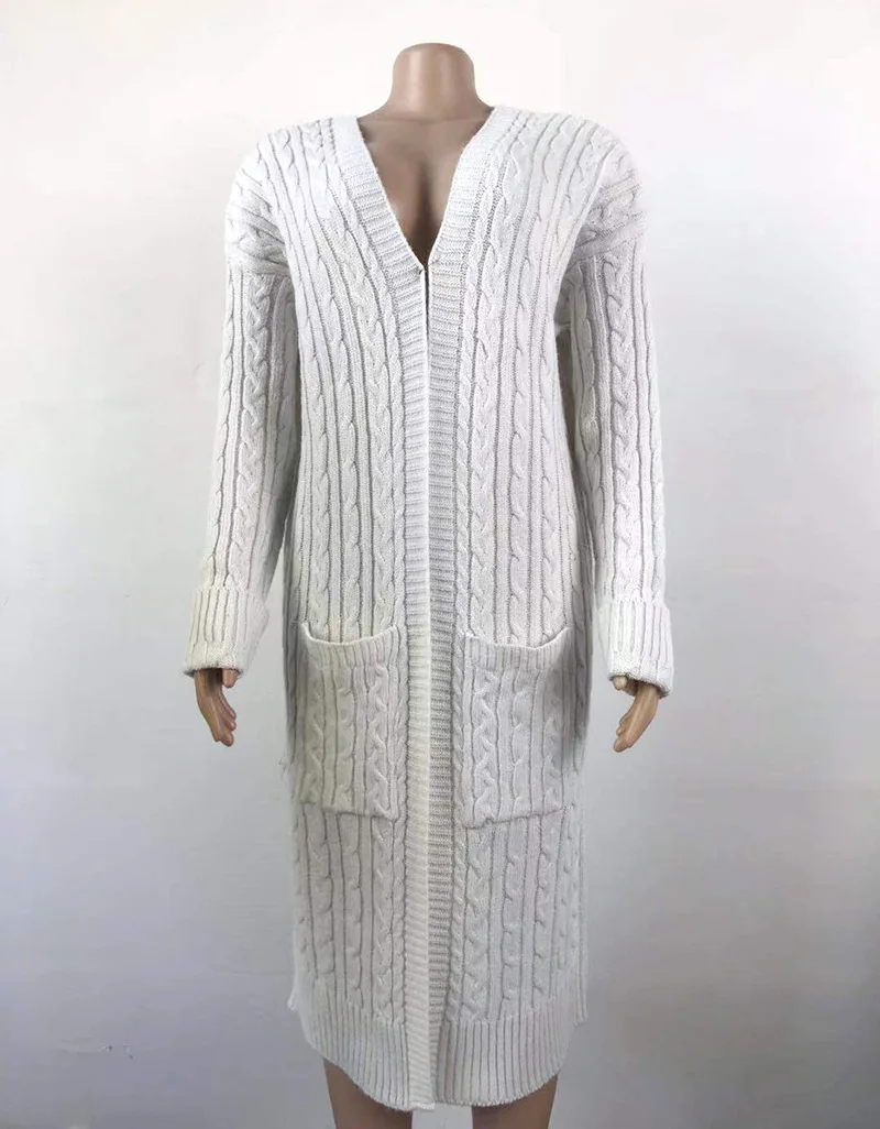 Long Cardigans Women Cotton Fall 2025 Thick Spring Winter Female Knitted Sweater Pocket Yellow Pink Grey Color Ladies Outerwear
