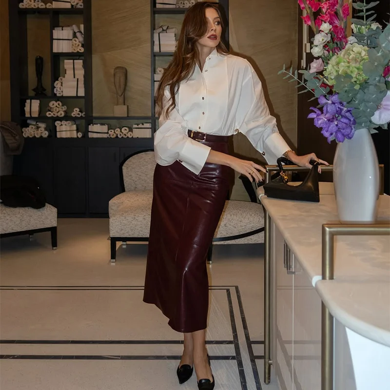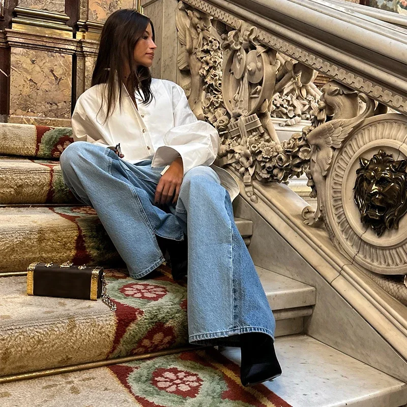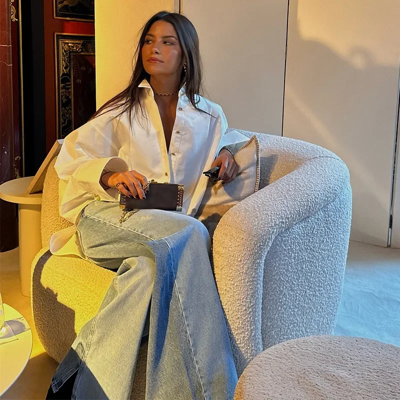 Loose Chiffon Shirt Women White Lapel Lantern Sleeves Single Breasted Irregular Hem Shirts Female 2025 Spring Chic Lady Blouse