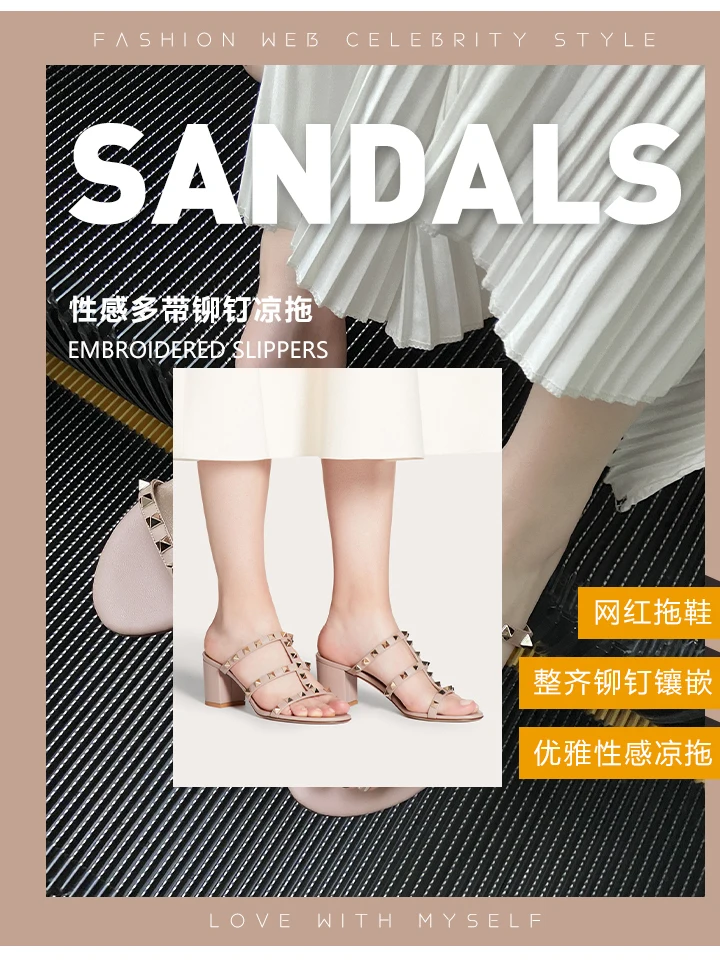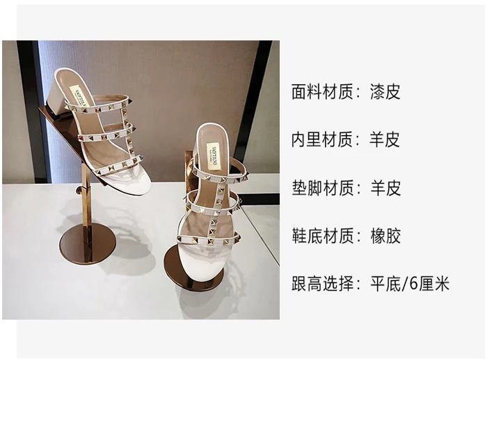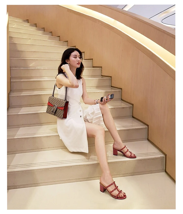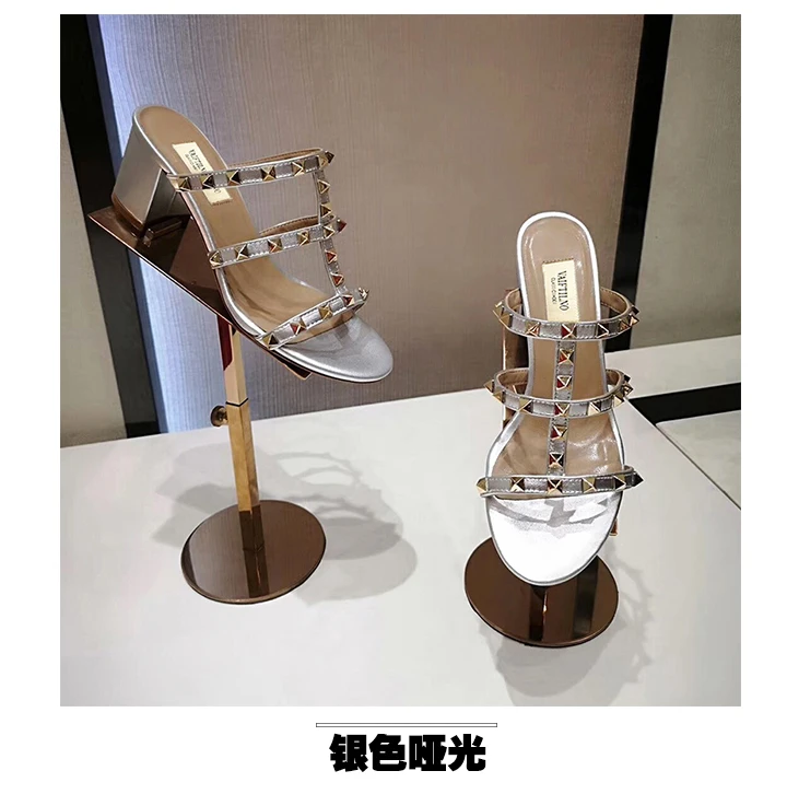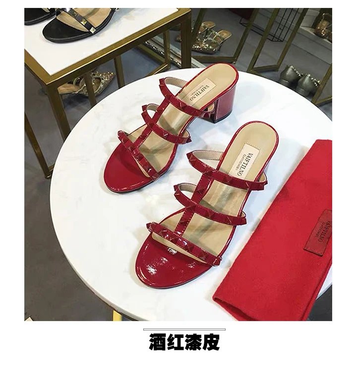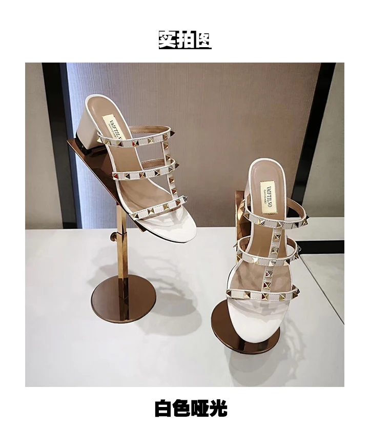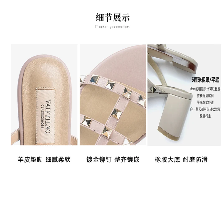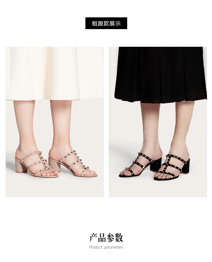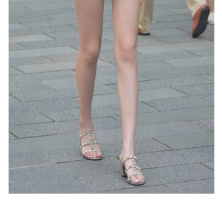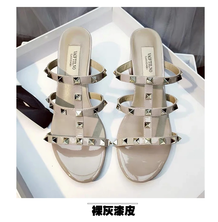 Luxury Brand Women’s Gladiator Sandals Summer With Heels Leather Rivets fashion Slippers Designer Square Heel shoes Women
