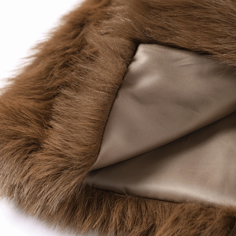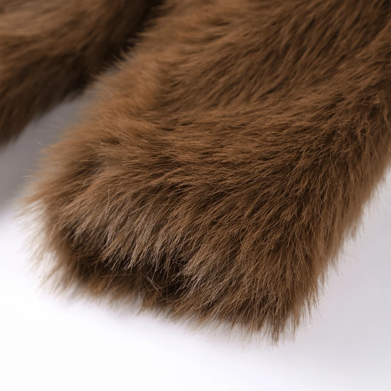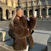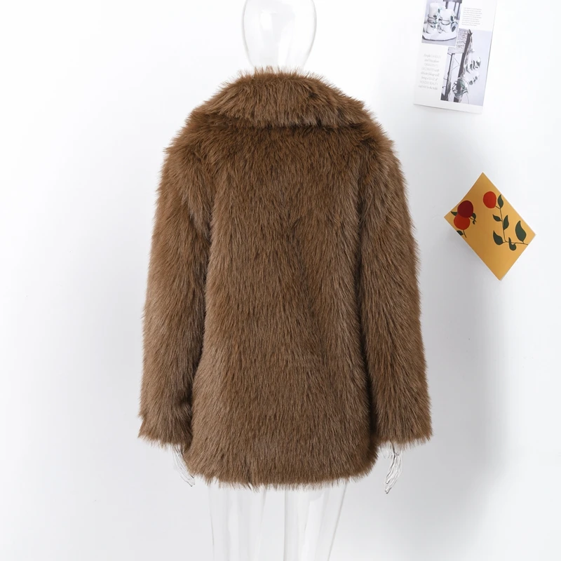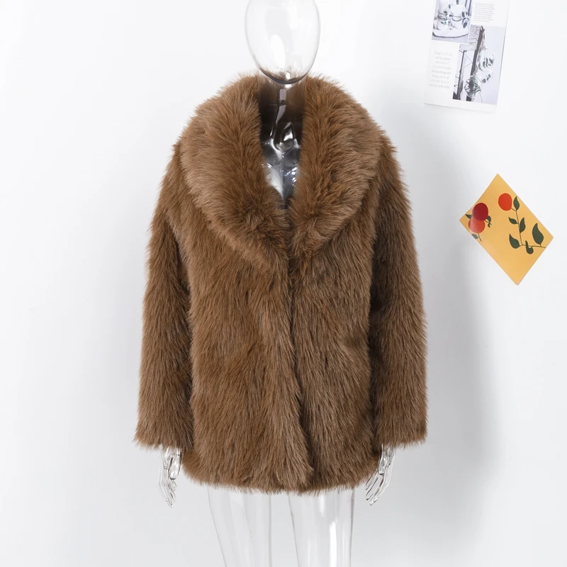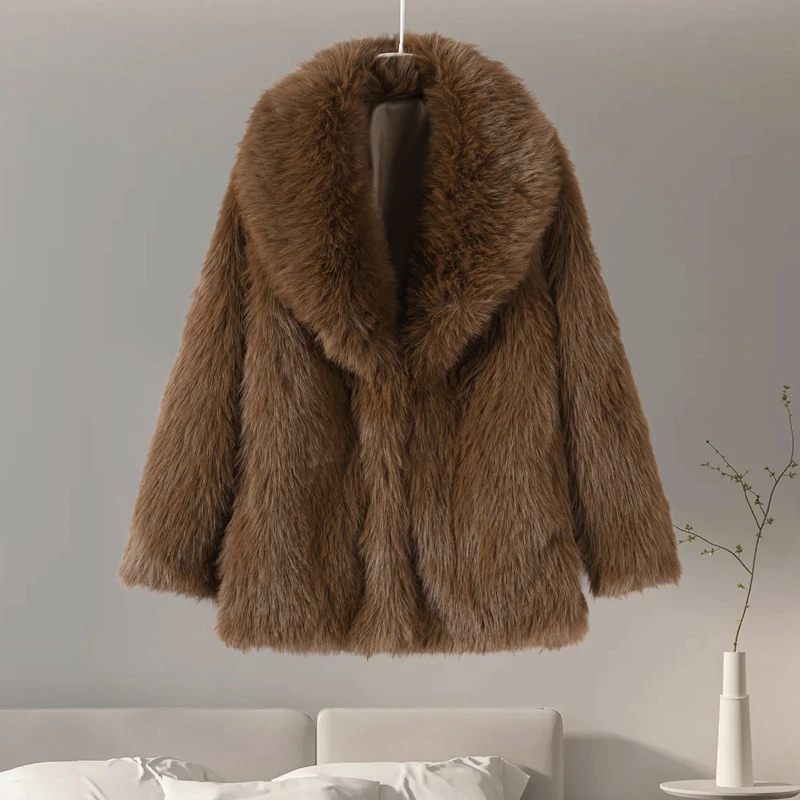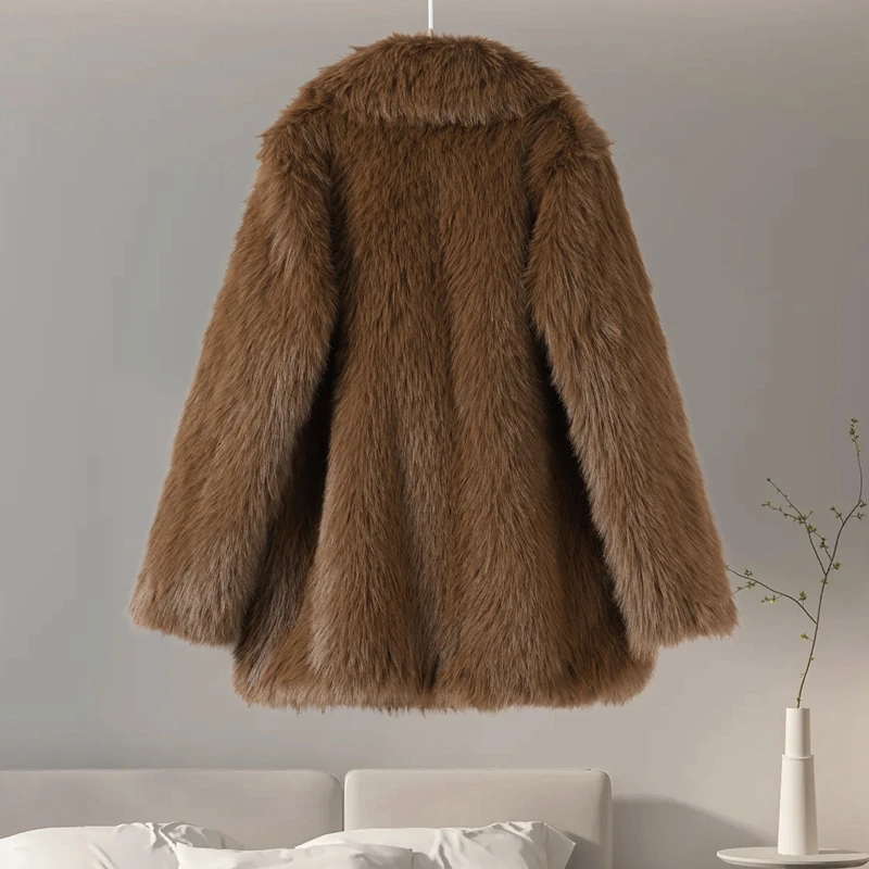 Luxury Brown Faux Fur Coats Women Fashion Full Sleeve Lapel Long Warm Jacket 2024 Winter Fluffy Thick High Street Outerwear New